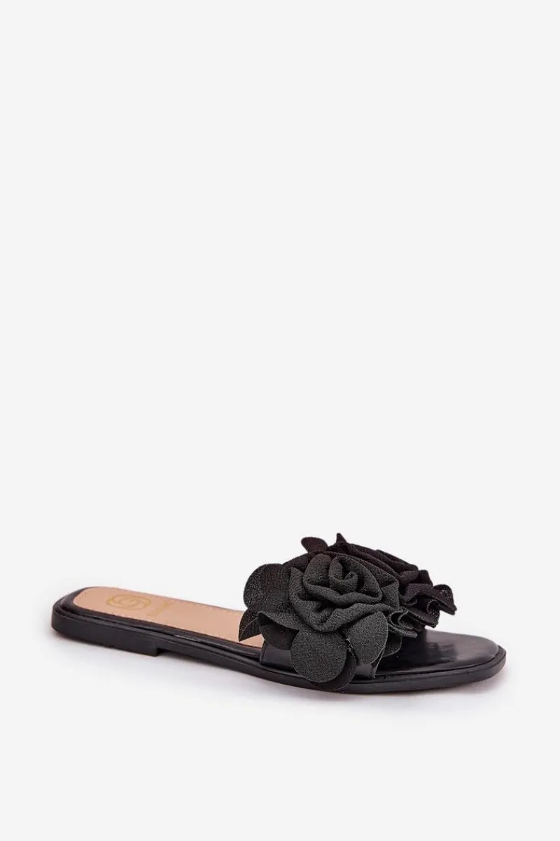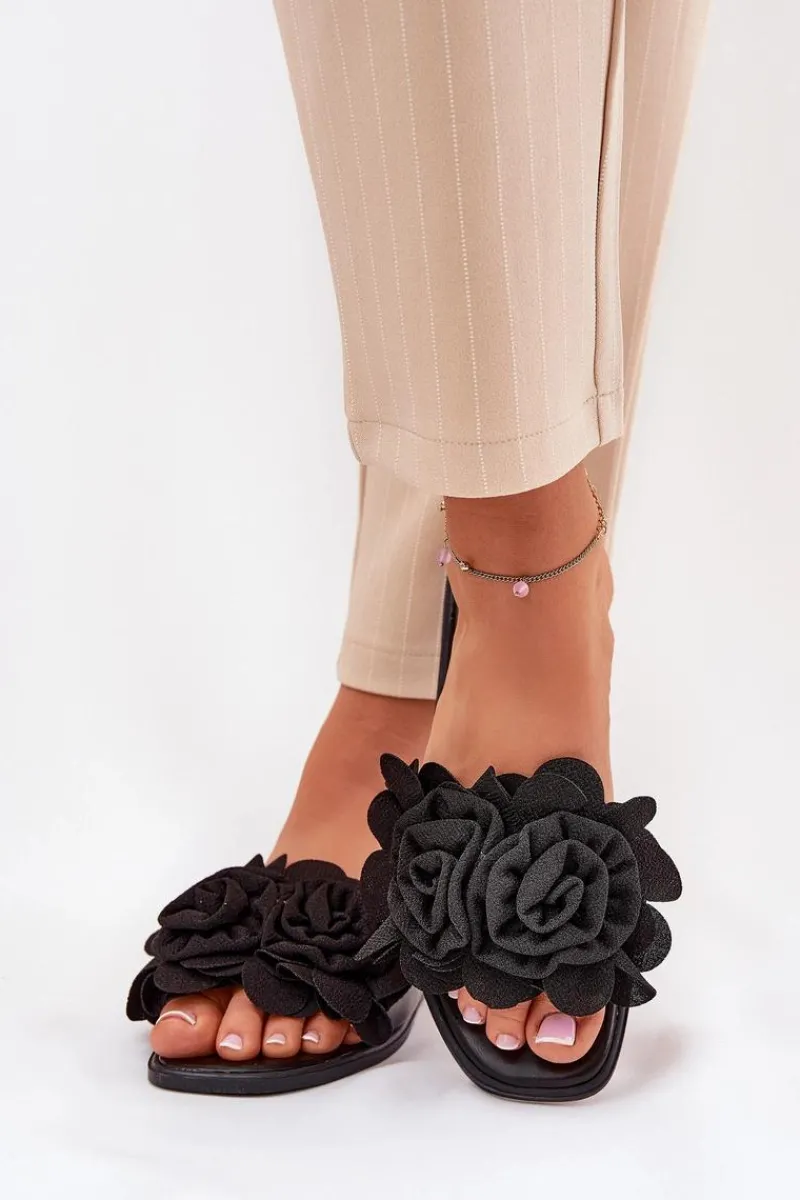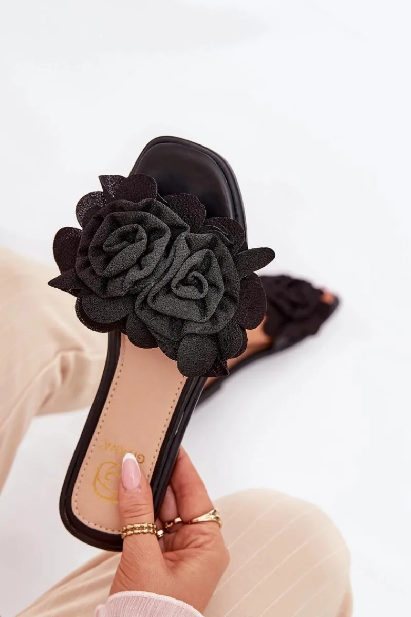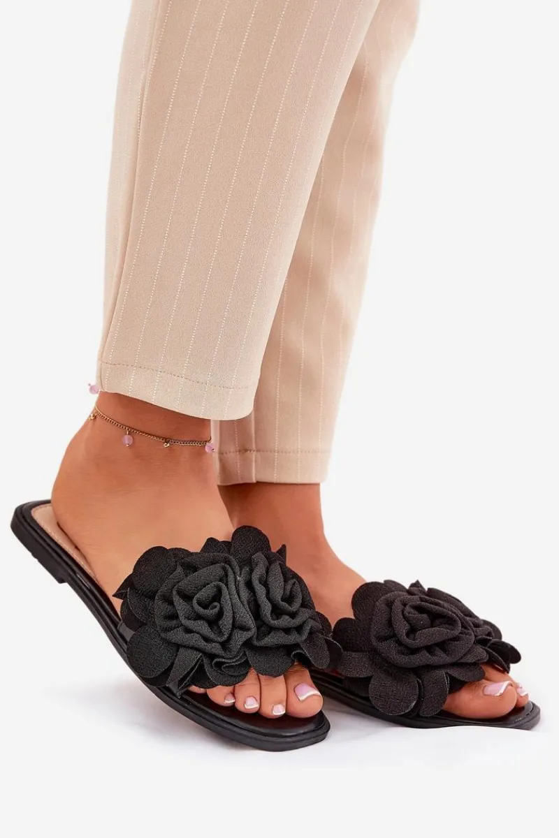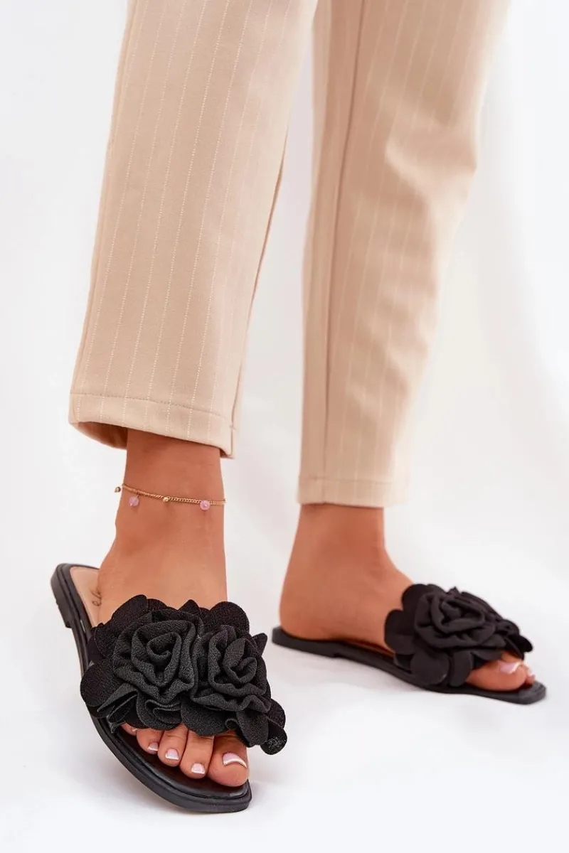 Hot Klapki Damskie Na Płaskim Obcasie Z Ozdobnymi Kwiatami Czarne Misorsse Damskie Klapki Damskie Klasyczne