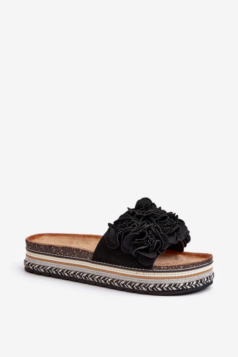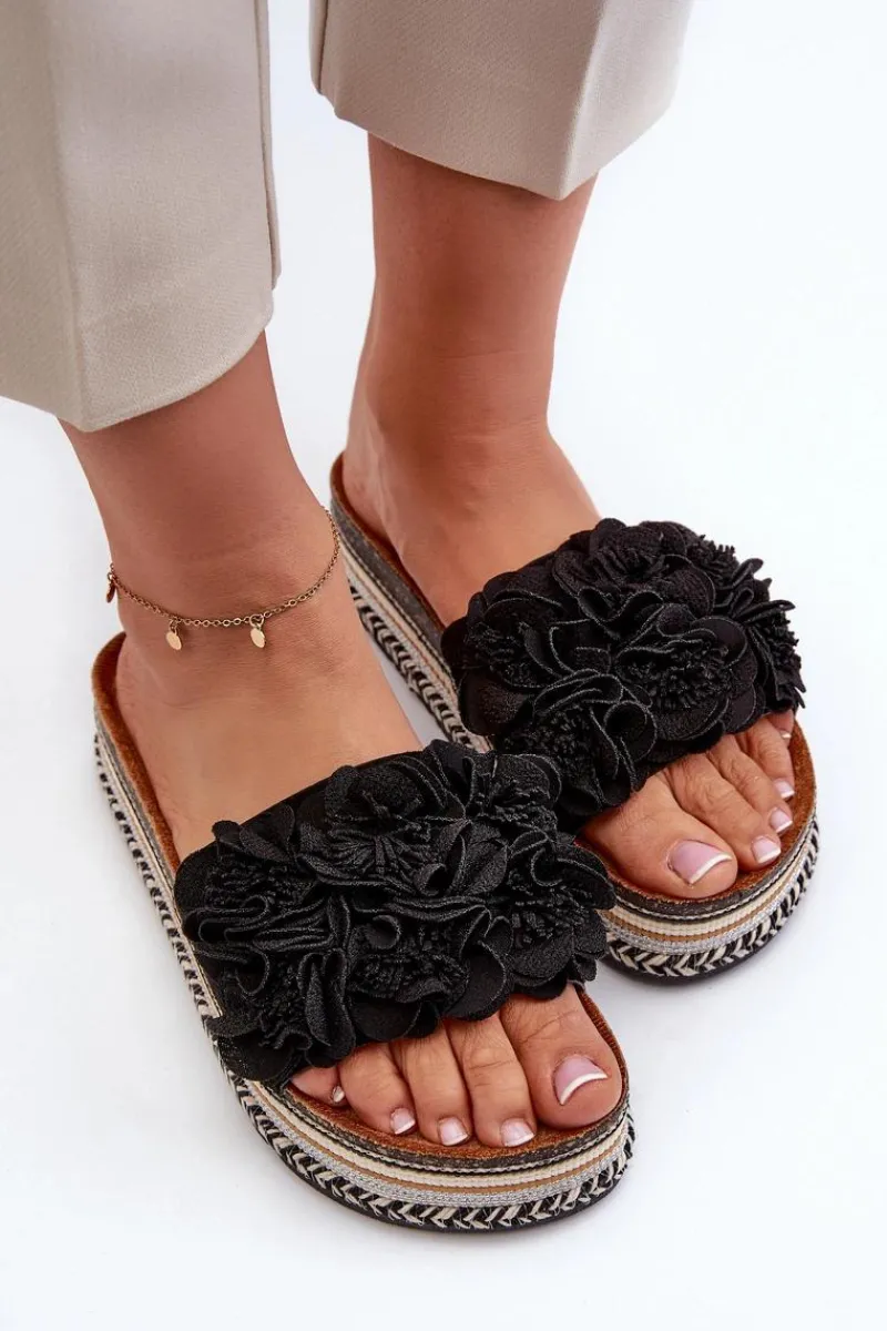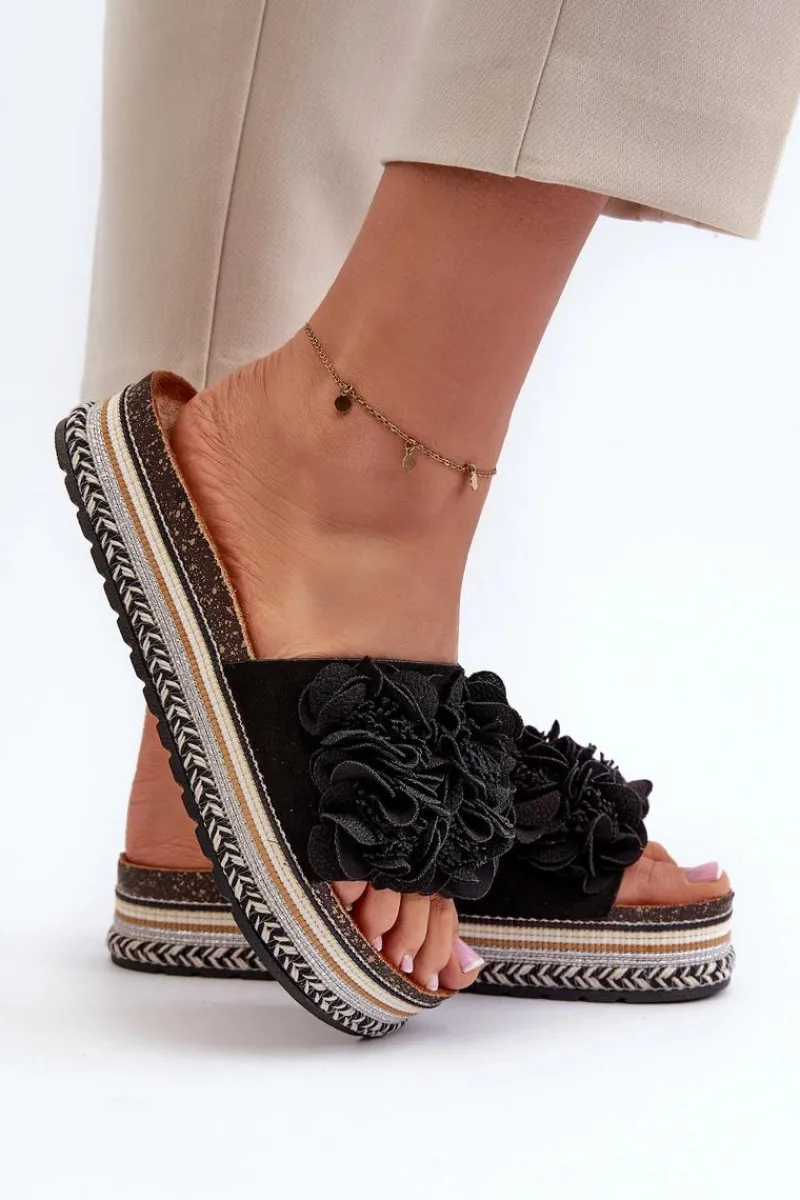 Damskie klapki na masywnej platformie to idealny wybór dla kobiet ceniących sobie modny wygląd i wygodę. Ten stylowy model przyciąga wzrok nie tylko swoją masywną platformą, ale również uroczymi kwiatkami, które zdobią przód obuwia. Idealne na letnie dni, te klapki są doskonałym dodatkiem do sukienek, spódnic, a także jeansów i szortów. Przy wyborze rozmiaru prosimy sugerować się tabelą rozmiarów.