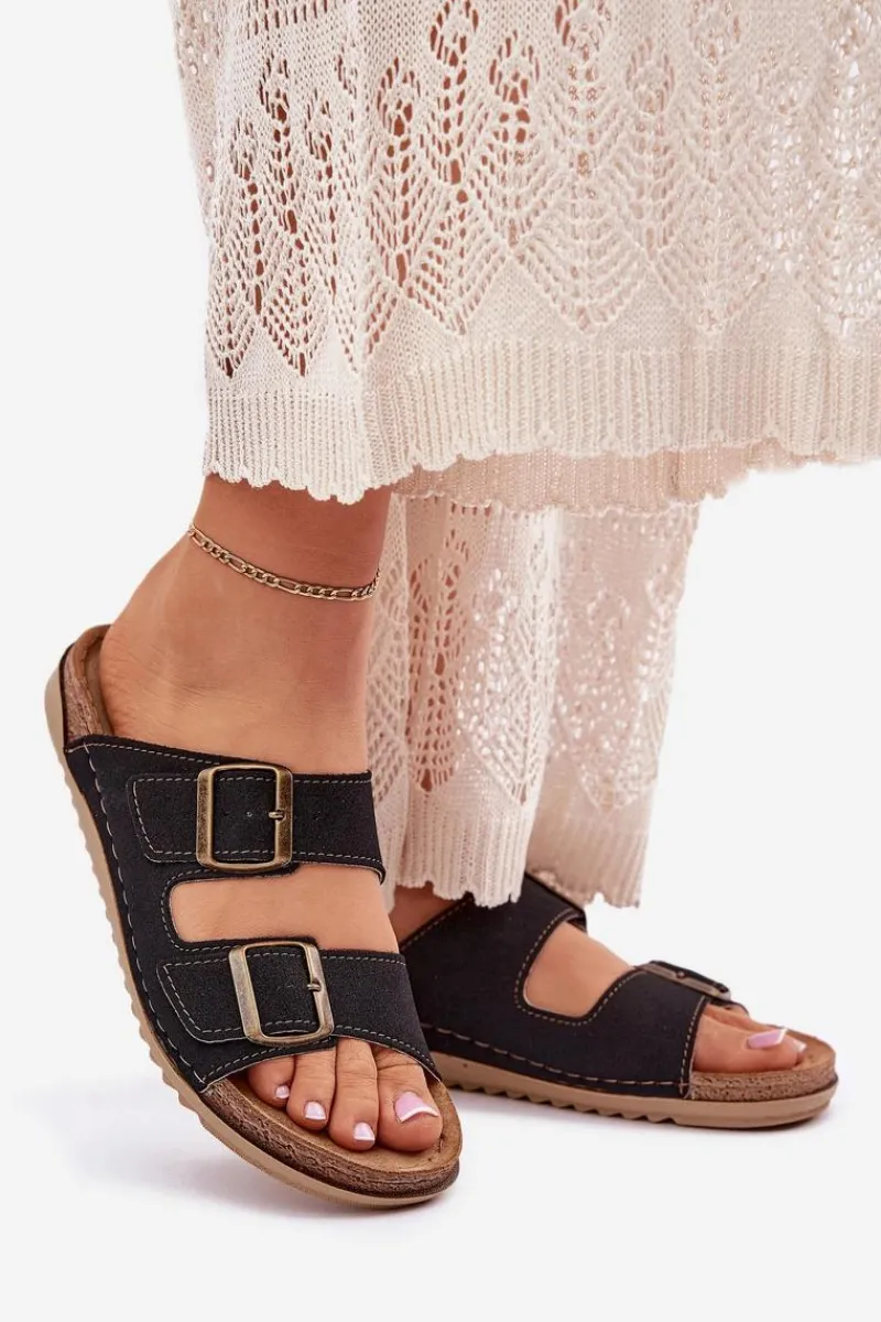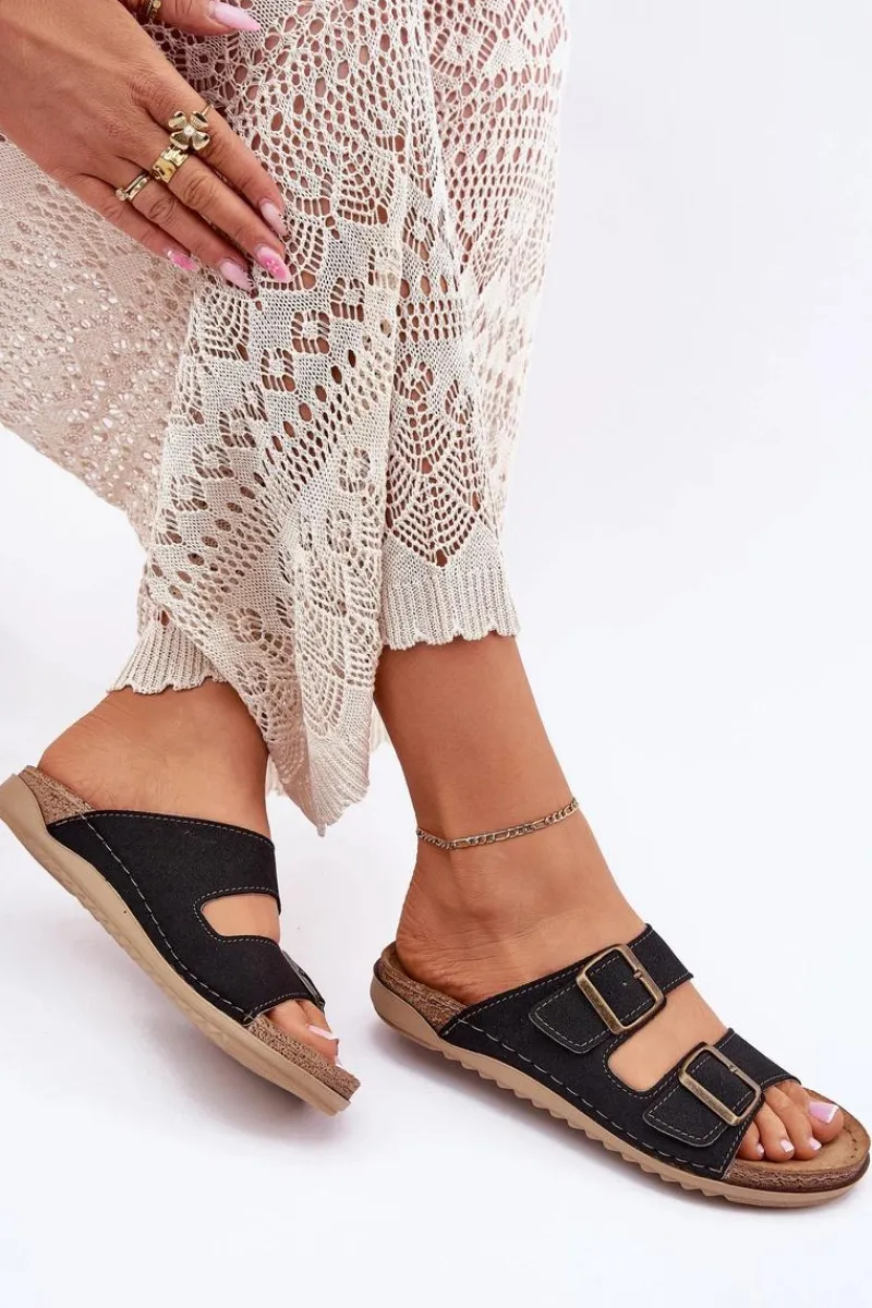 Klapki profilaktyczne od marki INBLU. Wykonane z eko skóry. Dwa regulowane paski z klamrami zapewniają doskonałe dopasowanie do tęgości stopy. Wkładka wewnętrzna „COMFORT ANATOMICO” jest profilowana, doskonale dopasowując się do anatomicznego kształtu stopy, a jej miękka, naturalna skóra podnosi komfort użytkowania. Dwuwarstwowy spód wykonany z lekkiego i elastycznego poliuretanu zapewnia sprężystość, skutecznie przenosząc obciążenia na podłoże, co przekłada się na wygodę podczas chodzenia. Przy wyborze rozmiaru prosimy sugerować się tabelą rozmiarów.