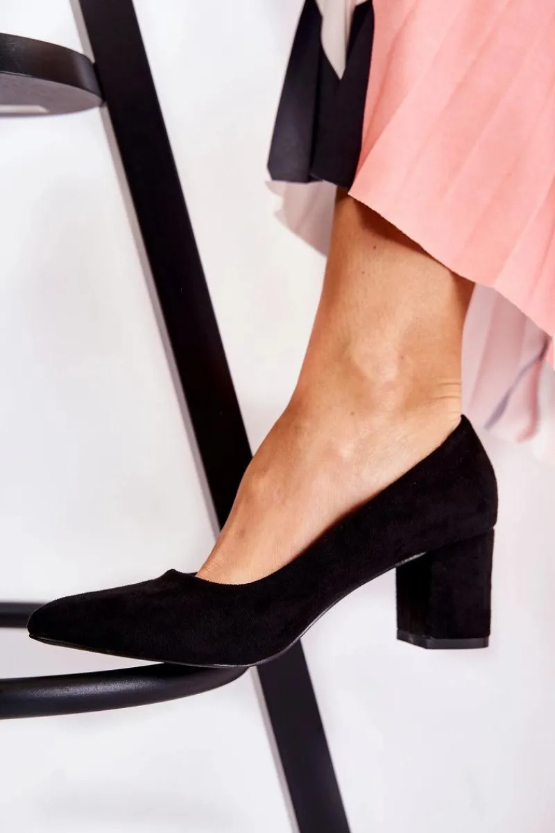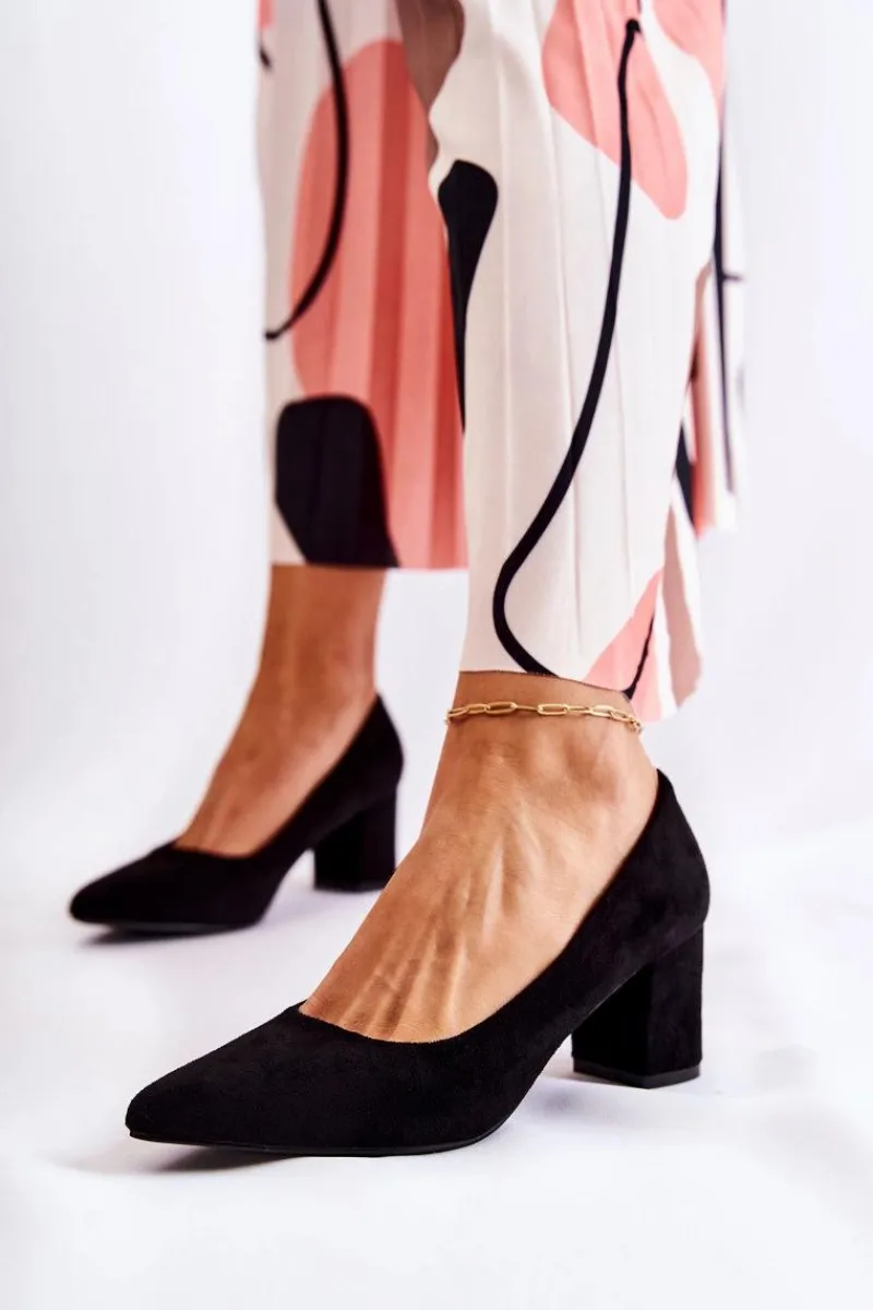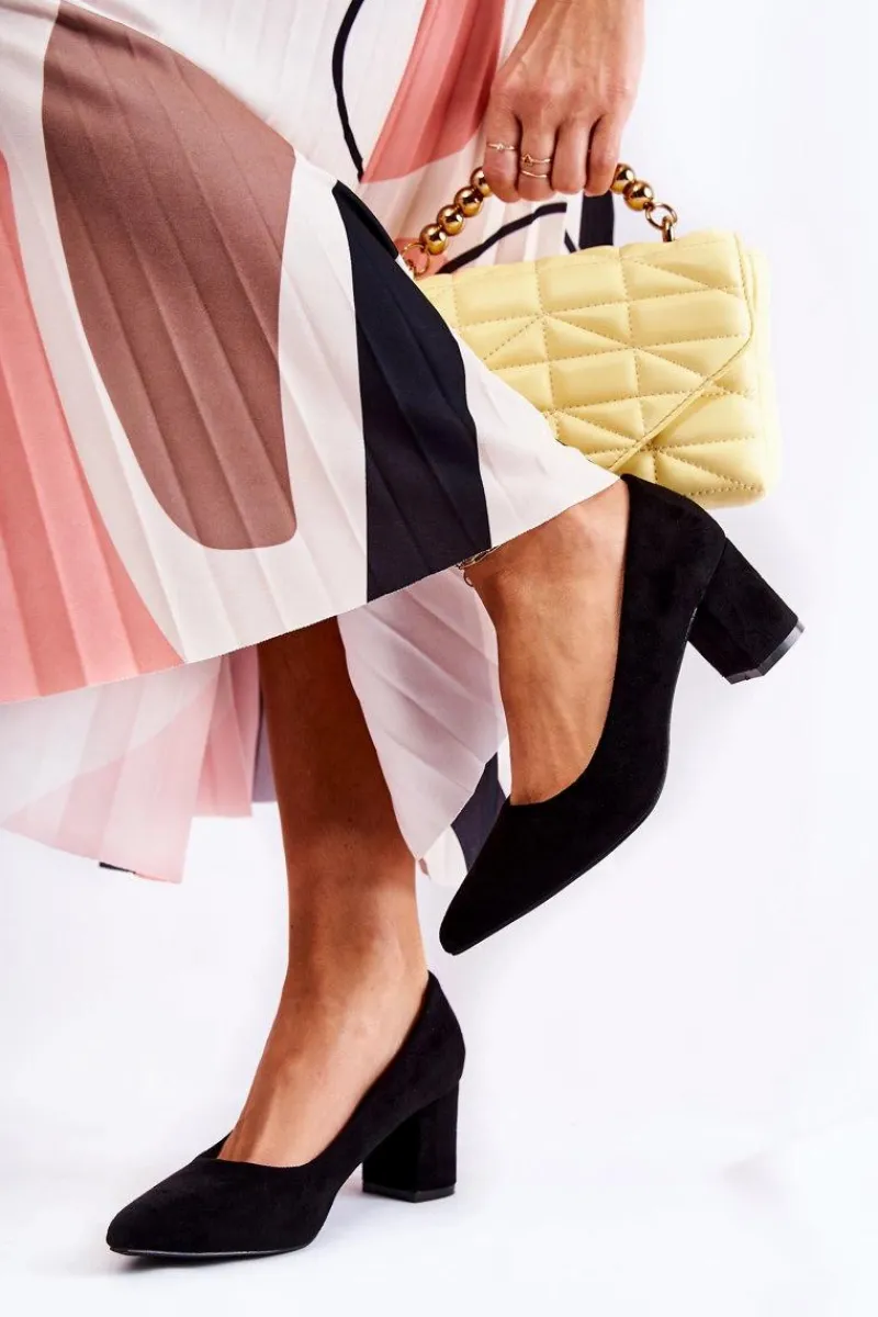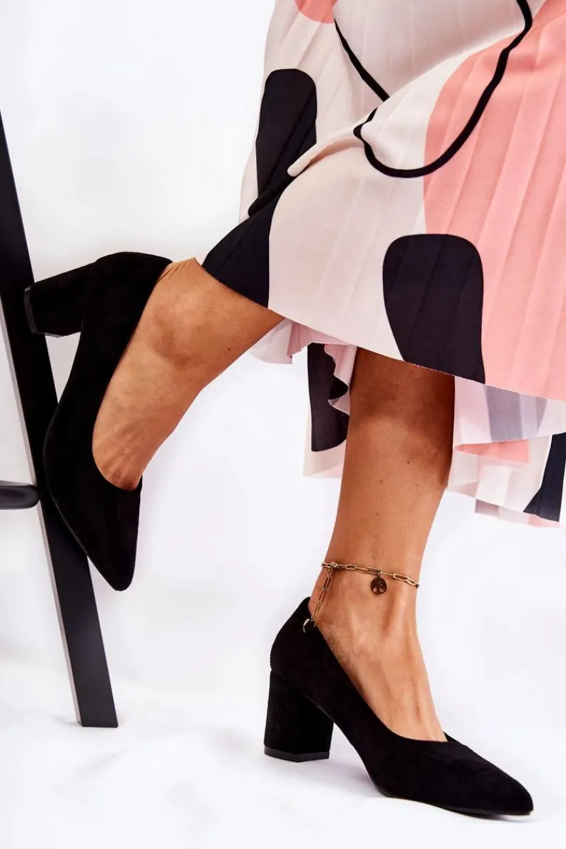 Hot Klasyczne Czółenka Zamszowe Na Słupku Czarne Lency Damskie Czółenka Zamszowe|Czółenka Na Słupku