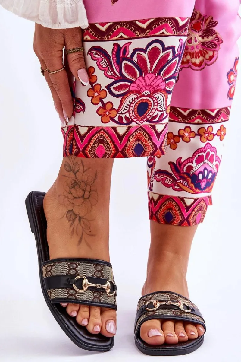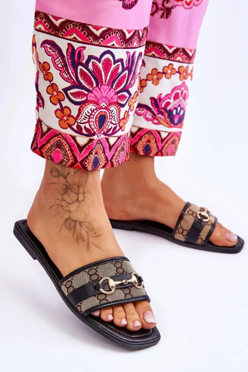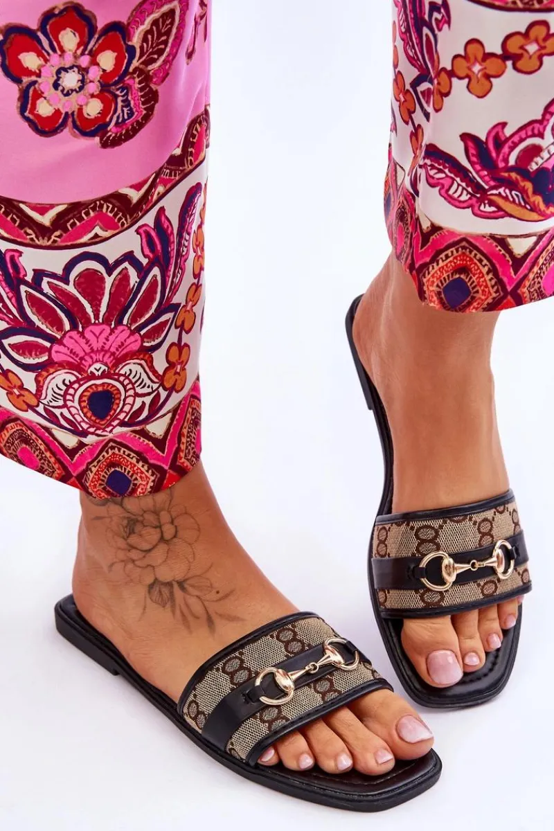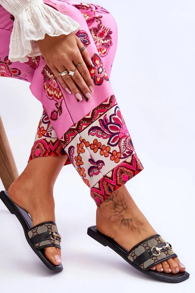 Klasyczne klapki zostały wykonane z połączenia eko skóry oraz tkaniny. Model ten jest klasycznie wsuwany z otwartym, kwadratowym noskiem. Osadzone na płaskim obcasie. Miękka wkładka została także wykonana z eko skóry. Ten model świetnie sprawdzi się na co dzień! Przy wyborze rozmiaru prosimy sugerować się tabelą rozmiarów.
