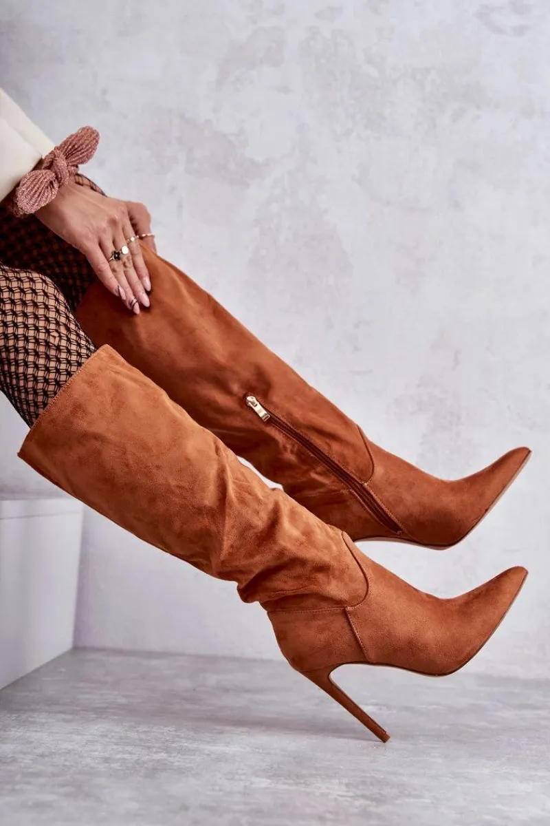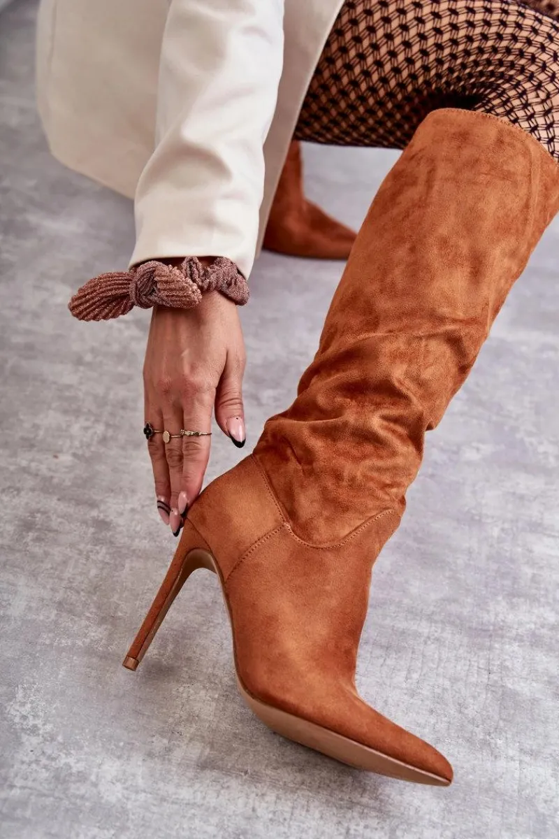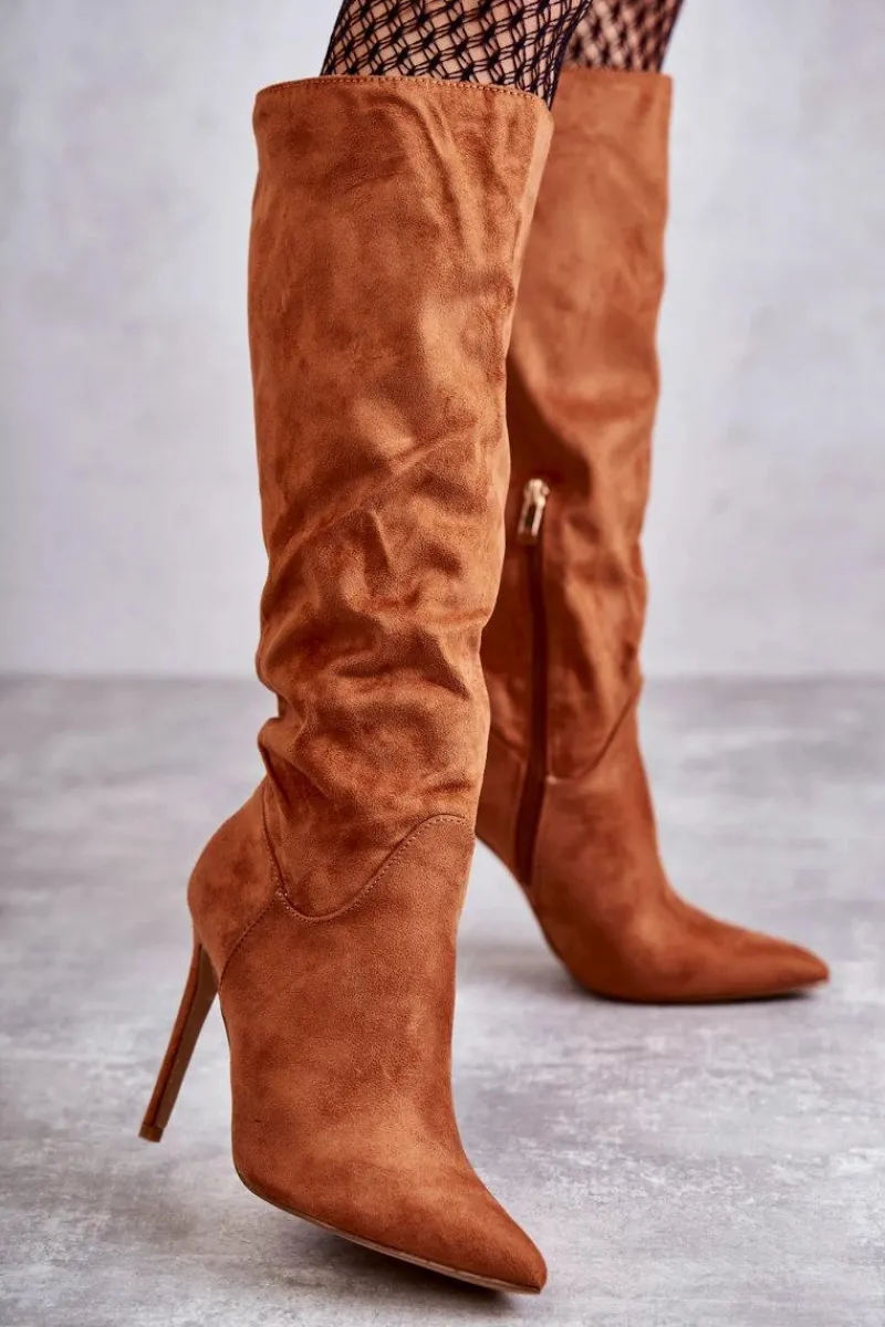 Klasyczne kozaki damskie z cholewką przed kolano. Posiadają delikatne przeszycia. Wykonane z miłego w dotyku eko zamszu. Model został osadzony na obcasie w postaci szpilki. Zapiętek usztywniany. Z boku zapinane na suwak. Wygodny model, który powinien znaleźć się w Twojej szafie! Wykorzystasz je w wielu stylizacjach! Muszą być Twoje! Przy wyborze rozmiaru prosimy sugerować się tabelą rozmiarów.