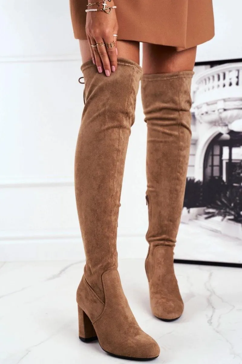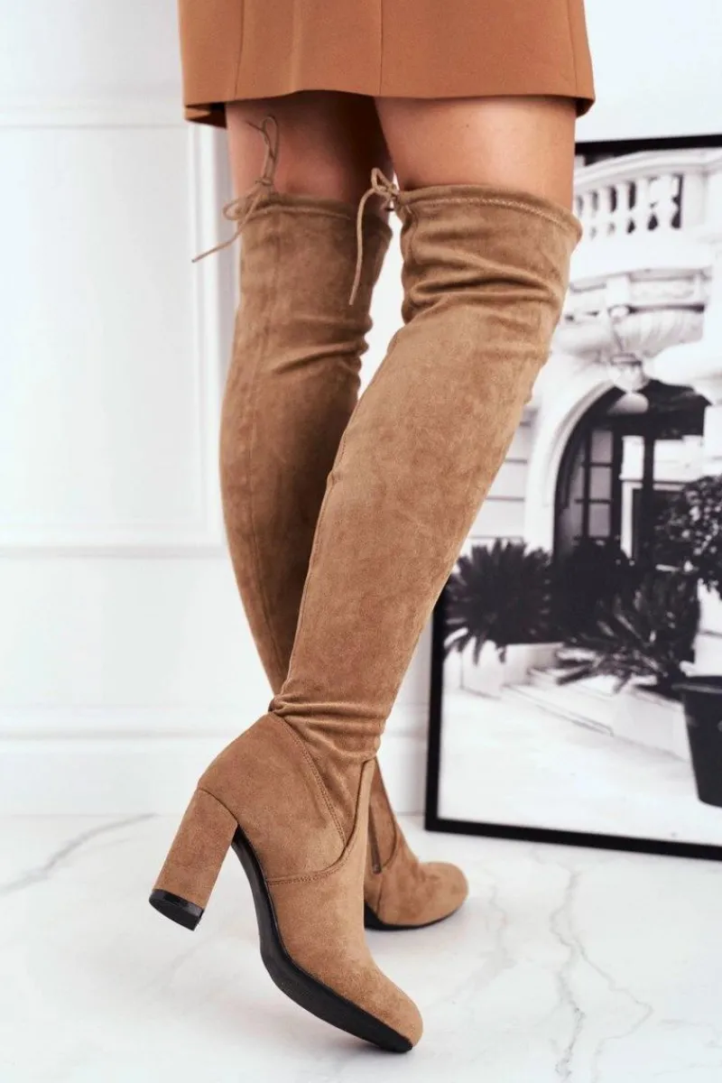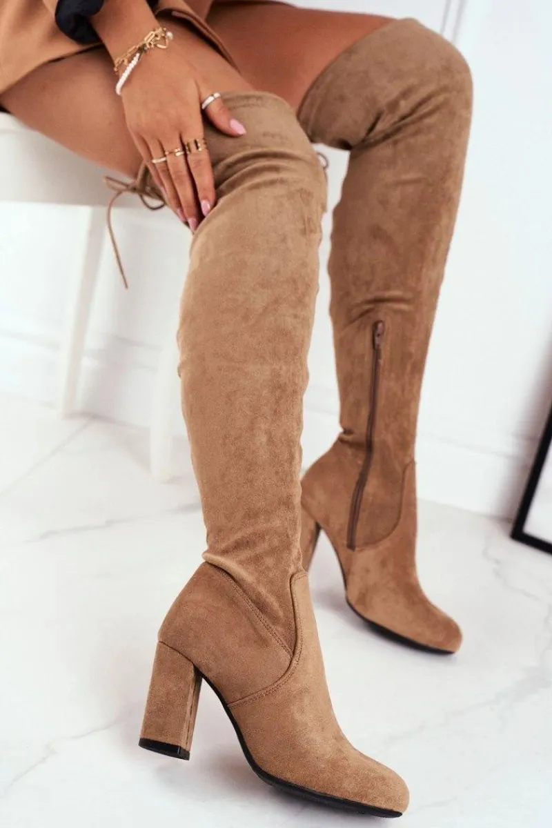Hot Kozaki Damskie Zamszowe Na Słupku Beżowe Highso Damskie Kozaki Wiosenne|Kozaki Na Obcasie