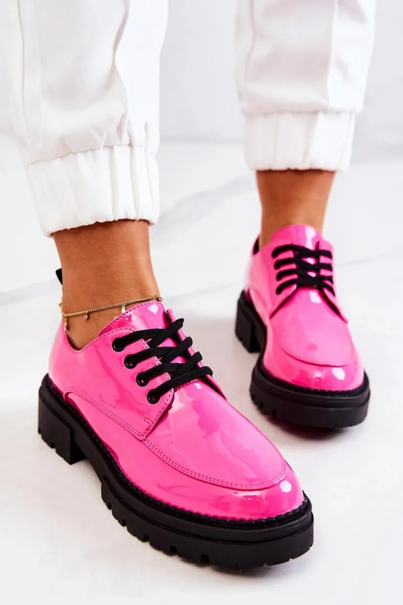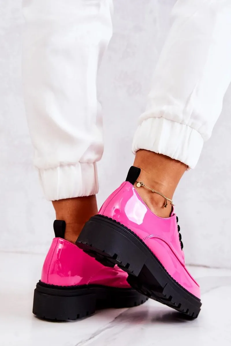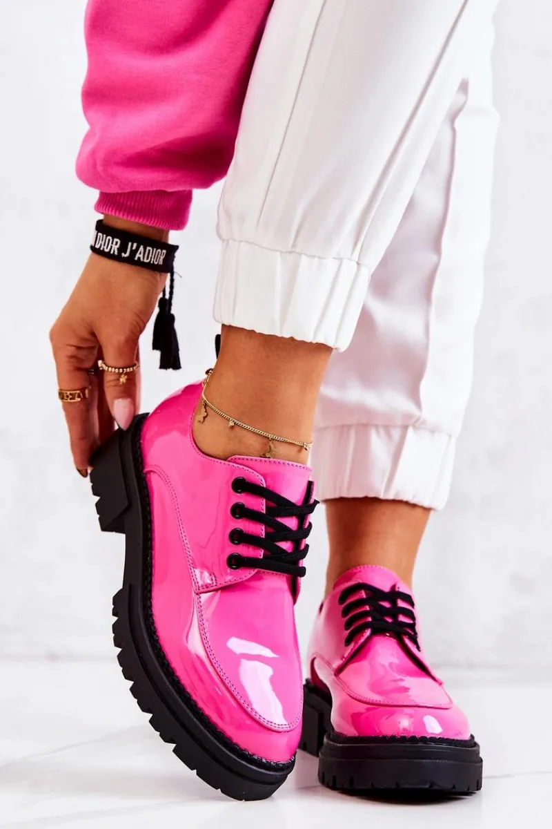 Półbuty zostały wykonane z wysokiej jakości lakierowanej eko skóry. Miękka wkładka ze skóry naturalnej to gwarancja komfortu. Elastyczne wiązanie sprawia, że można dopasować je odpowiednio do tęgości nogi. Niewysoki, masywny obcas zapewni wygodę. Koniecznie powinnaś mieć ten model w swojej szafie! Podczas wyboru rozmiaru prosimy sugerować się tabelą rozmiarów.