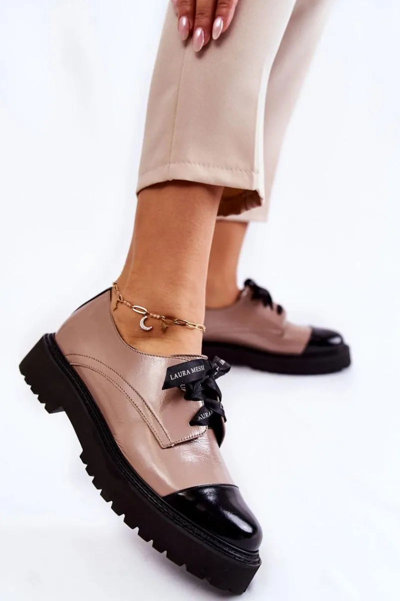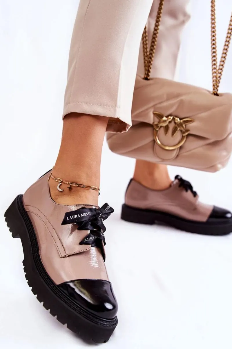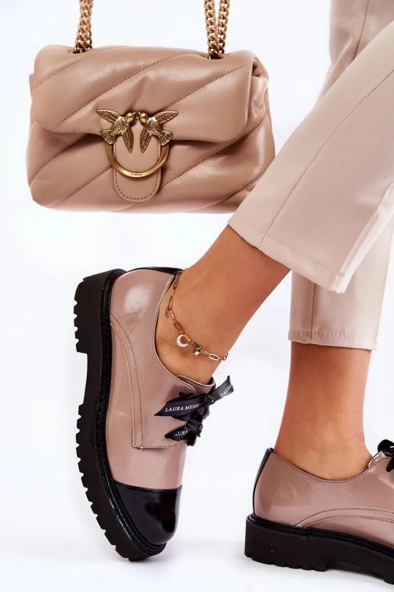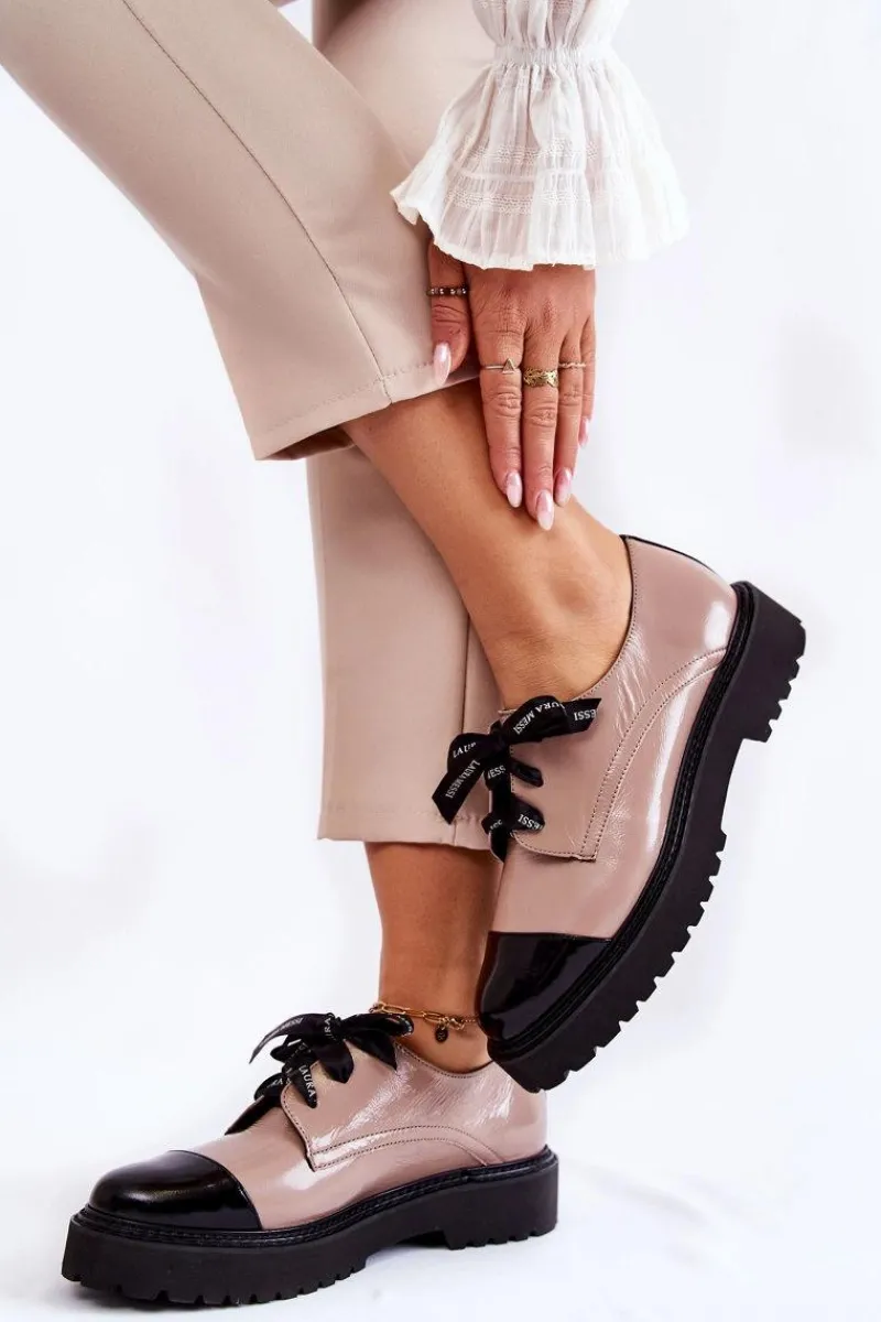 Eleganckie półbuty damskie zostały wykonane ze skóry naturalnej. Model ten posiada sznurowanie. Osadzone na płaskim obcasie z platformą i żłobieniem. Wkładka została wykonana z naturalnej skóry. Obcas oraz delikatnie usztywniany zapiętek zapewnią stabilność na każdym kroku. Ten elegancki model świetnie sprawdzi się w wielu stylizacjach! Koniecznie powinnaś mieć go w swojej szafie! Podczas wyboru rozmiaru prosimy sugerować się tabelą rozmiarów.