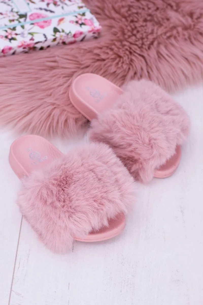 Hot Lu Boo Dziecięce Różowe Klapki Z Futerkiem Fur XXL Poli Damskie Dziewczęce|Klapki Z Futerkiem