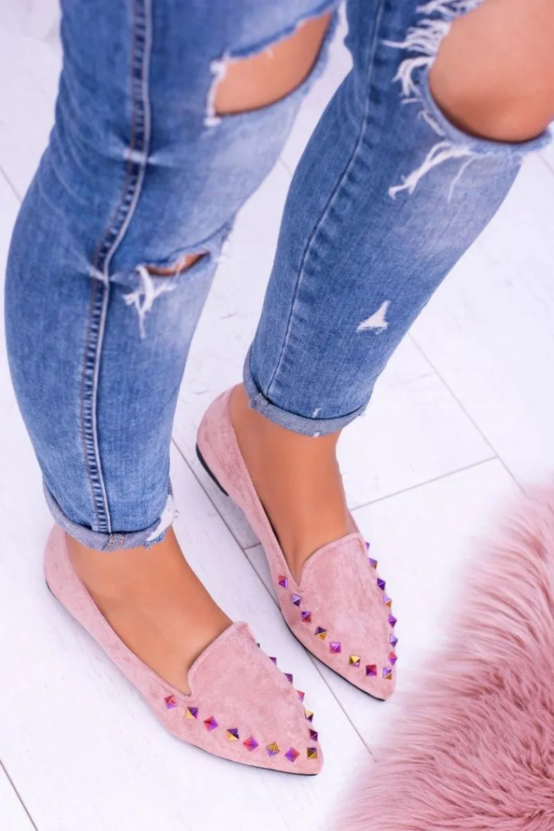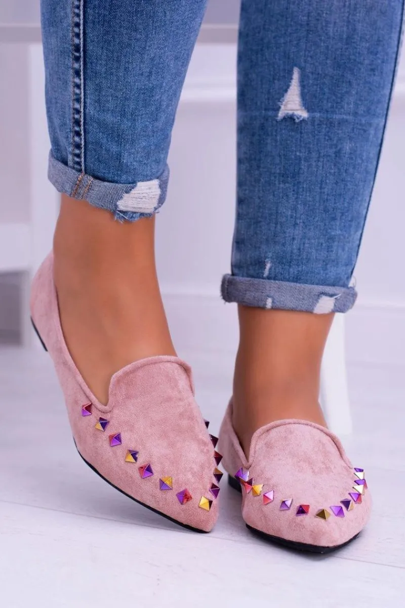 Hot Lu Boo Różowe Lordsy Opalizujące Dżety Zamsz Spike Damskie Baleriny Klasyczne