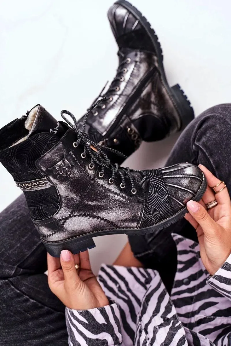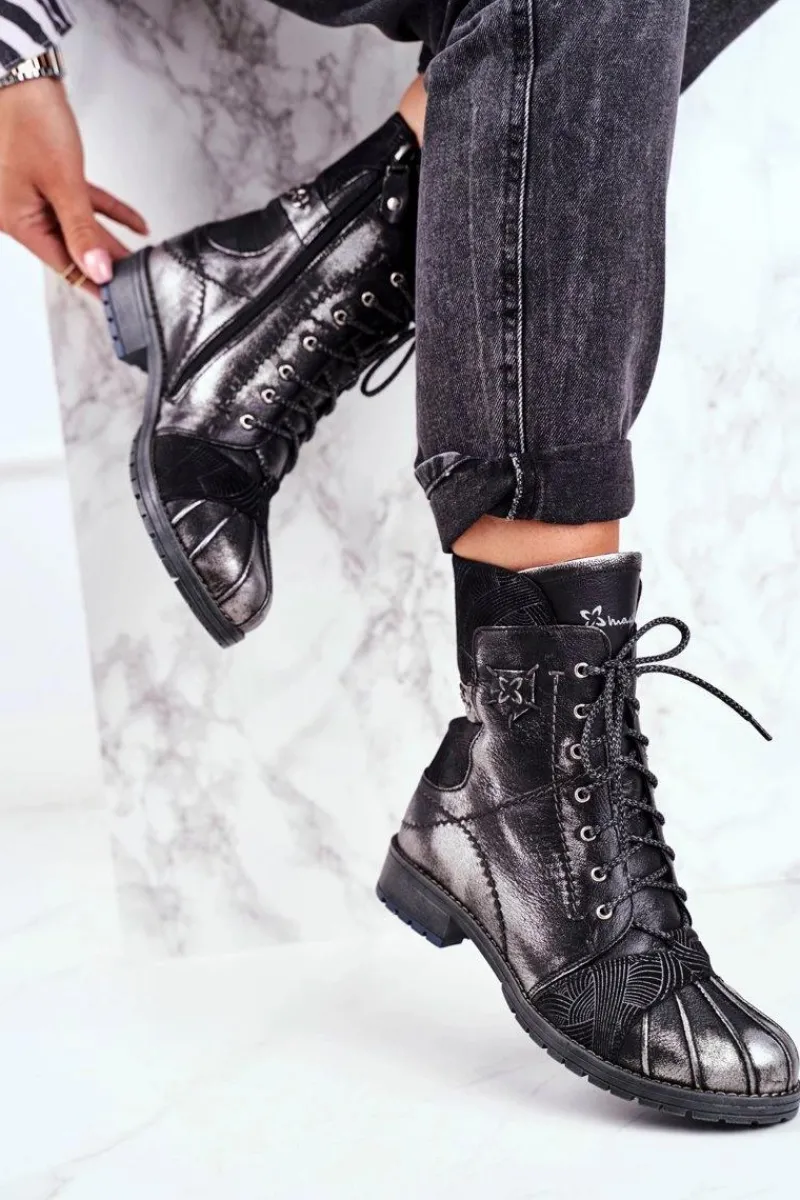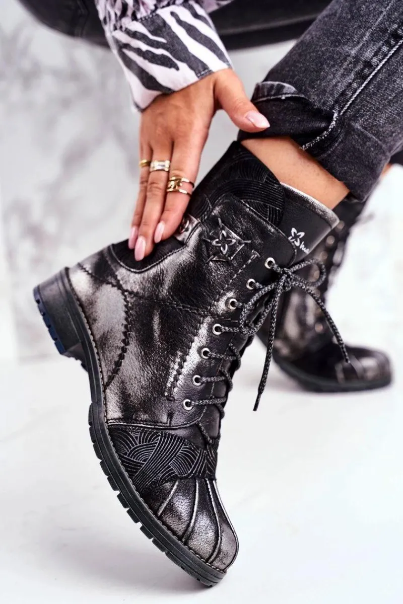 Hot Maciejka Botki Damskie Skórzane Ocieplane Czarne 03961-01