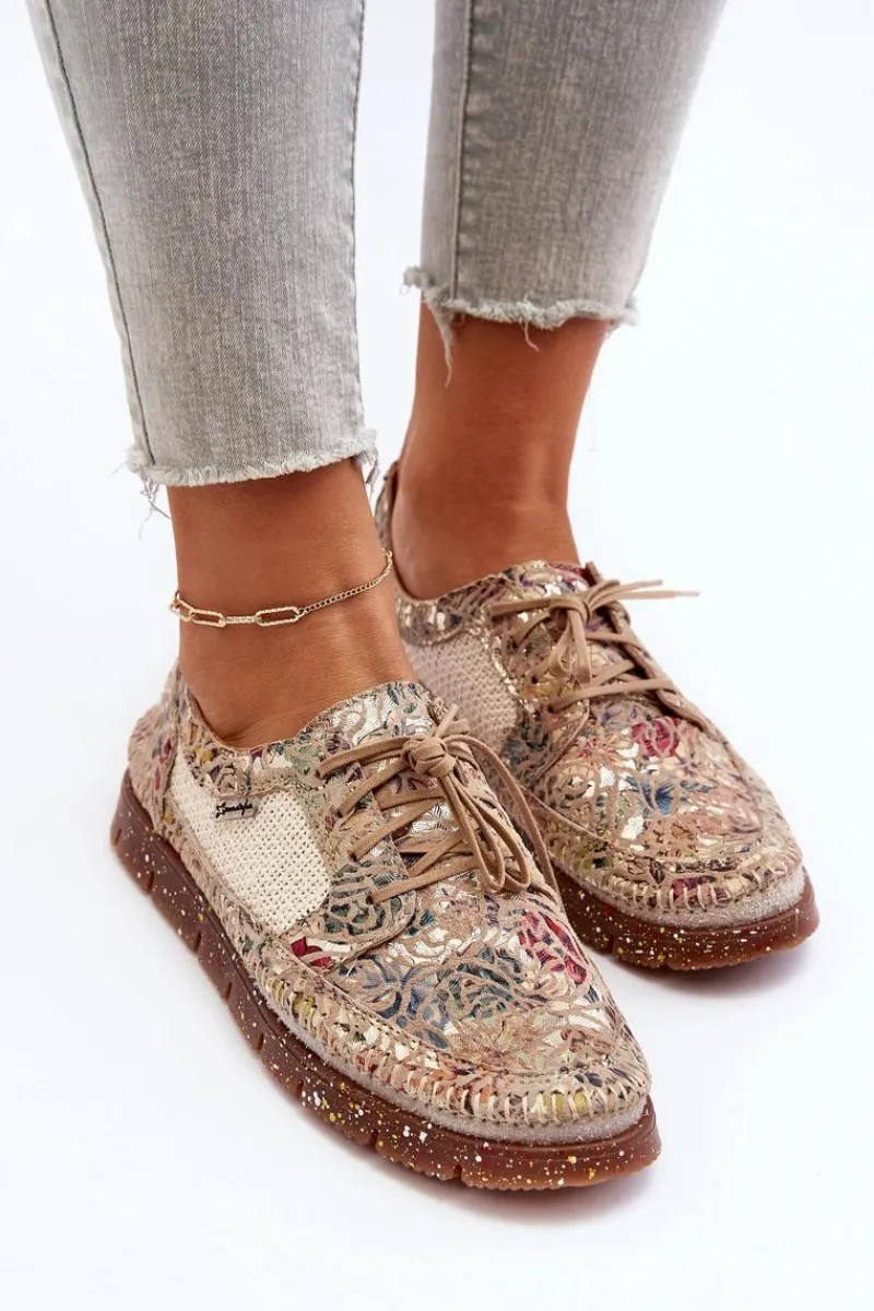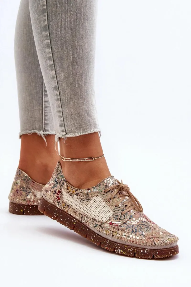 Półbuty damskie od polskiej marki Maciejka z uroczym zdobieniem na cholewce. Wykonane z miękkiej skóry naturalnej i tkaniny, prezentują się niezwykle efektownie. Zaokrąglone dodają delikatności, a klasyczne sznurowanie zapewnia idealne dopasowanie do stopy. Te półbuty nie tylko podkreślą Twój indywidualny styl, ale także zapewnią komfort noszenia na każdym kroku! Przy wyborze rozmiaru prosimy sugerować się tabelą rozmiarów.