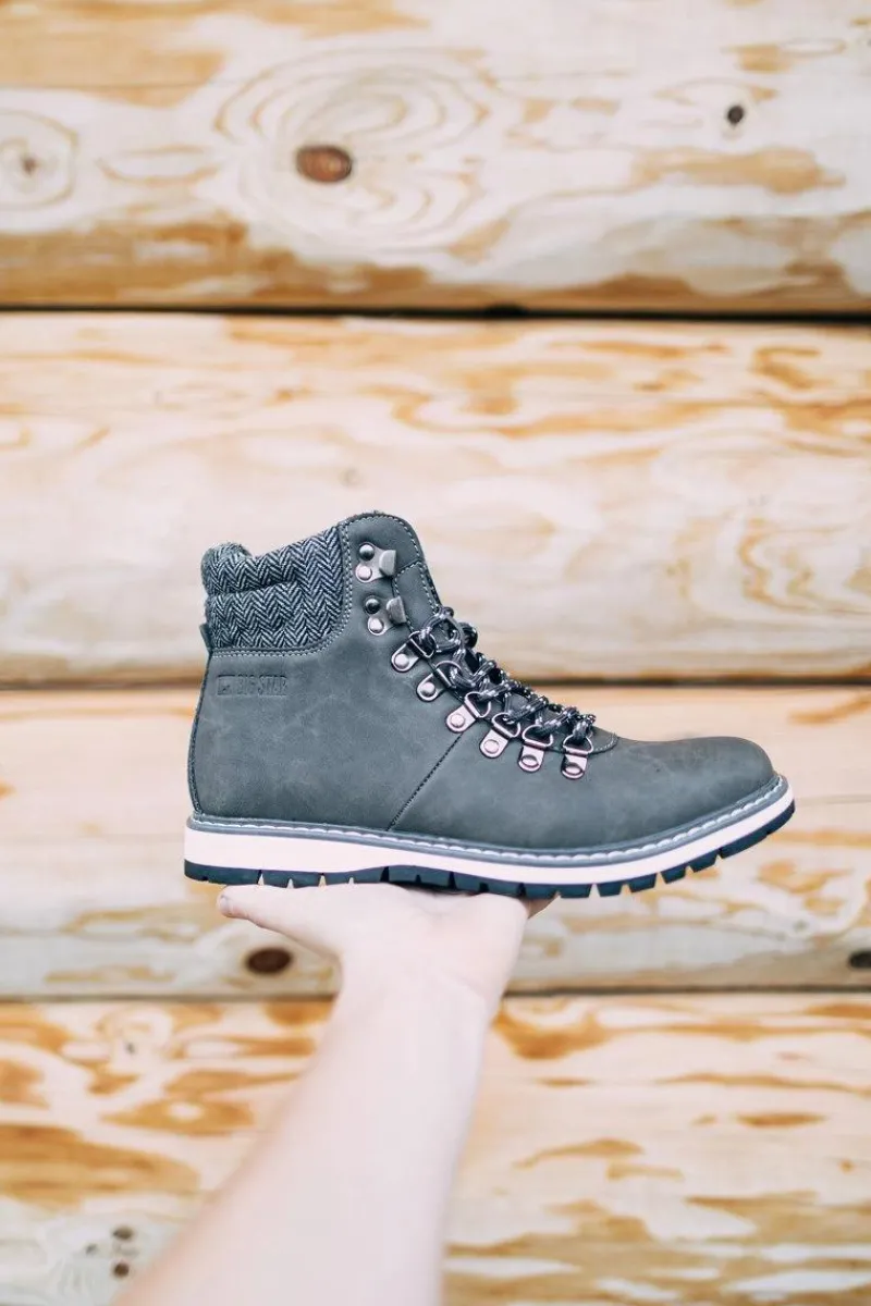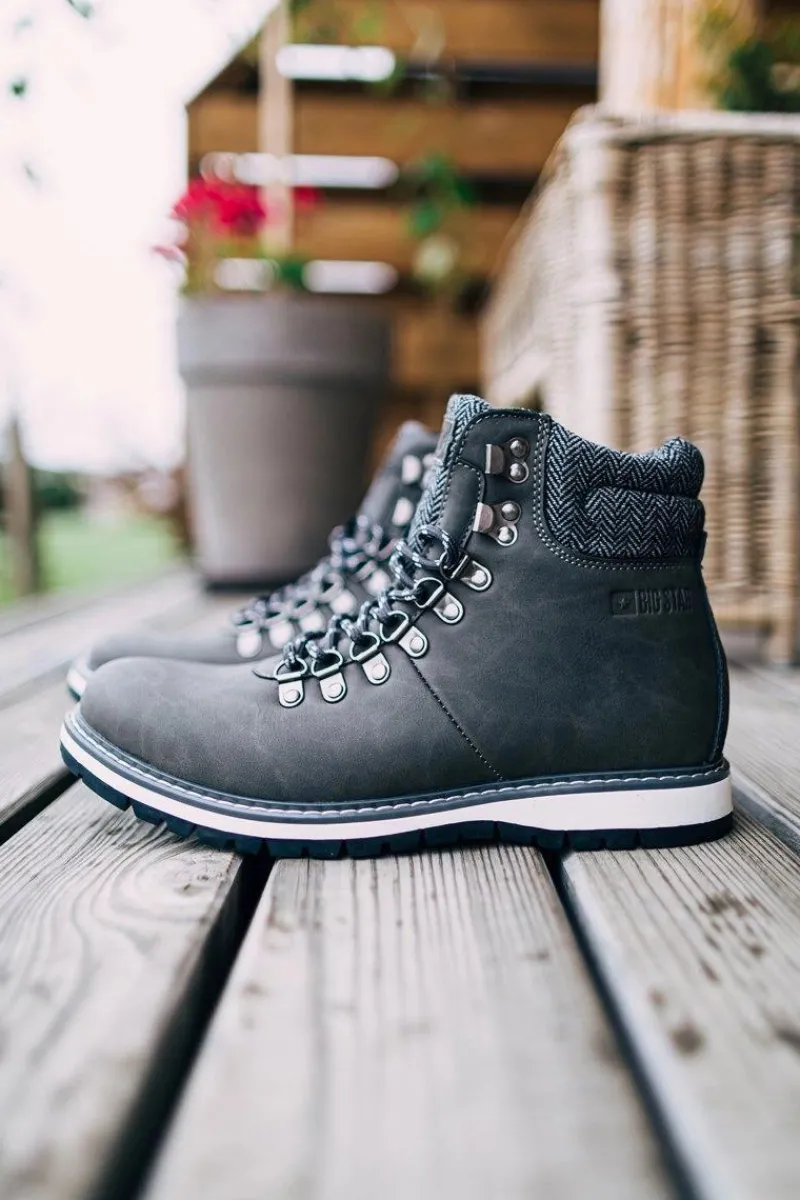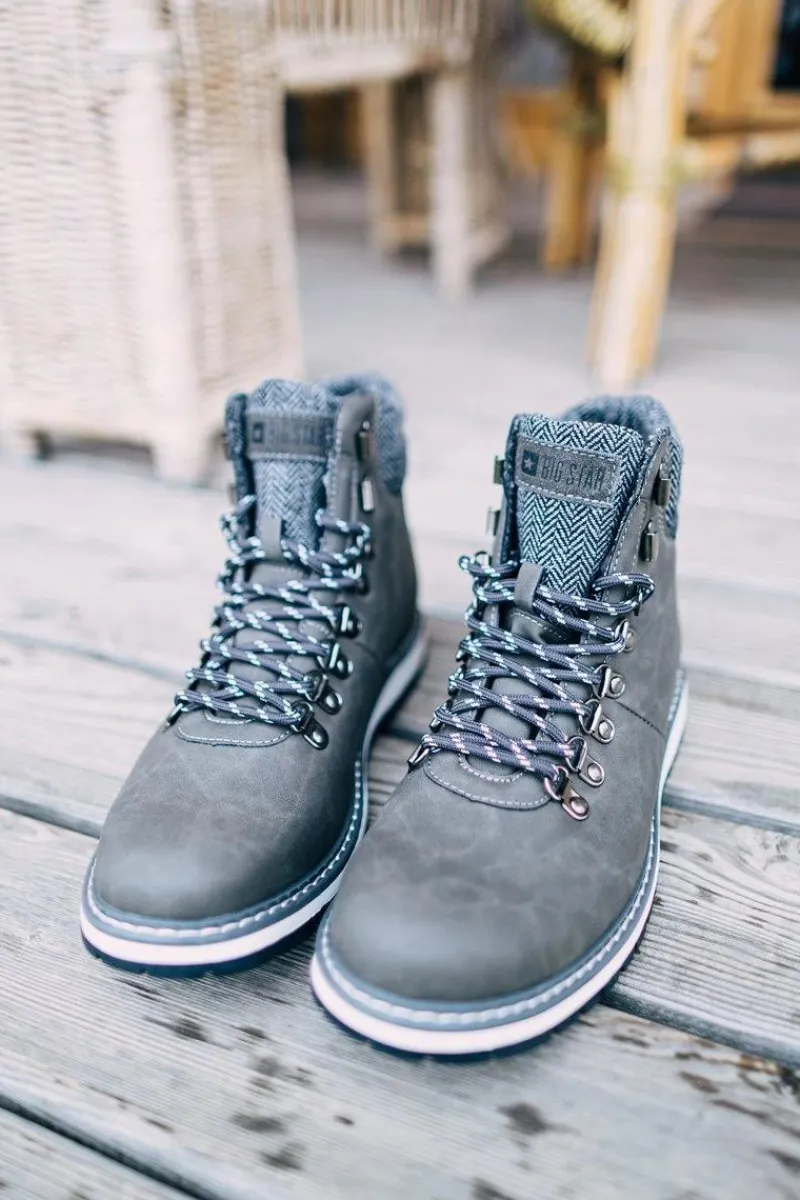 Hot Męskie Botki Trapery Big Star Szare EE174405 Męskie Botki Męskie