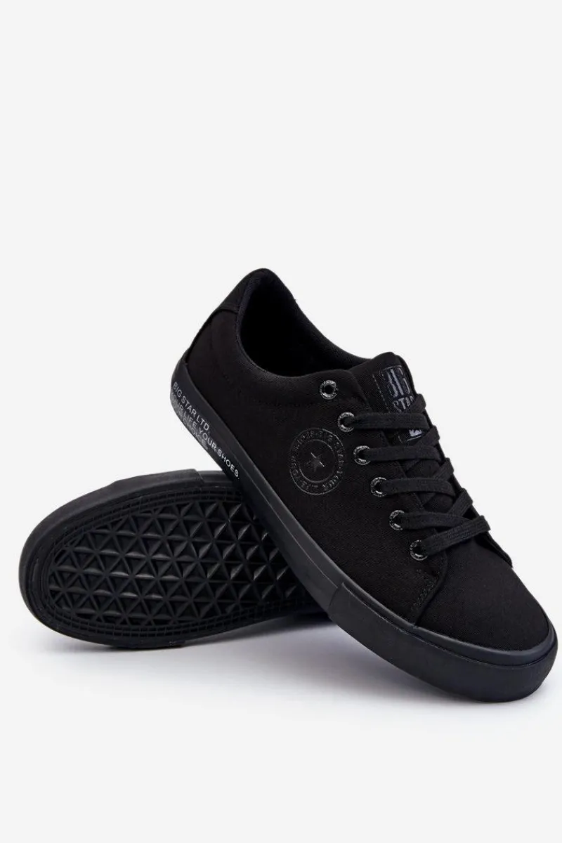 Klasyczny model męskich trampek przyda się każdemu mężczyźnie ceniącemu sobie komfort i wygodę podczas użytkowania. Cholewka wykonana z materiałów z recyklingu. Z boku cholewki znajduje się ozdobne logo marki Big Star. Model klasycznie sznurowany. Miękka wkładka została wykonana z tkaniny. Nosek zaokrąglony. Buty osadzone na delikatnej platformie z podeszwą antypoślizgową. Koniecznie musisz je mieć! Przy wyborze rozmiaru prosimy sugerować się tabelą rozmiarów.