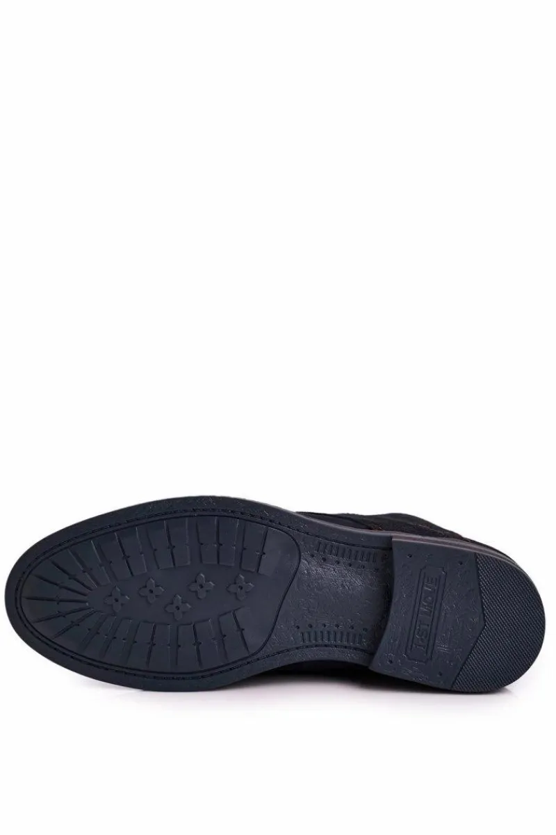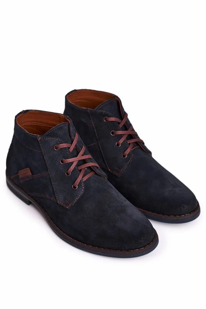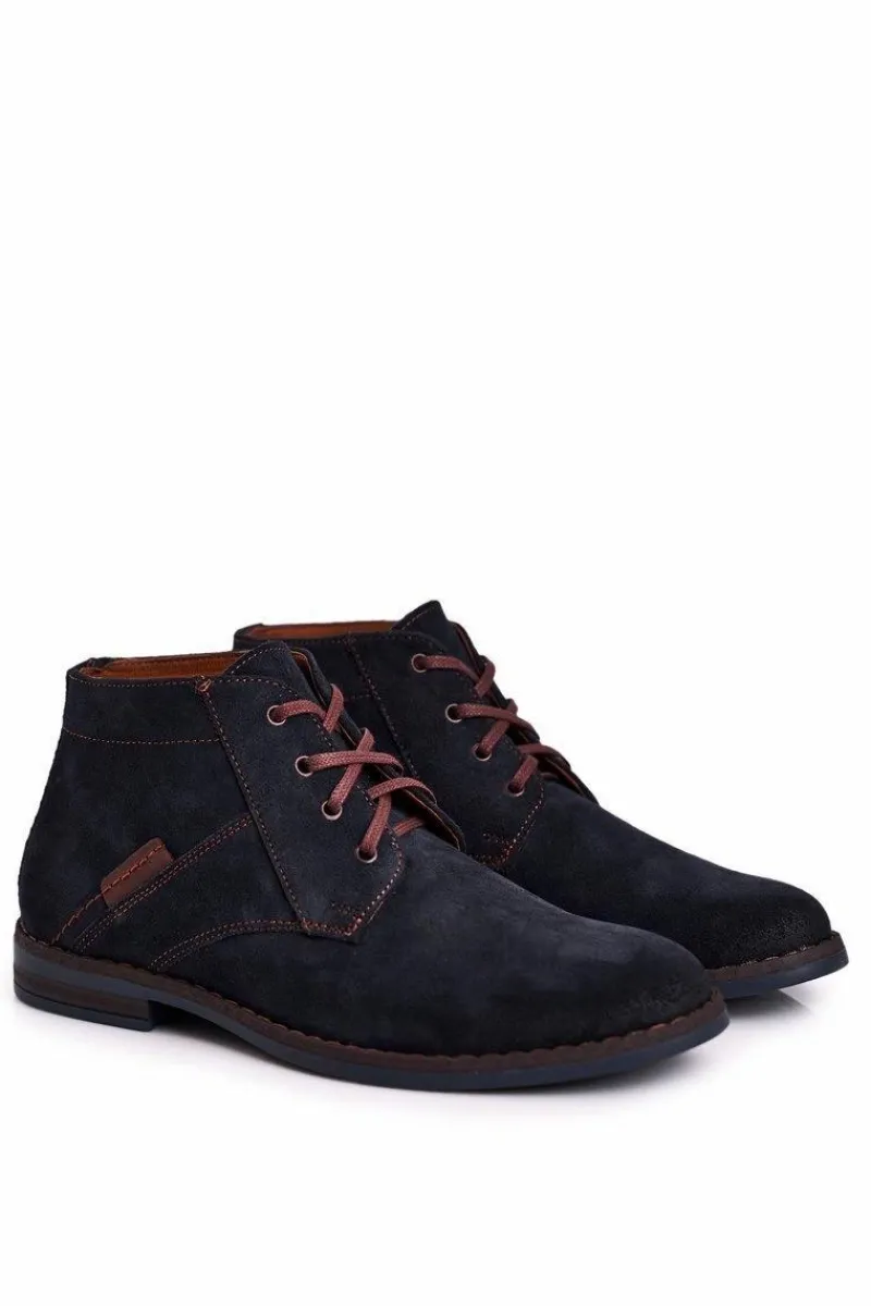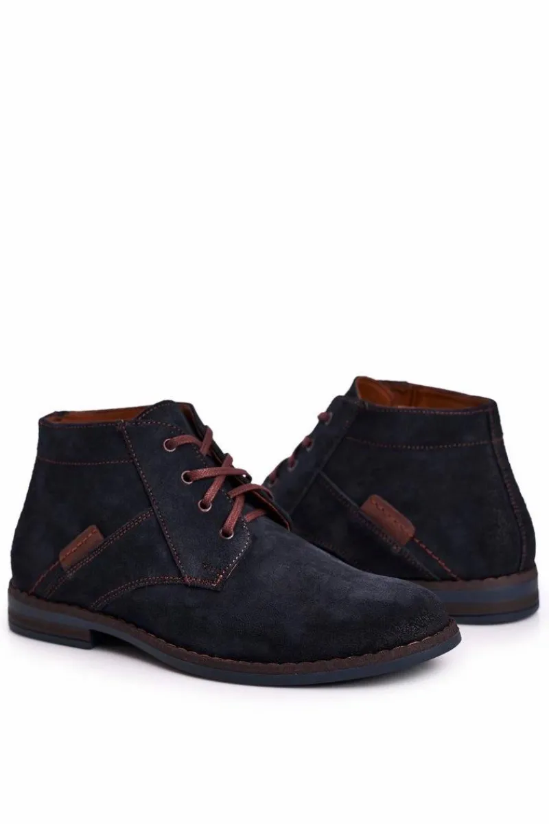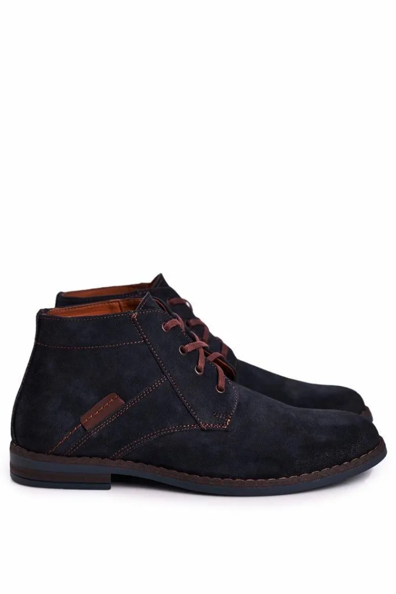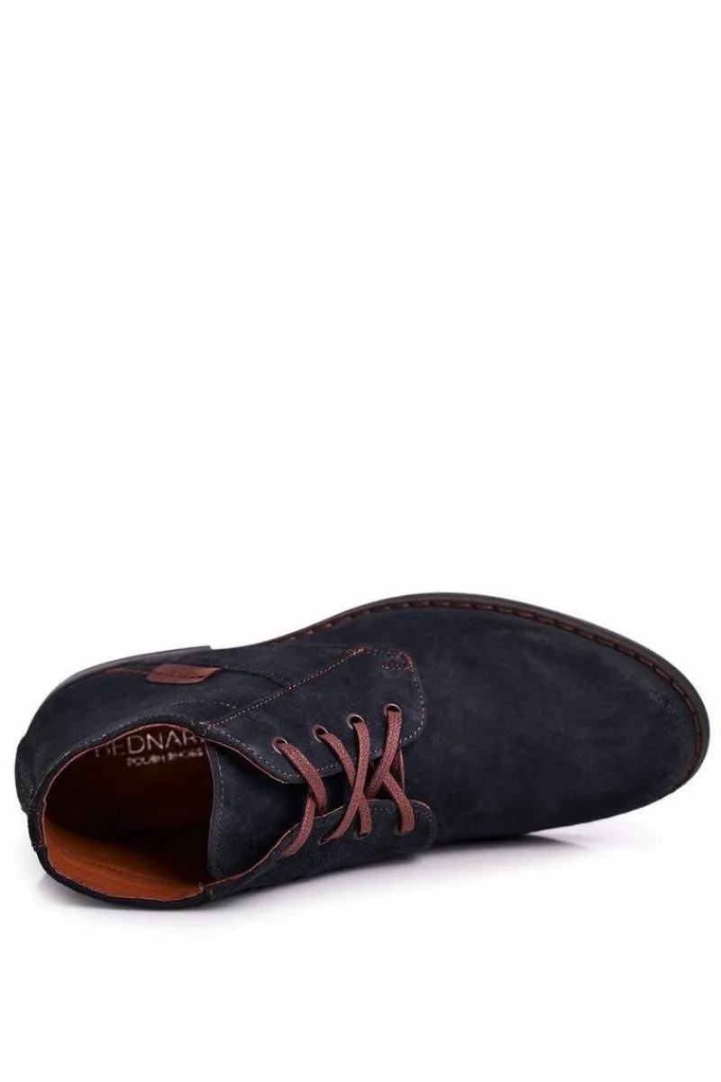 Hot Męskie Skórzane Botki Trzewiki BEDNAREK Granatowe Męskie Botki Męskie
