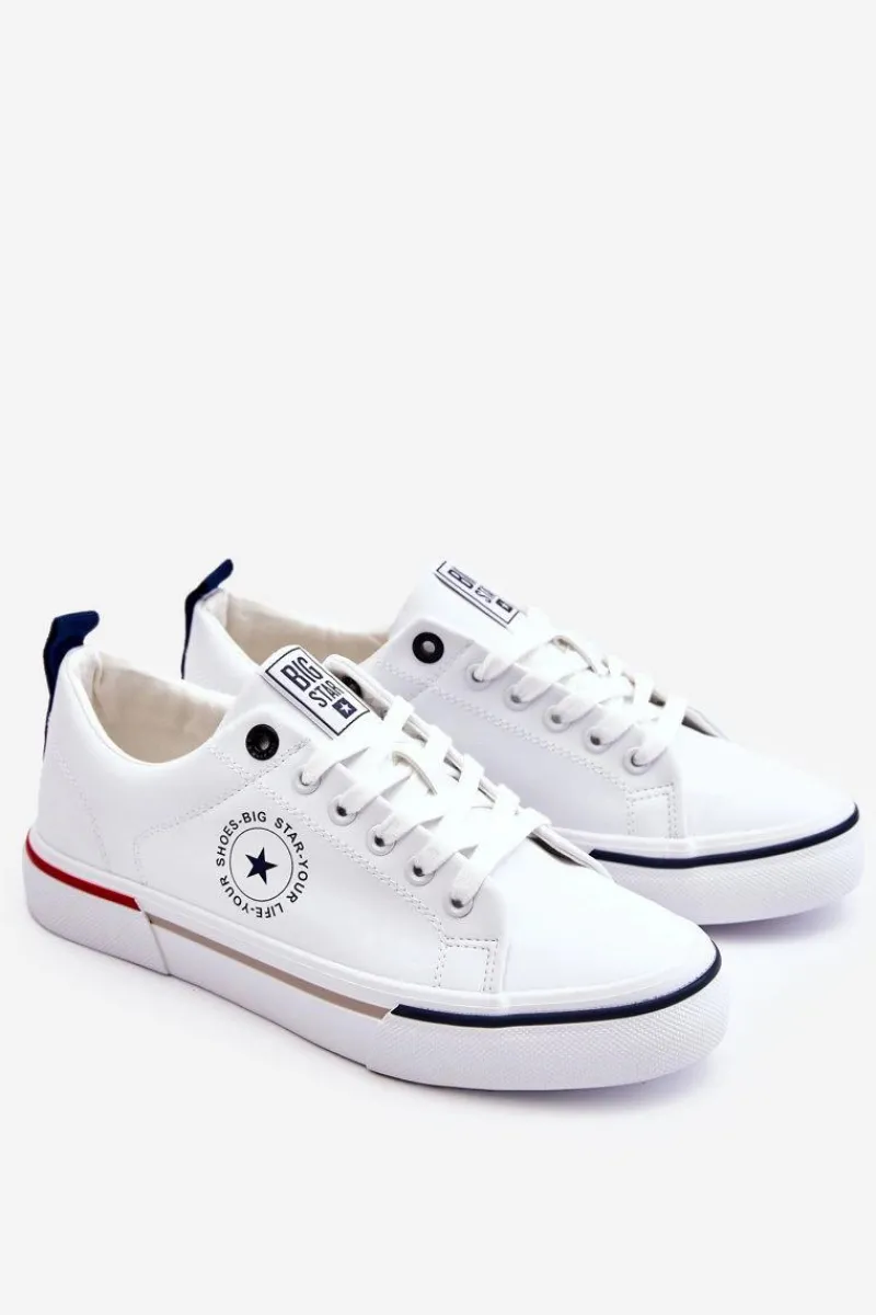 Klasyczne, męskie trampki powinny znaleźć się w szafie każdego mężczyzny! Wygodny model z miękką, materiałową wkładką. Cholewka wykonana z eko skóry. Z boku cholewki znajduje się ozdobne logo marki Big Star. Buty osadzone na delikatnej platformie z podeszwą antypoślizgową. Dodatkowo zapiętek w tych butach jest usztywniany. Przy wyborze rozmiaru prosimy sugerować się tabelą rozmiarów.
