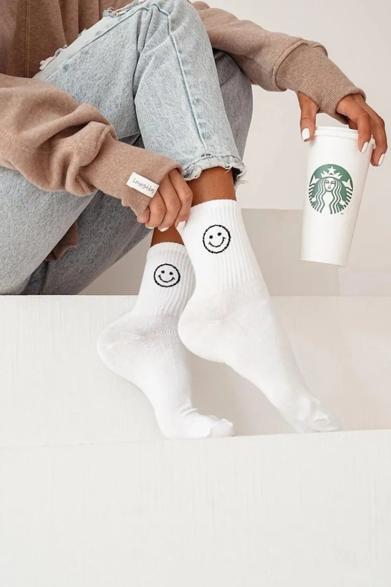 Hot Milena Skarpetki Damskie Bawełniane Emotki Białe