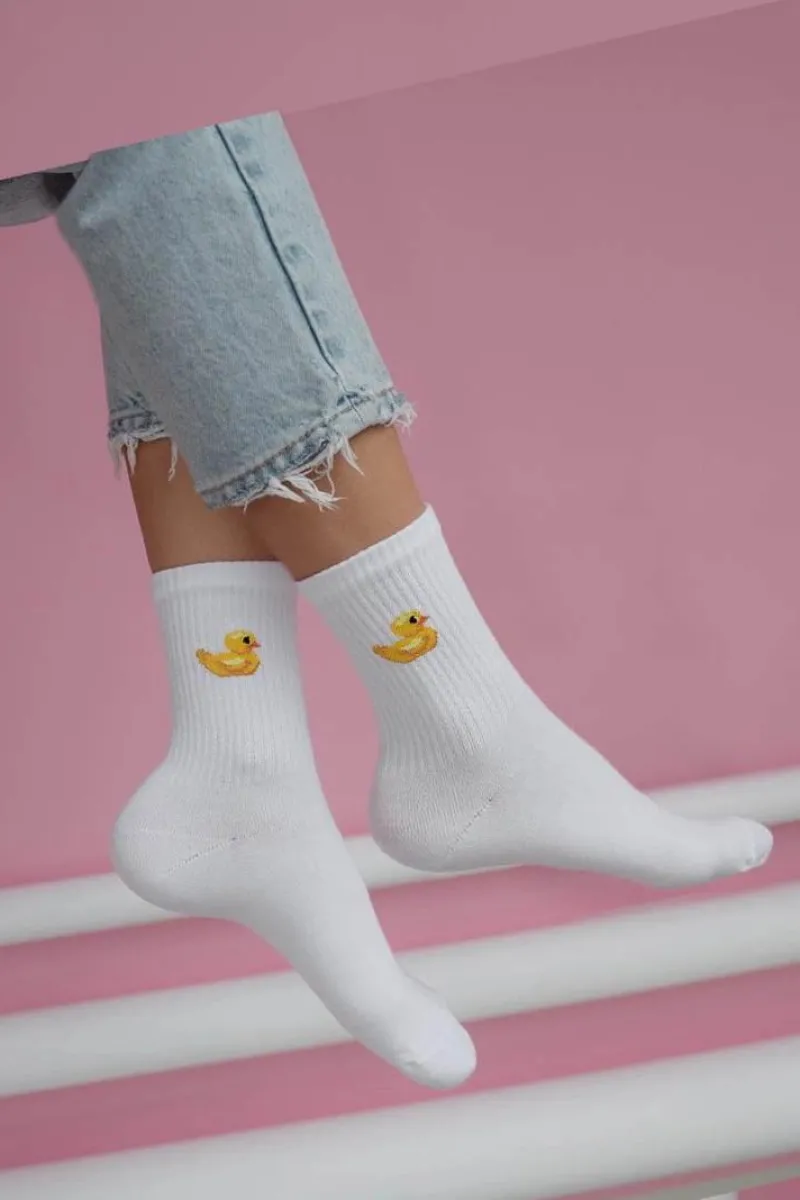 Hot Milena Skarpetki Damskie Bawełniane Kaczuszki Białe