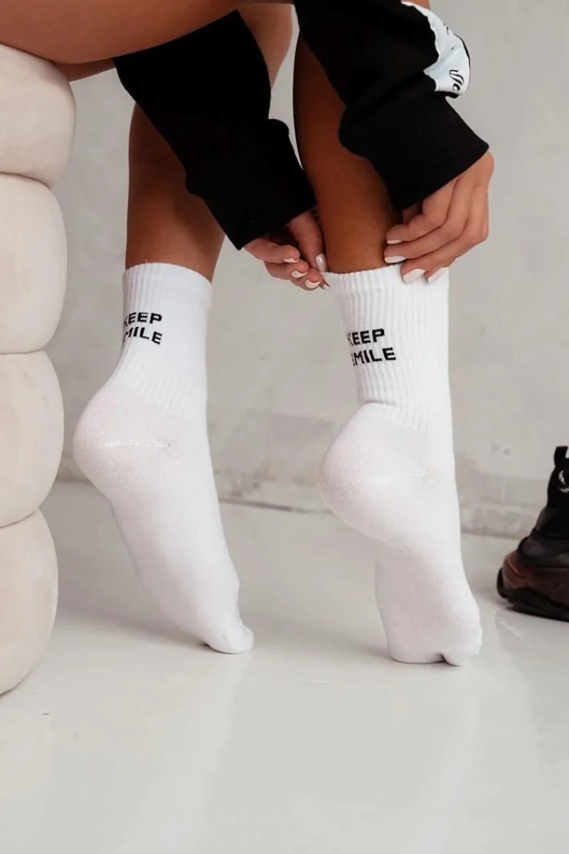 Hot Milena Skarpetki Damskie Z Napisem Keep Smile Białe