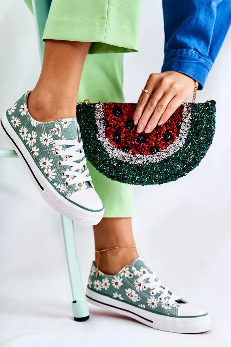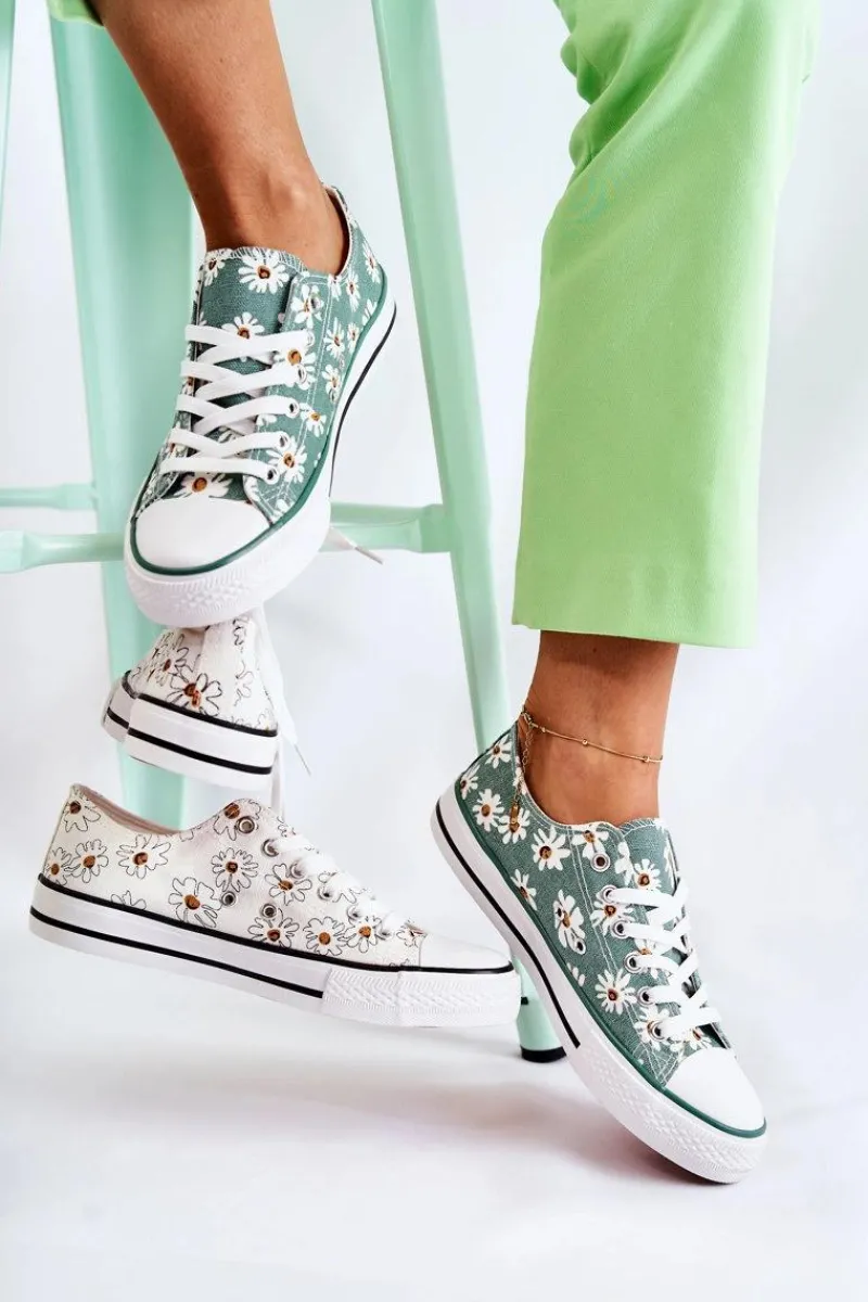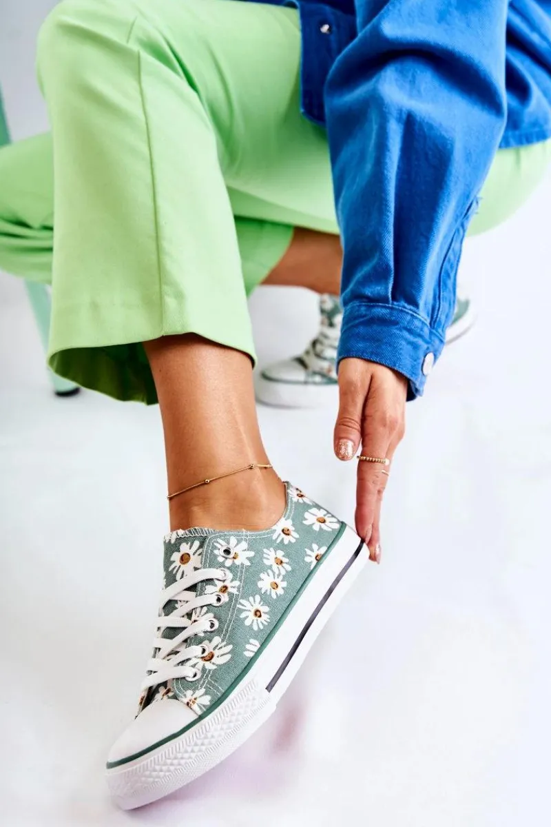 Damskie trampki o klasycznym fasonie i modnym wzorze w kwiaty. Kultowe już trampki pasują do wielu stylizacji. Buty dobrze dopasowują się do kształtu stopy. Zostały wykonane z materiału tekstylnego. Posiadają miękką, materiałową wkładkę oraz antypoślizgową podeszwę. Model wiązany. Nosek został wzmocniony gumowym tworzywem. Koniecznie sprawdź całą naszą kolekcję damskich trampek. Przy wyborze rozmiaru prosimy sugerować się tabelą rozmiarów.