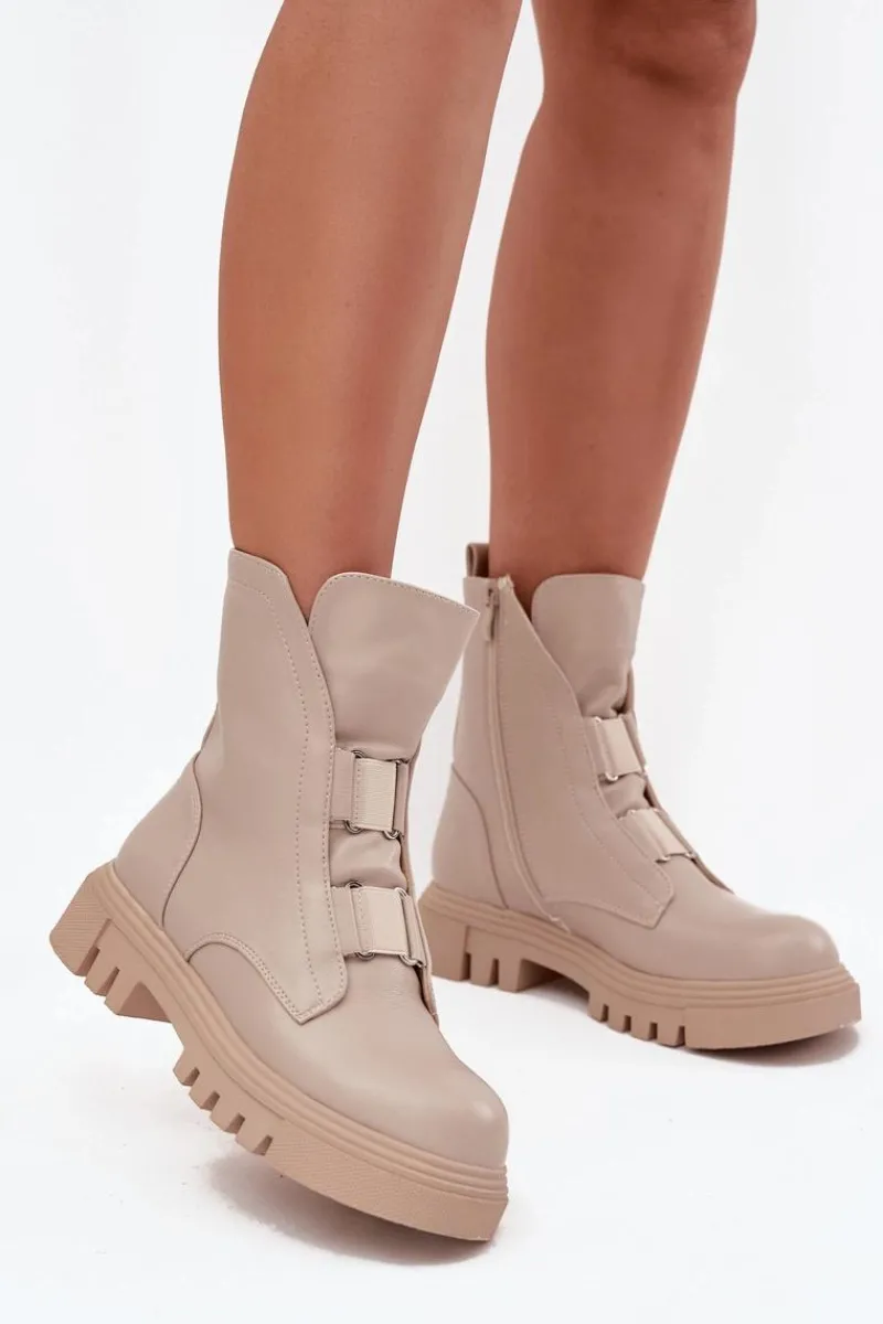 Damskie botki od marki Jezzi zostały wykonane z eko skóry. Zapinane na zamek, co ułatwia zakładanie i ściąganie obuwia. Wnętrze ocieplone kocem obuwniczym, który zapewni ciepło w mroźne dni. Noski zaokrąglone. Modny fason, który doskonale uzupełni wiele jesienno-zimowych stylizacji! Przy wyborze rozmiaru prosimy sugerować się tabelą rozmiarów.