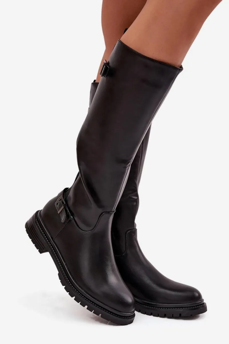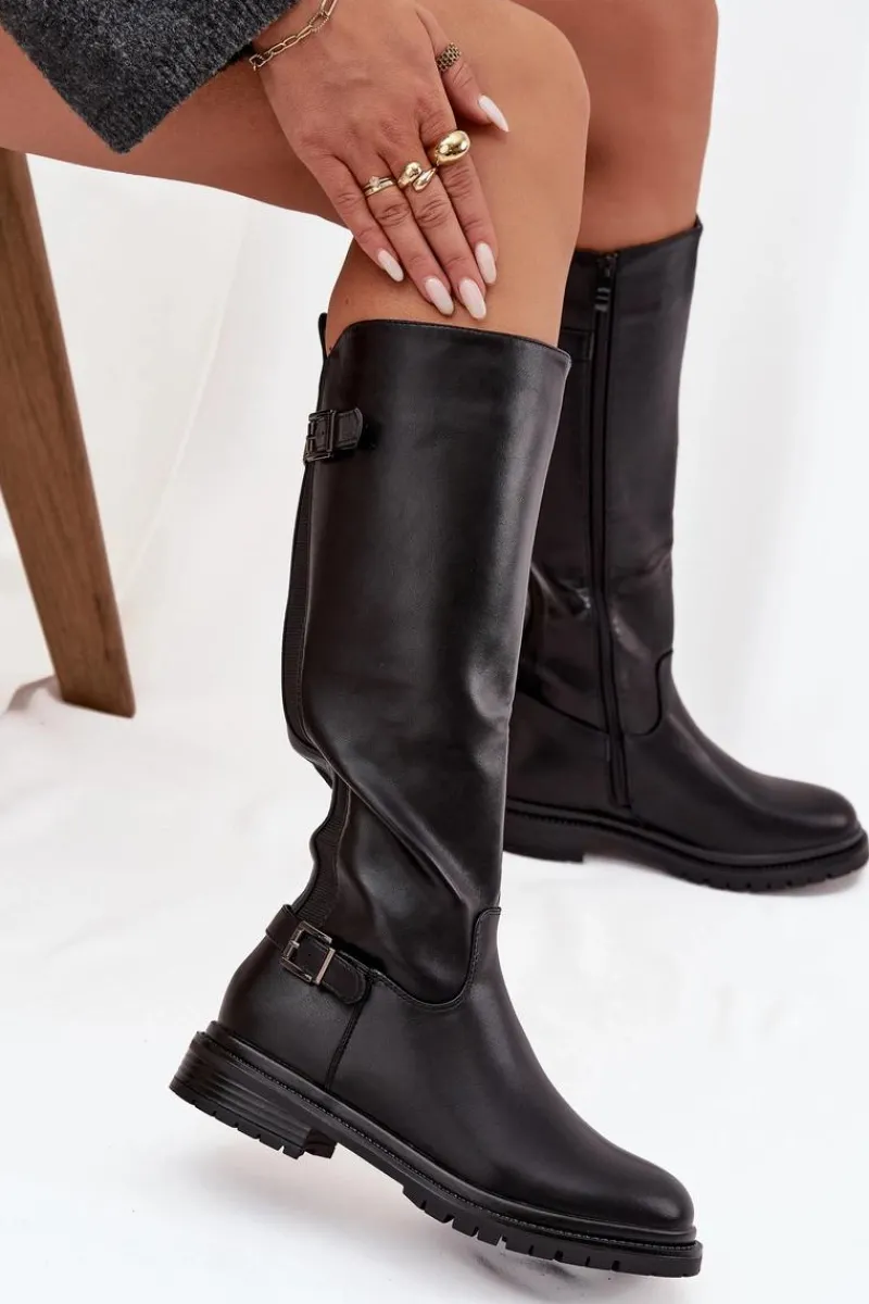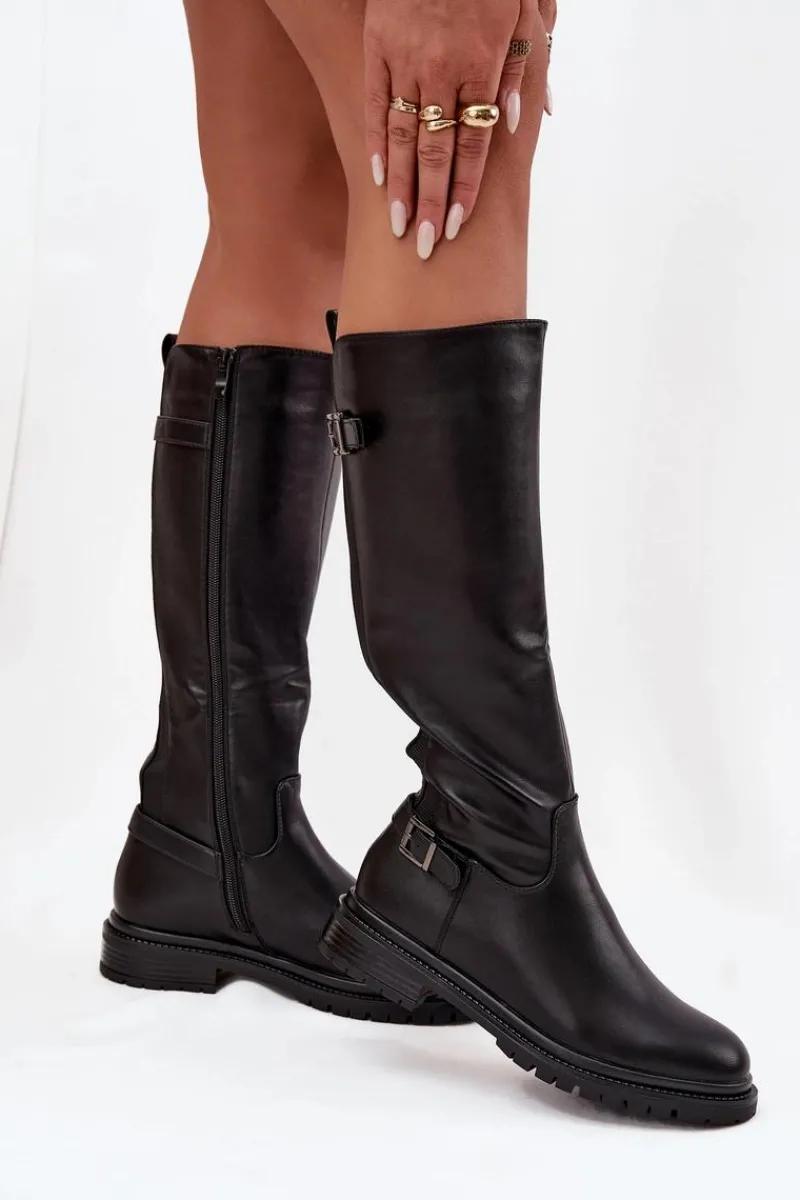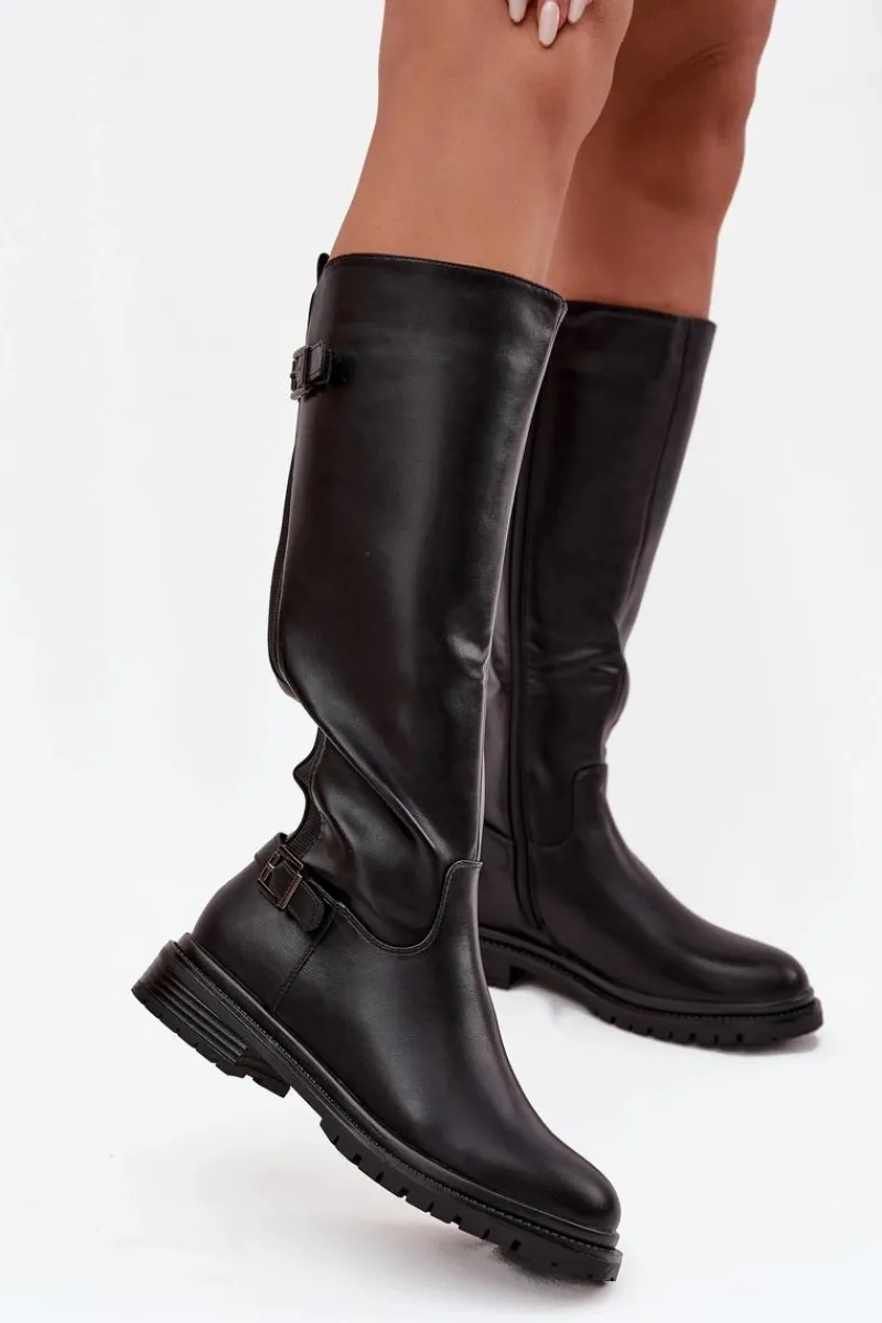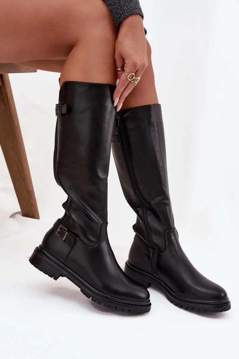Kozaki damskie wykonane z eko skóry to propozycja łącząca styl, wygodę i funkcjonalność. Osadzone na płaskim obcasie, zapewniają komfort podczas codziennego noszenia, a praktyczne zapięcie na zamek ułatwia zakładanie i zdejmowanie. Wnętrze ocieplone kocem obuwniczym gwarantuje przyjemne ciepło w chłodniejsze dni. Model ten posiada dwie elastyczne wstawki oraz paski z ozdobnymi klamrami nadają całości stylowego, nieco rockowego charakteru. To idealne kozaki na sezon jesienno-zimowy – praktyczne, modne i wygodne. Przy wyborze rozmiaru prosimy kierować tabelą rozmiarów.