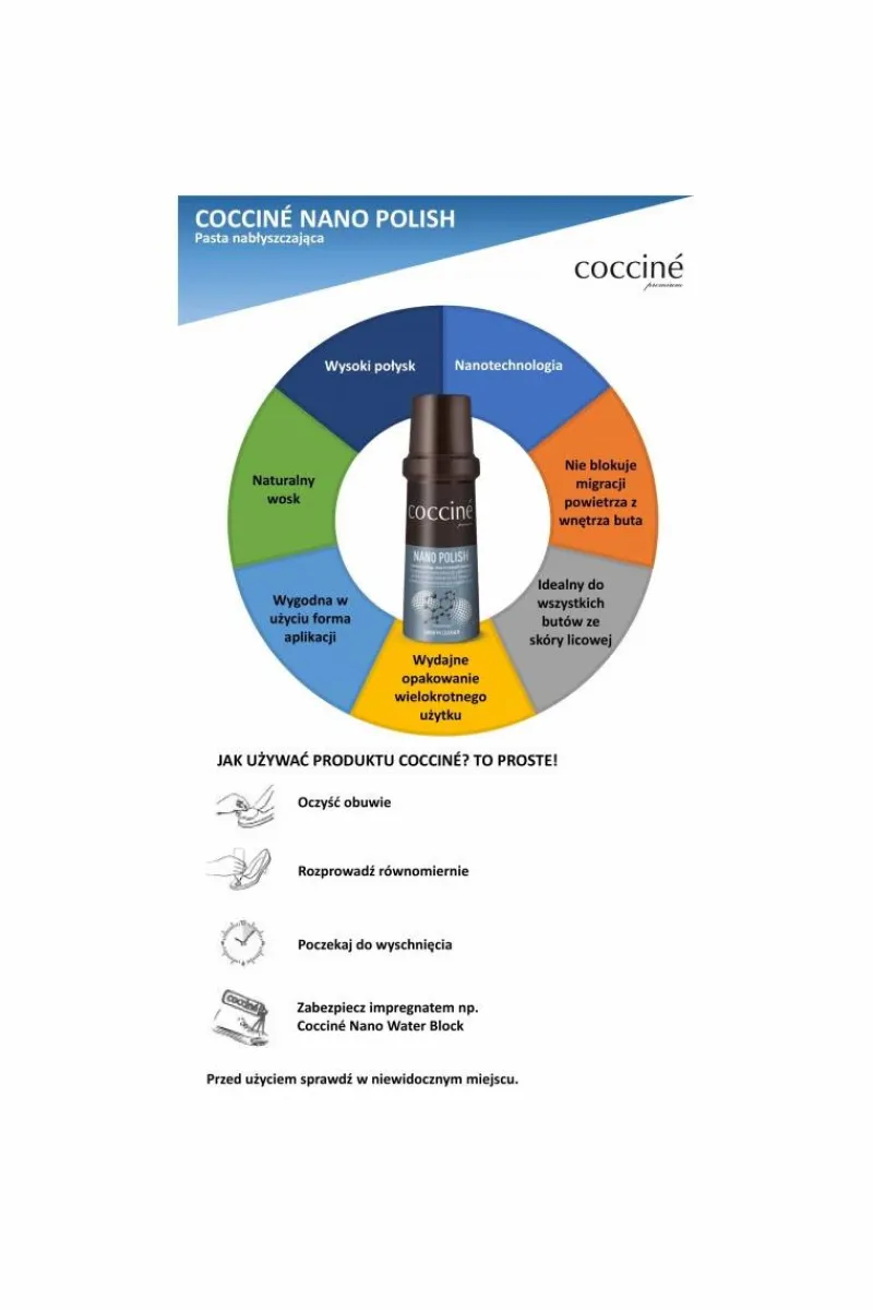 Obuwie i przedmioty wykonane ze skór licowych (zwanych także „gładkimi”) mają swój niepowtarzalny urok, wynikający z naturalnego piękna: faktury, delikatnych „wzorów” lub gładkości, ostrego lub półmatowego połysku. Jeśli chcemy, by zachwycały swoim wyglądem przez lata, należy zadbać o nie preparatami Cocciné, stworzonymi specjalnie do czyszczenia, pielęgnacji i ochrony obuwia oraz przedmiotów ze skór licowych.