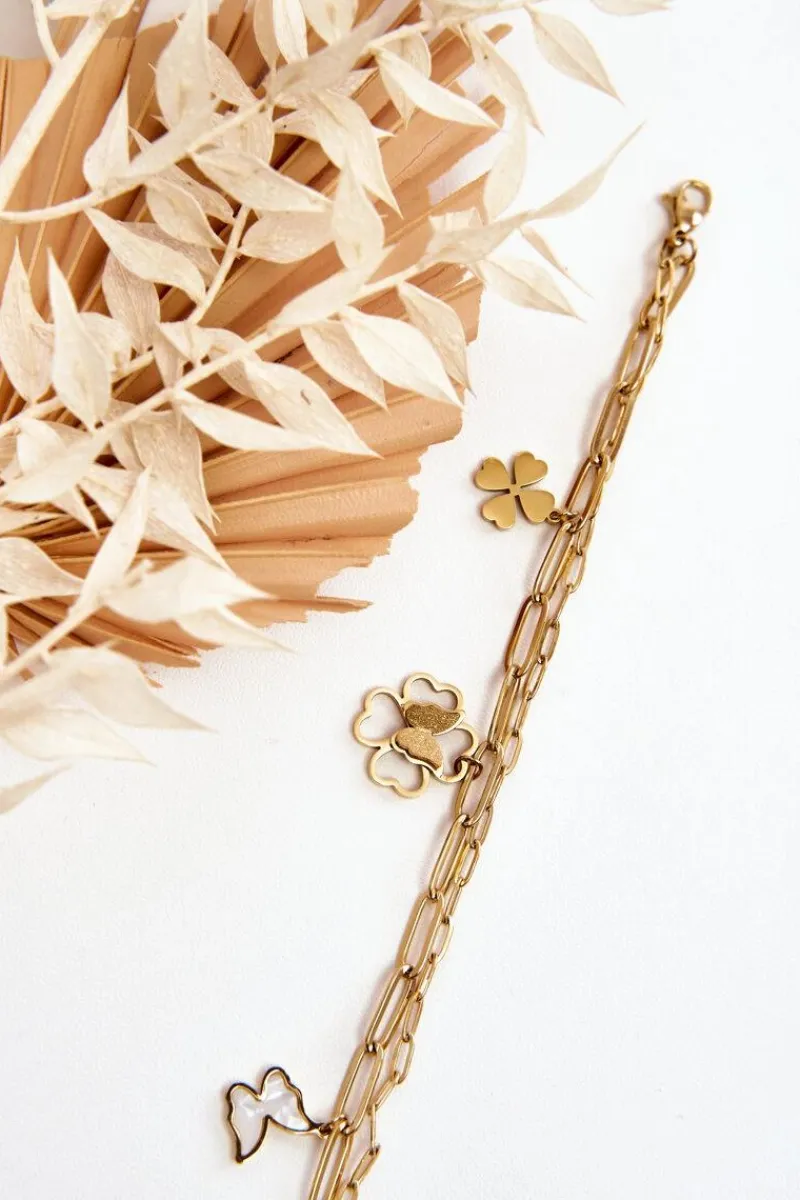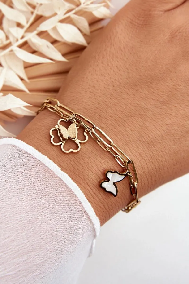 Hot Podwójna Bransoletka Z Koniczynami I Motylami Złota Bransoletki