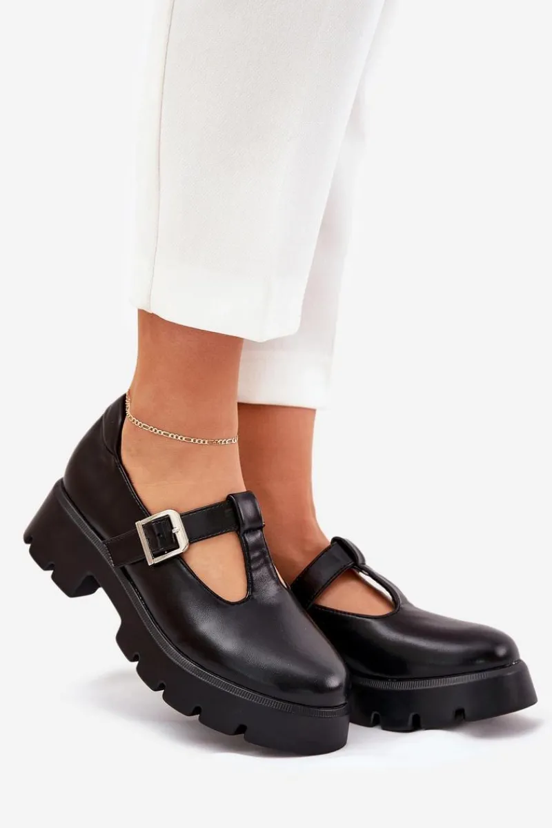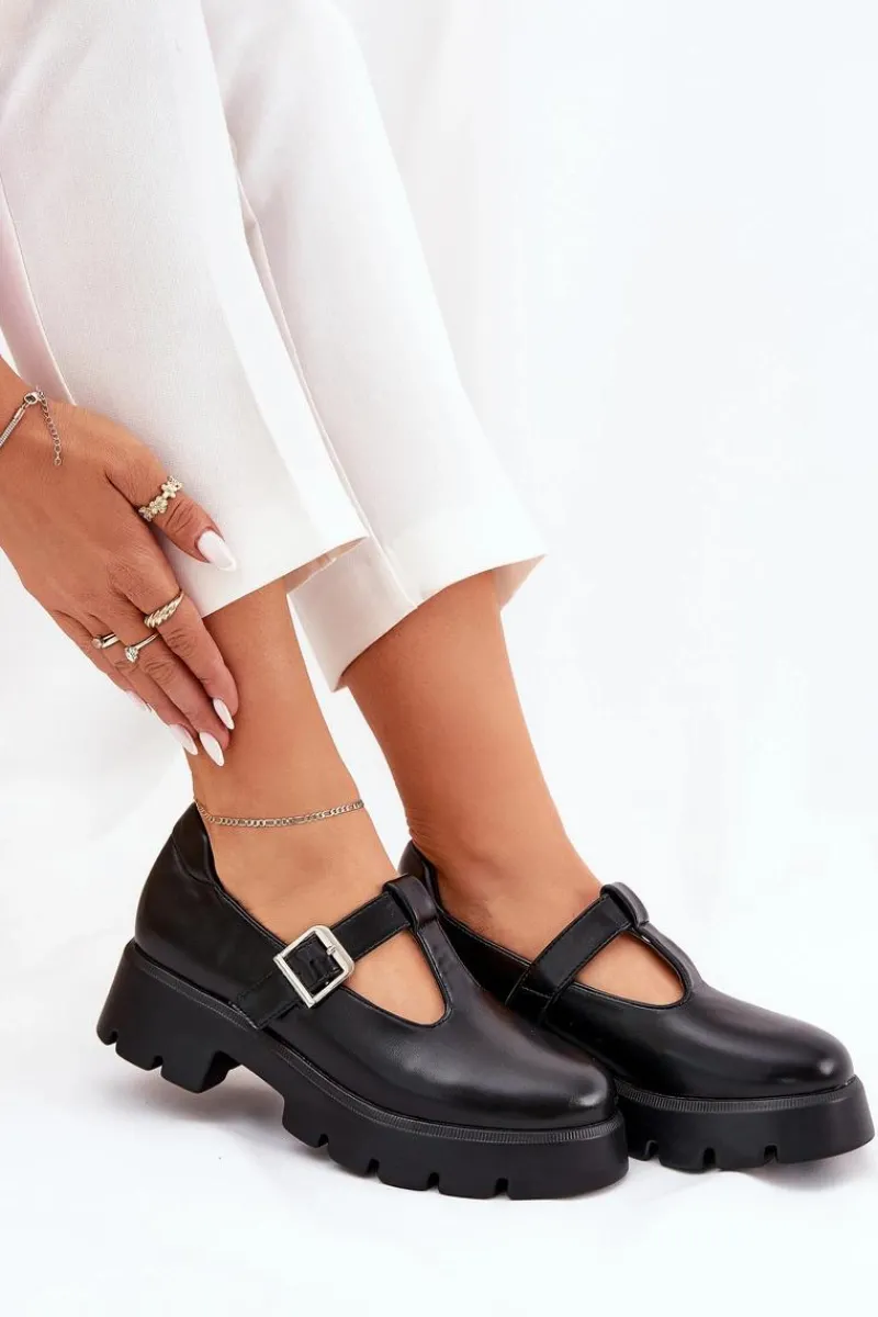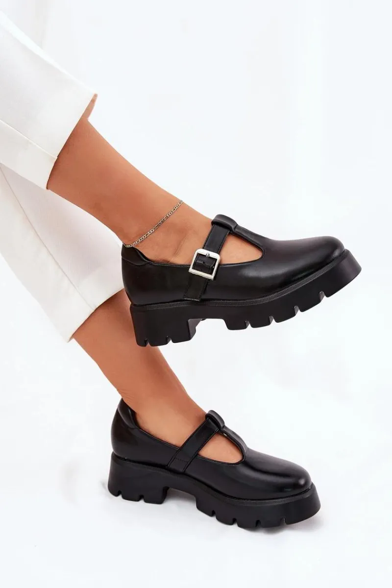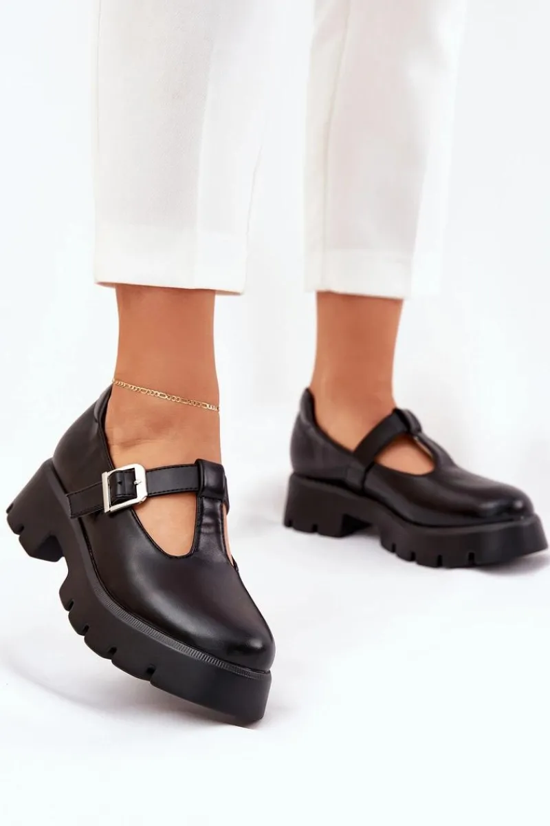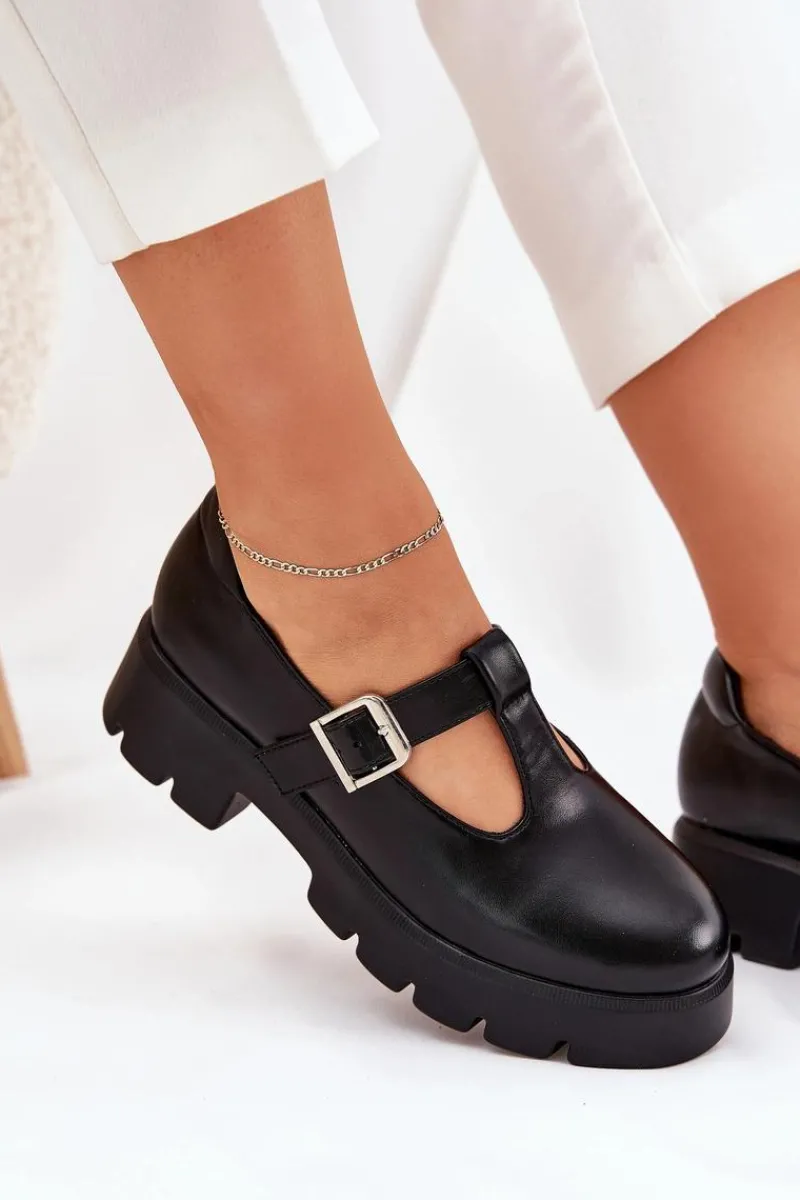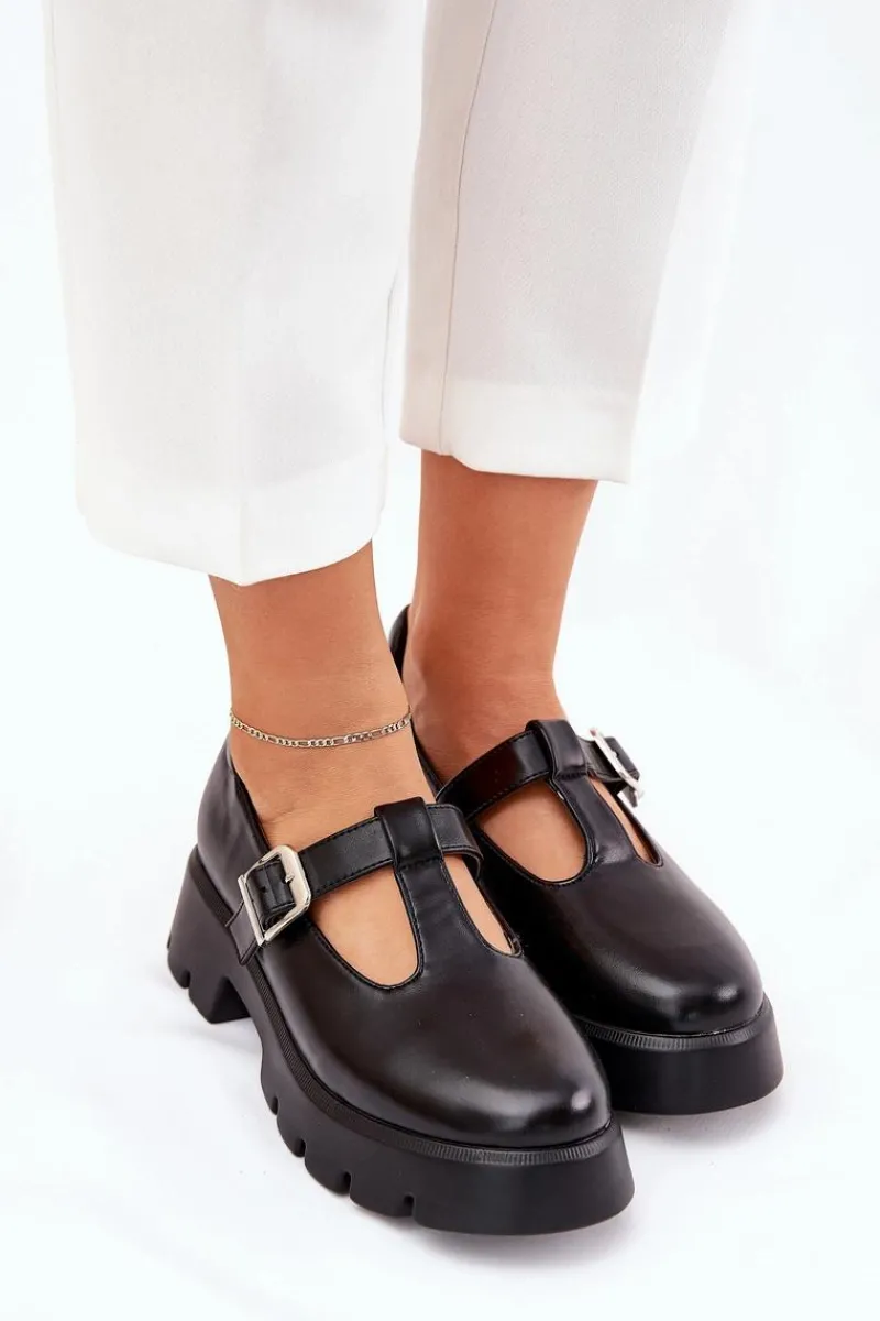 Stylowe półbuty damskie wykonane z eko skóry to doskonałe połączenie klasyki i nowoczesnego wyglądu. Osadzone na płaskim obcasie i platformie, zapewniają komfort oraz stabilność na każdym kroku. Paseczek z klamrą na śródstopiu zwiększa dopasowanie i podtrzymuje stopę. Idealne na co dzień, do casualowych i bardziej eleganckich stylizacji! Przy wyborze rozmiaru prosimy sugerować się tabelą rozmiarów.