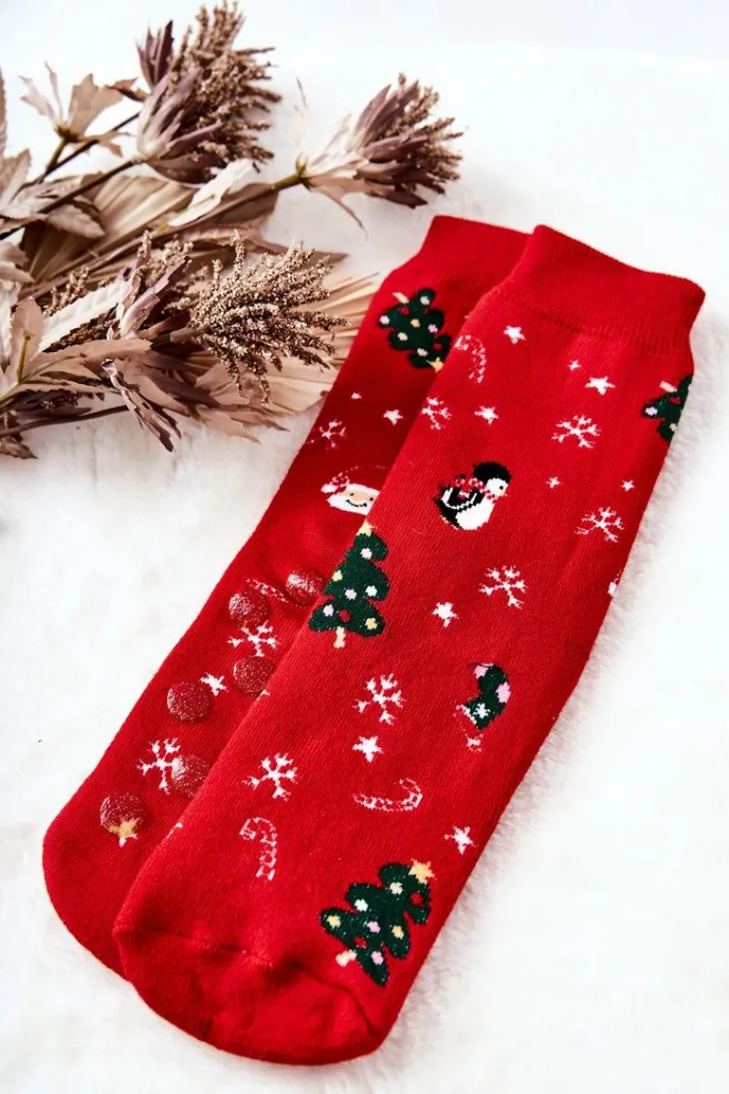 Ciepłe, grube damskie skarpetki, które idealnie sprawdzą się podczas chłodnych dni. Antypoślizgowa podeszwa zagwarantuje bezpieczeństwo na śliskich nawierzchniach w domu. Dzięki przepięknym świątecznym wzorom skarpetki idealnie sprawdzą się również jako prezent.