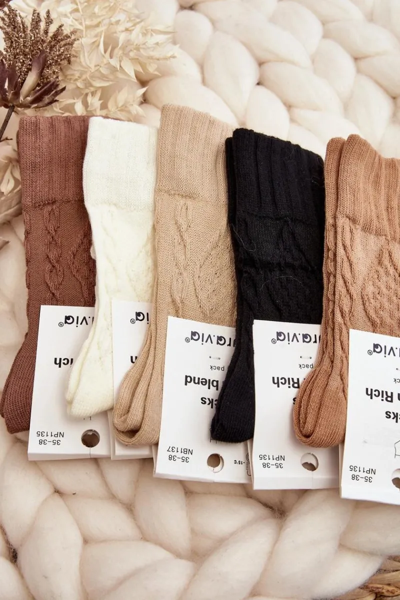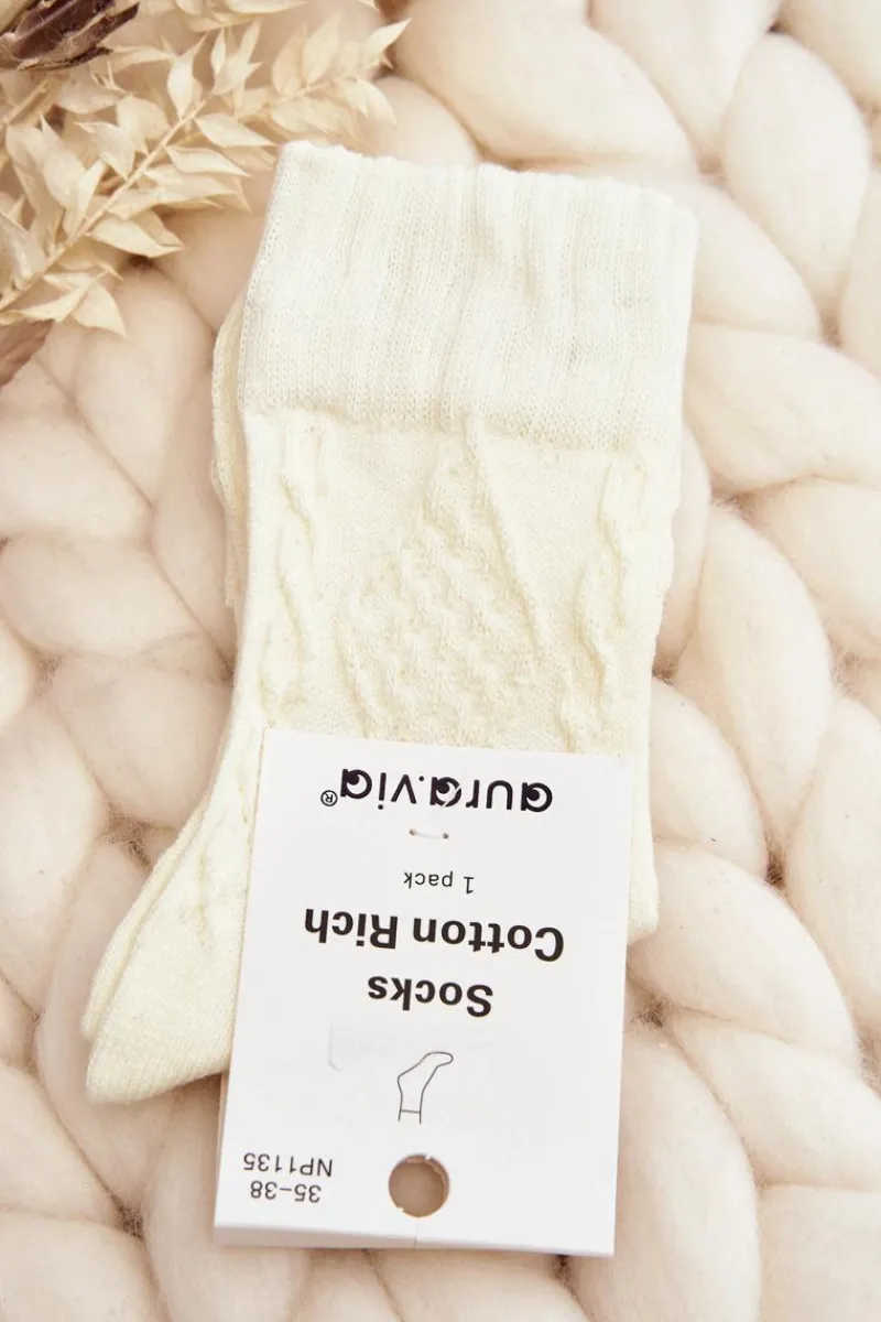 Hot Skarpety Damskie Z Tłoczeniem Kremowe Skarpetki|Skarpetki