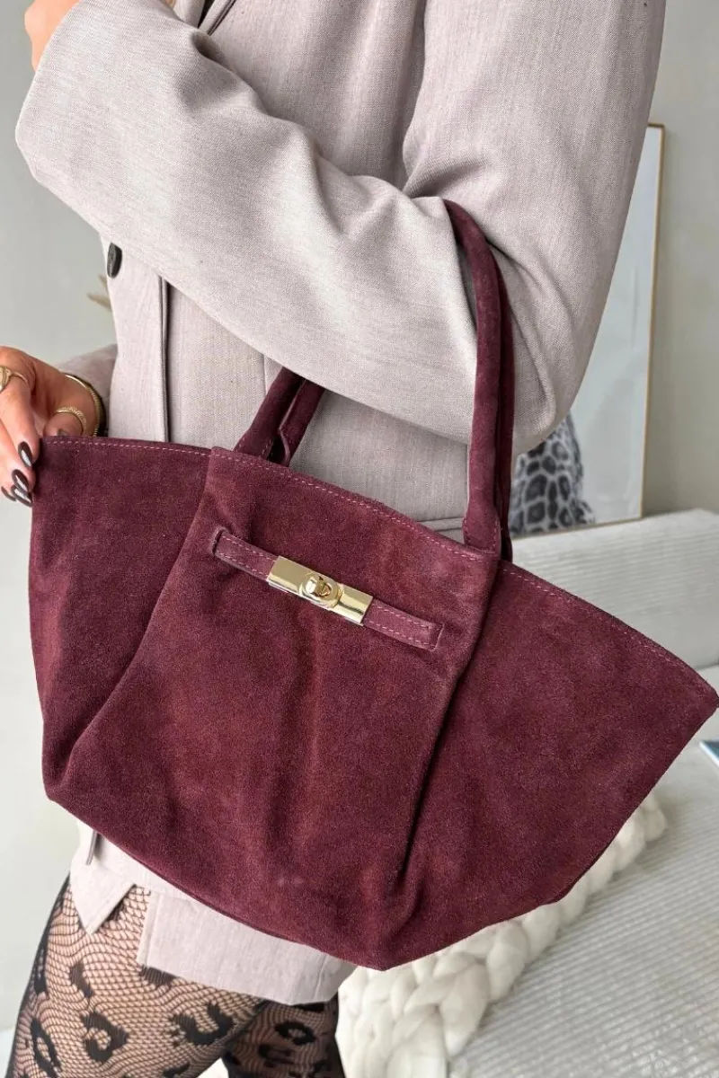 Stylowa torebka wykonana z naturalnego zamszu to elegancki i ponadczasowy dodatek, który doskonale sprawdzi się w codziennych stylizacjach. Model zapinany na zamek gwarantuje bezpieczeństwo i wygodę użytkowania. Torebka posiada wygodne uchwyty oraz odpinany, regulowany pasek, dzięki czemu można nosić ją na różne sposoby – w dłoni lub na ramieniu. To klasyczny, a zarazem modny model, który doda uroku każdej stylizacji.