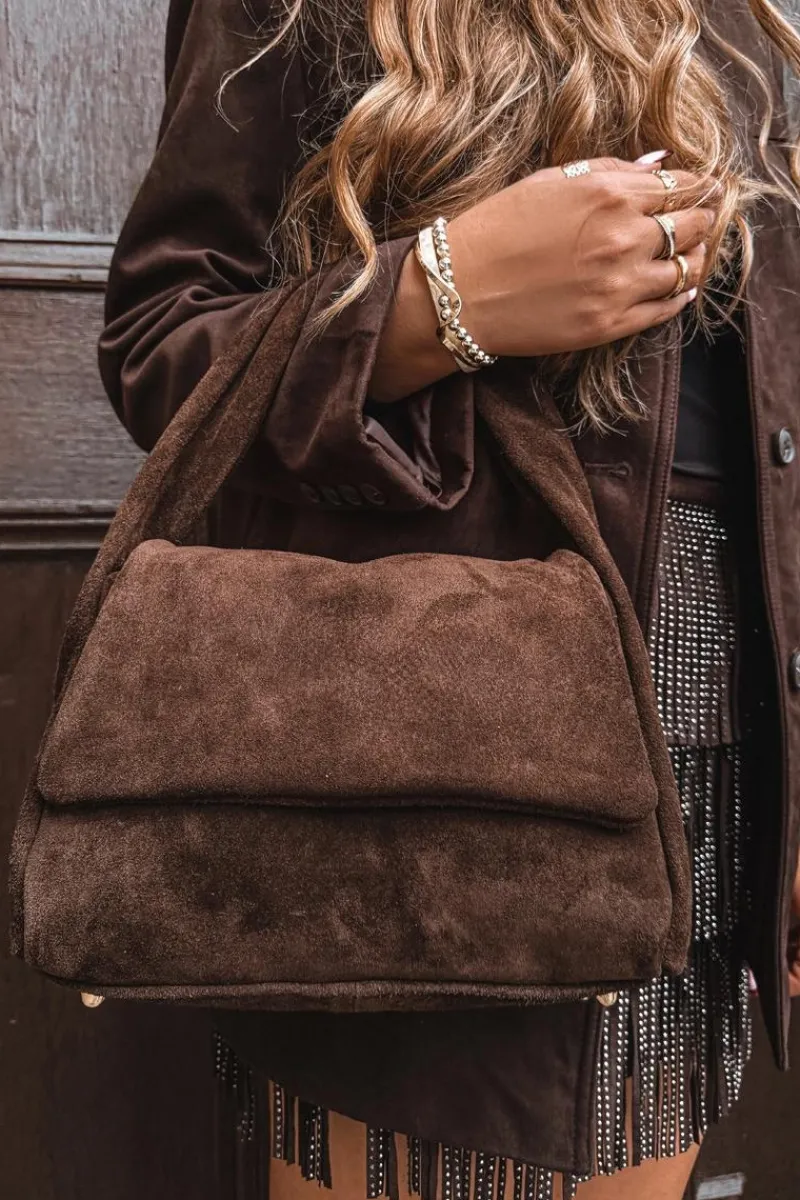 Torebka typu listonoszka wykonana z naturalnego zamszu to elegancki i praktyczny dodatek, idealny do codziennych stylizacji. Model posiada klapę zapinaną na klips magnetyczny, a wnętrze dodatkowo zabezpieczone zamkiem, co gwarantuje wygodę i bezpieczeństwo użytkowania. W środku znajdują się dwie kieszonki, w tym jedna zapinana na suwak, które ułatwiają organizację drobiazgów. Torebka wyposażona jest w dodatkowy cienki pasek, który można regulować i odpiąć, dzięki czemu można nosić ją na ramieniu lub w dłoni. To stylowy, ponadczasowy model, który sprawdzi się zarówno na co dzień, jak i w eleganckich stylizacjach.
