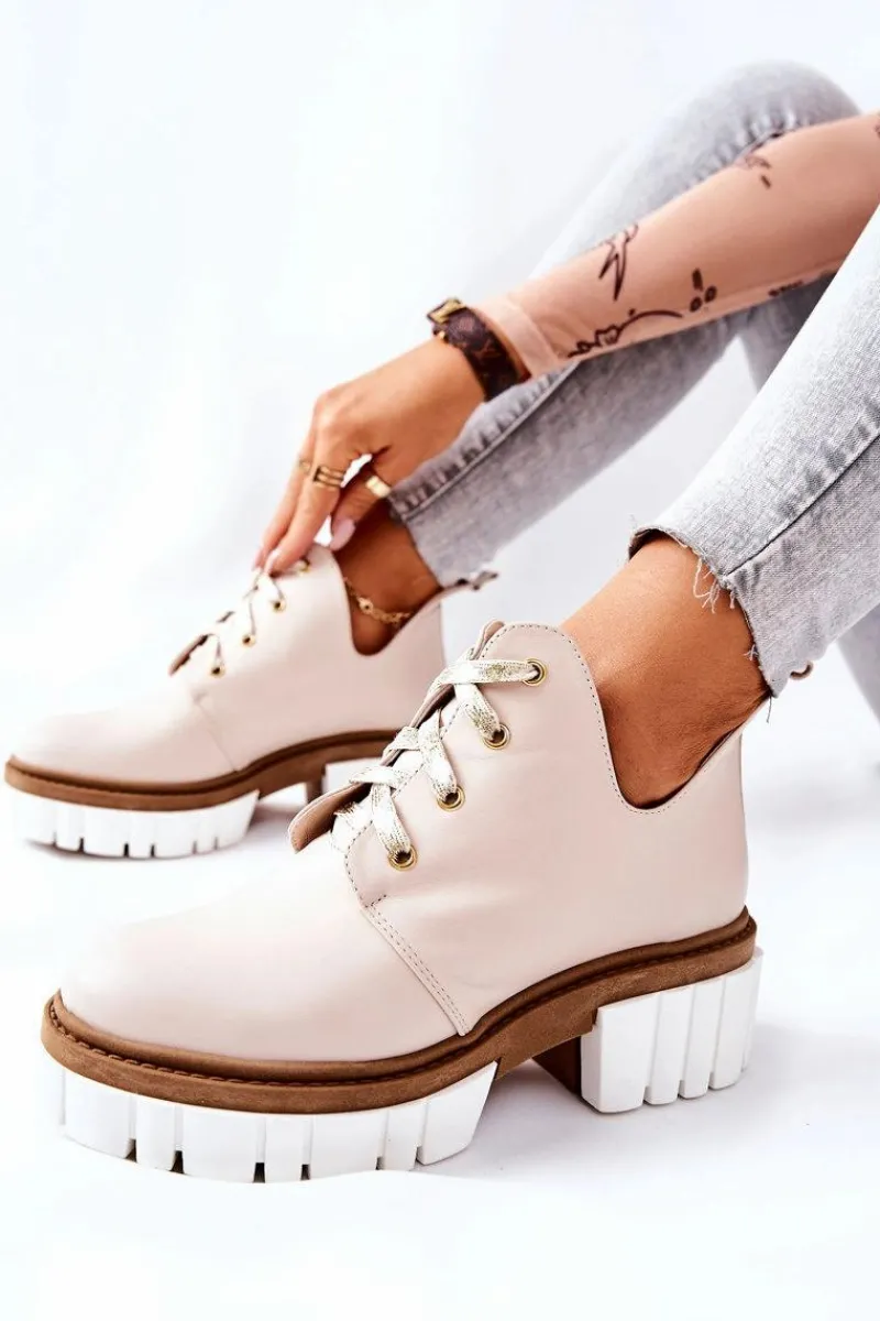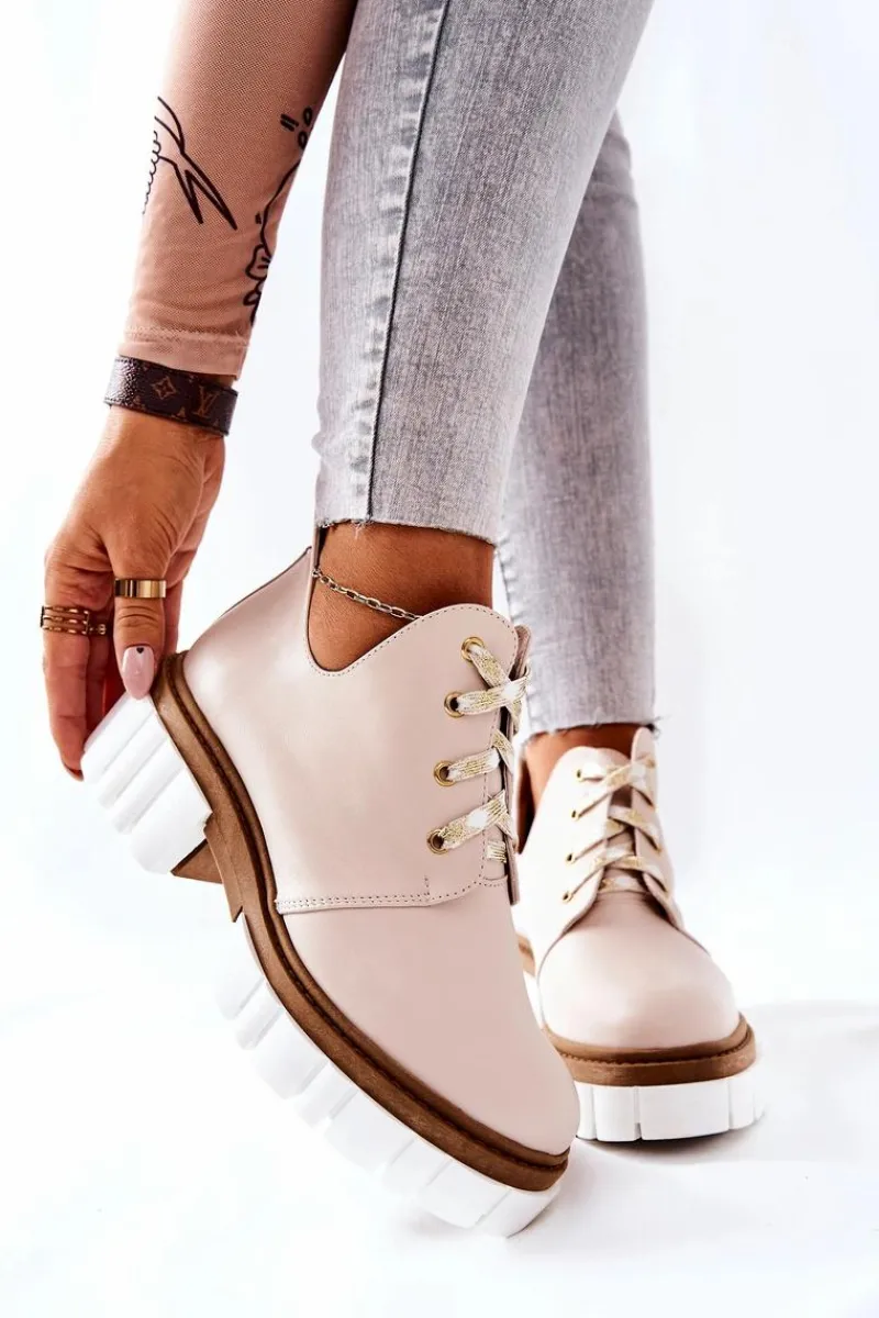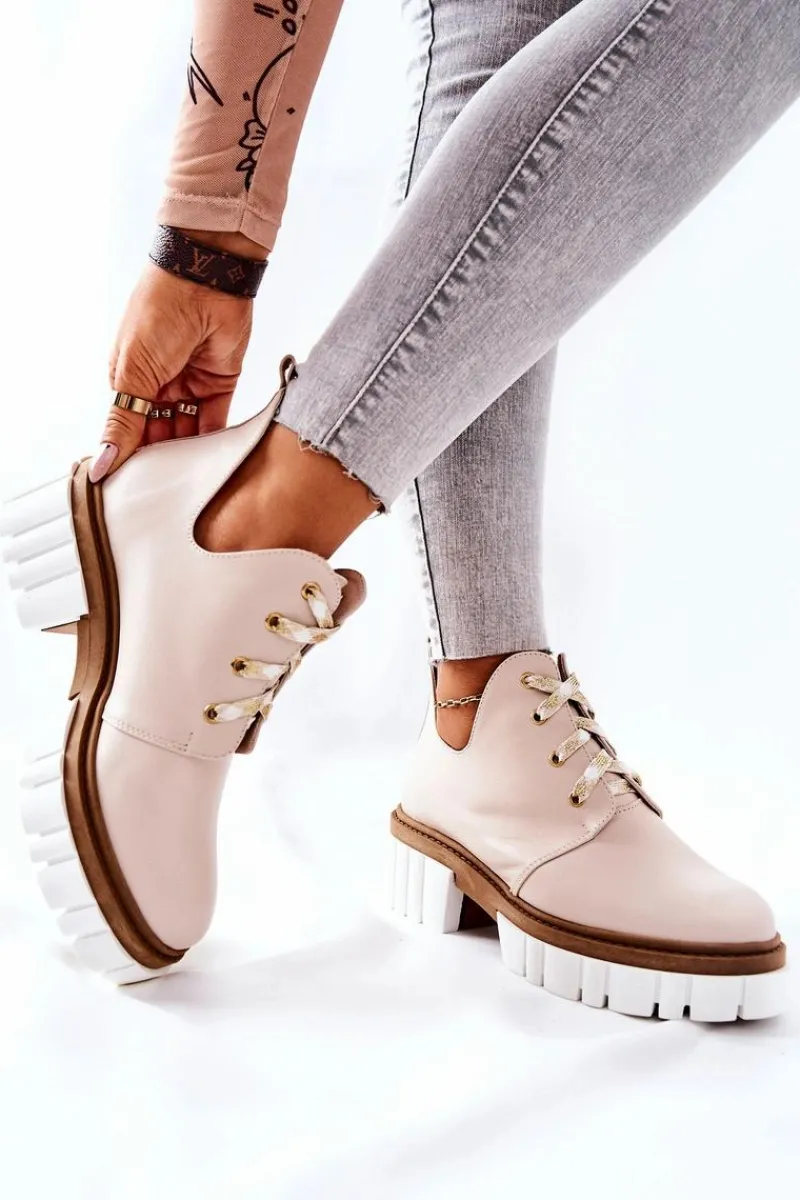 Botki na masywnej platformie to HIT tego sezonu. Wykonane w całości z naturalnej skóry. Posiadają efektowne wycięcia na boku cholewki. Wiązanie sprawia, że buty można dopasować do własnych wymagań. Ten model sprawi, że każda stylizacja będzie naprawdę wyjątkowa! Przy wyborze rozmiaru prosimy sugerować się tabelą rozmiarów.
