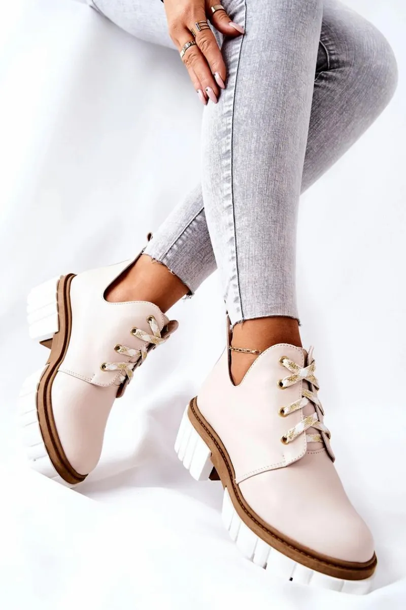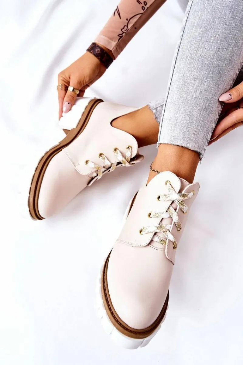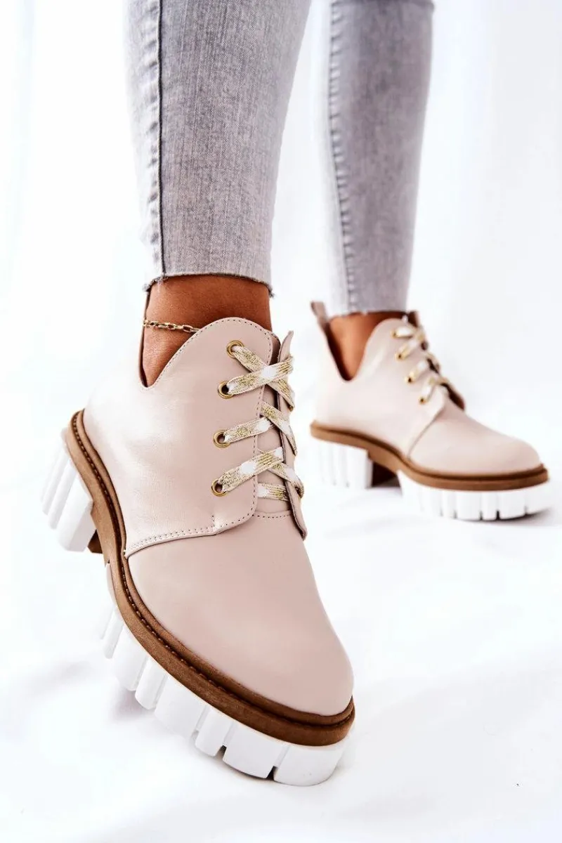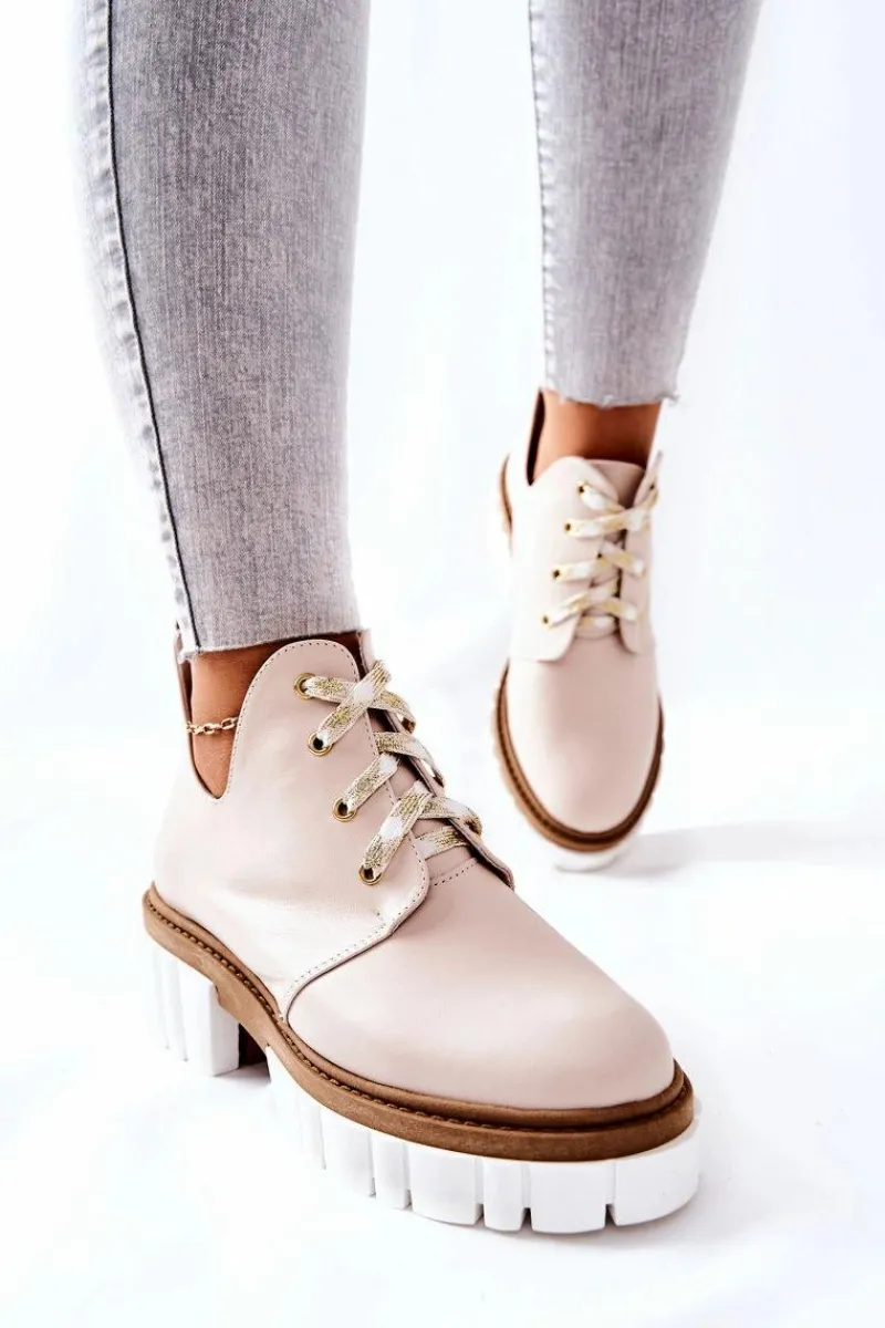 Botki na masywnej platformie to HIT tego sezonu. Wykonane w całości z naturalnej skóry. Posiadają efektowne wycięcia na boku cholewki. Wiązanie sprawia, że buty można dopasować do własnych wymagań. Ten model sprawi, że każda stylizacja będzie naprawdę wyjątkowa! Przy wyborze rozmiaru prosimy sugerować się tabelą rozmiarów.