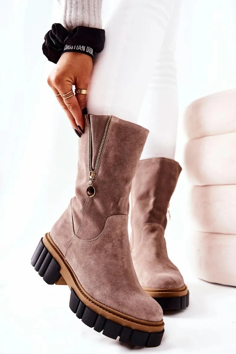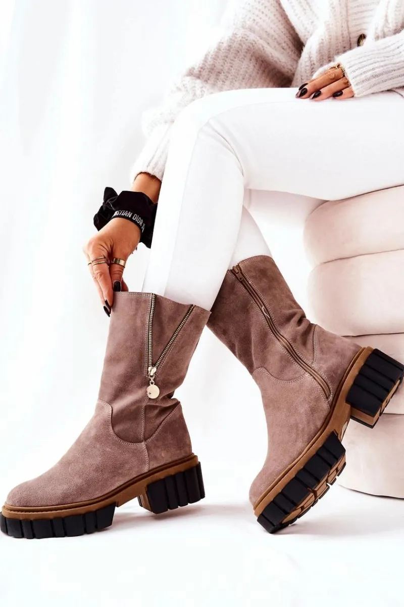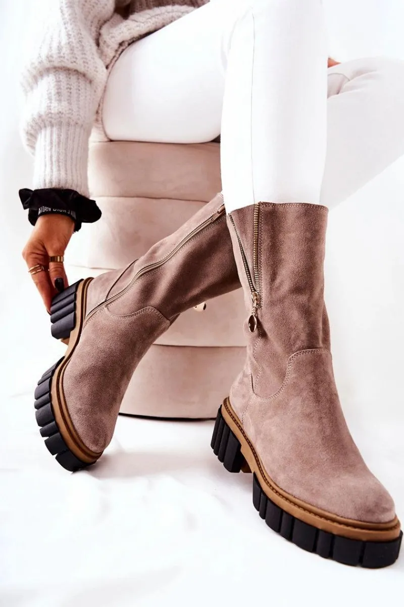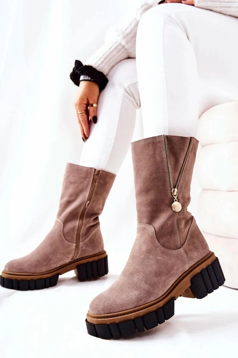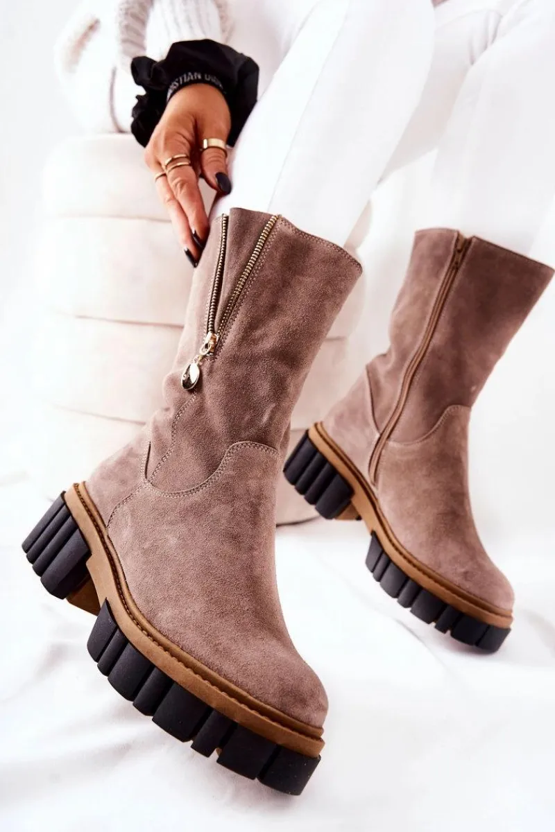 Śliczne botki-kozaczki zostały wykonane z naturalnej zamszowej skóry. Środek jest ocieplany kocem obuwniczym. Botki posiadają z obu stron suwaki. Będą pasować do wielu stylizacji. Podeszwa oraz masywny obcas zapewnią stabilność. Koniecznie musisz je mieć! Nie czekaj aż znikną!Przy wyborze rozmiaru prosimy sugerować się tabelą rozmiarów.