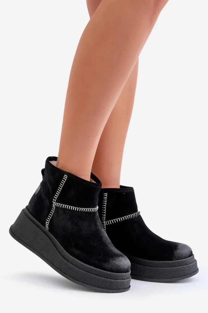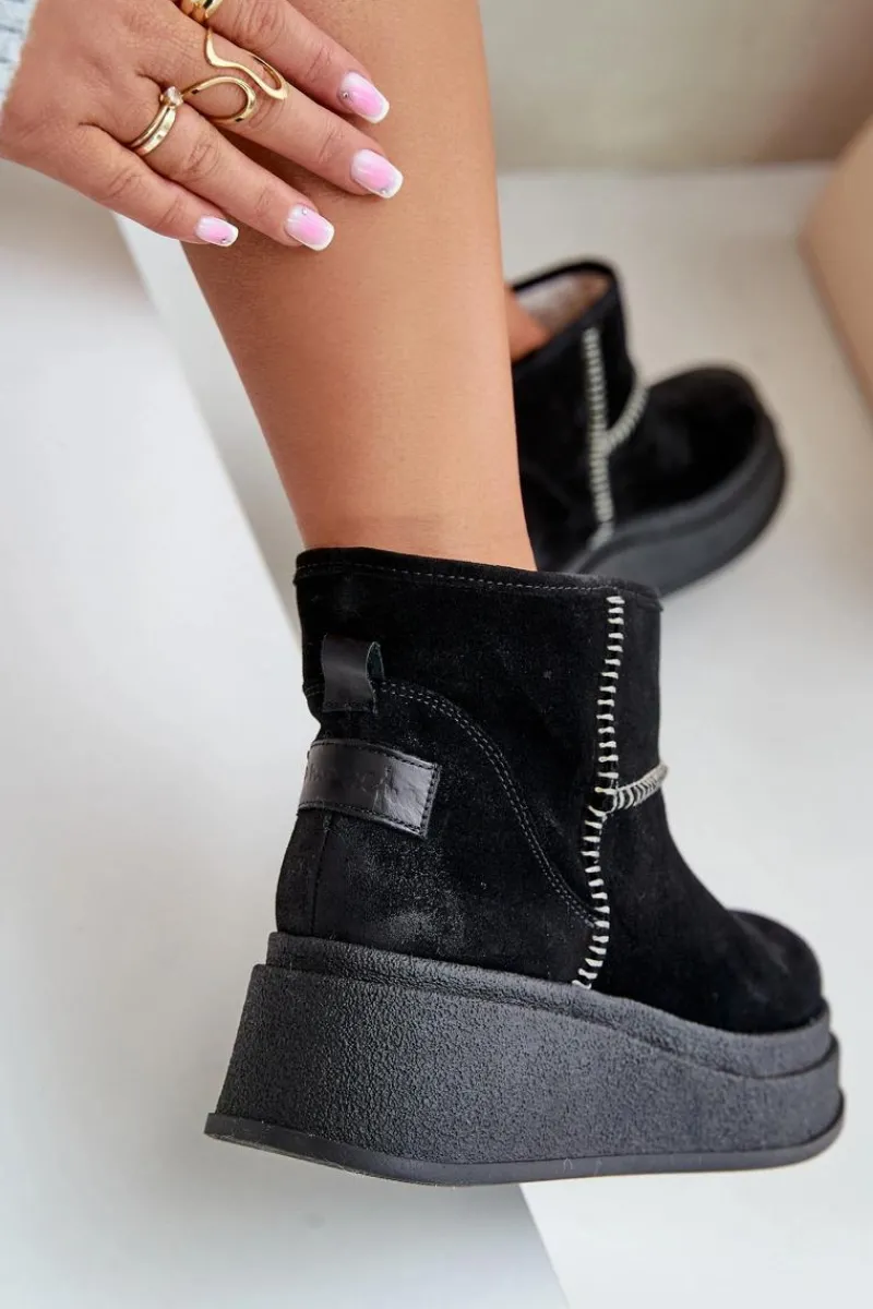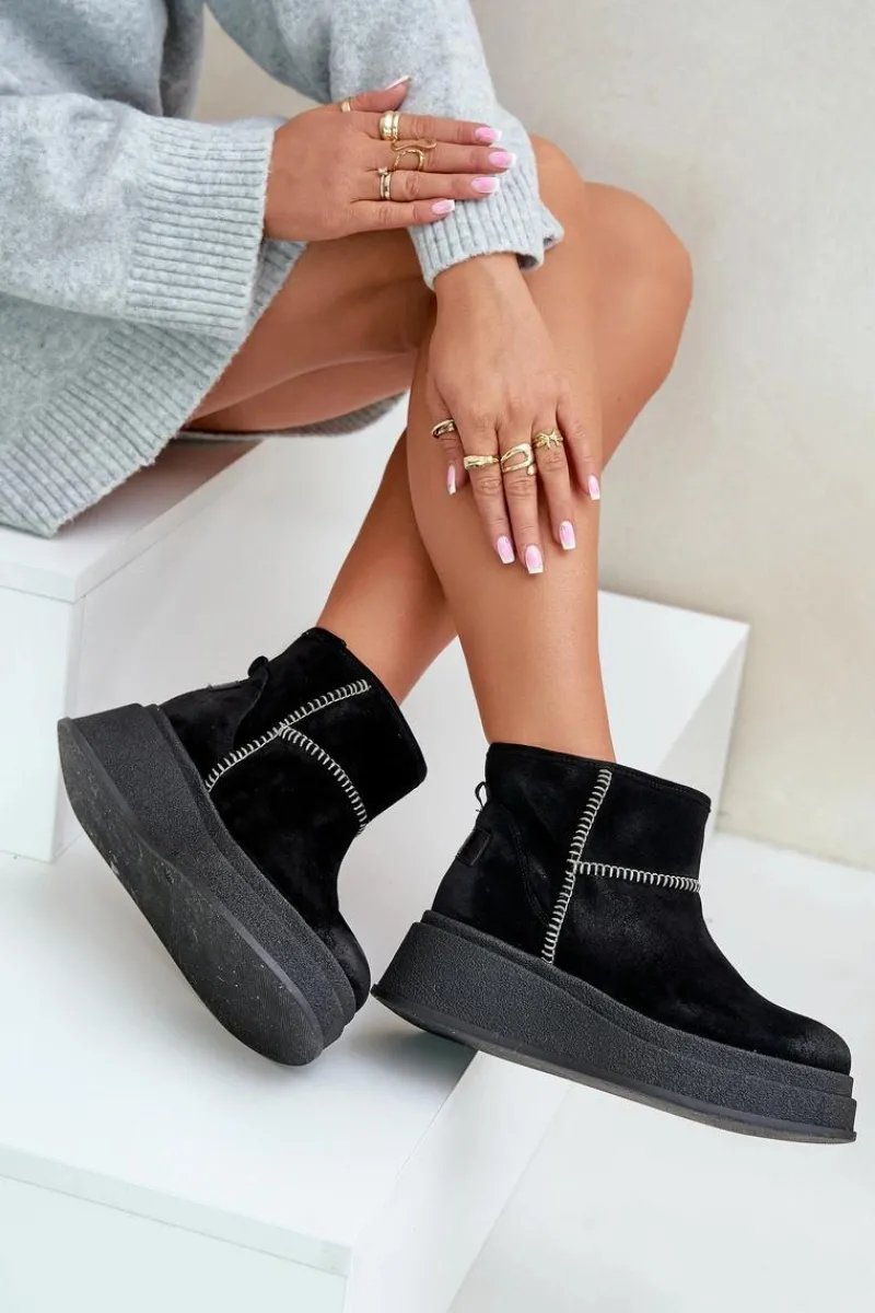 Śniegowce damskie od marki Maciejka, które doskonale sprawdzą się w zimowe dni. Buty są wykonane z wysokogatunkowej naturalnej skóry i wyróżniają się przeszyciami na cholewce. Wnętrze obuwia ocieplono kożuchem, co zapewnia dodatkowy komfort cieplny. Obuwie jest osadzone na platformie i koturnie, a zapiętek został solidnie usztywniony. Ten ponadczasowy model można z łatwością dopasować do wielu różnych stylizacji. Przy wyborze rozmiaru prosimy sugerować się tabelą rozmiarów.