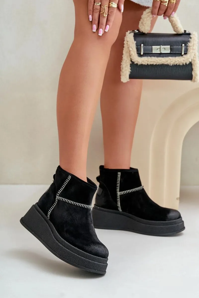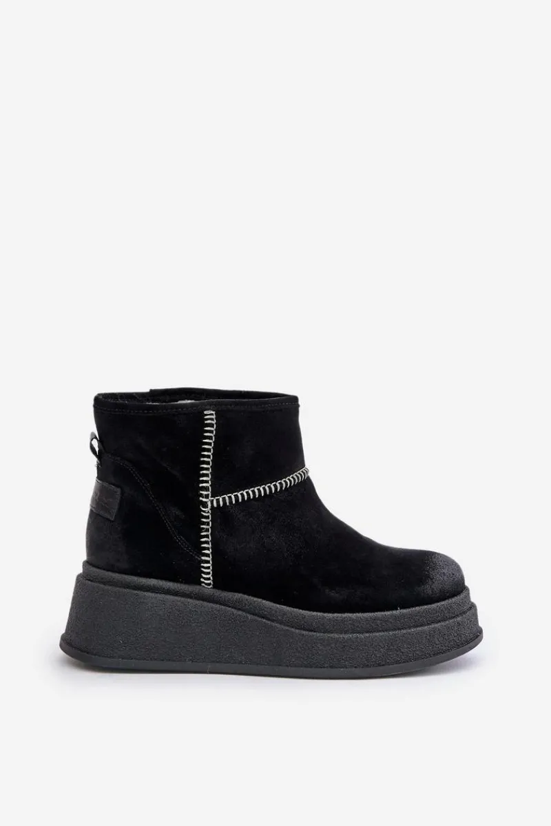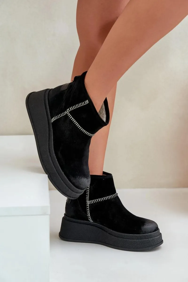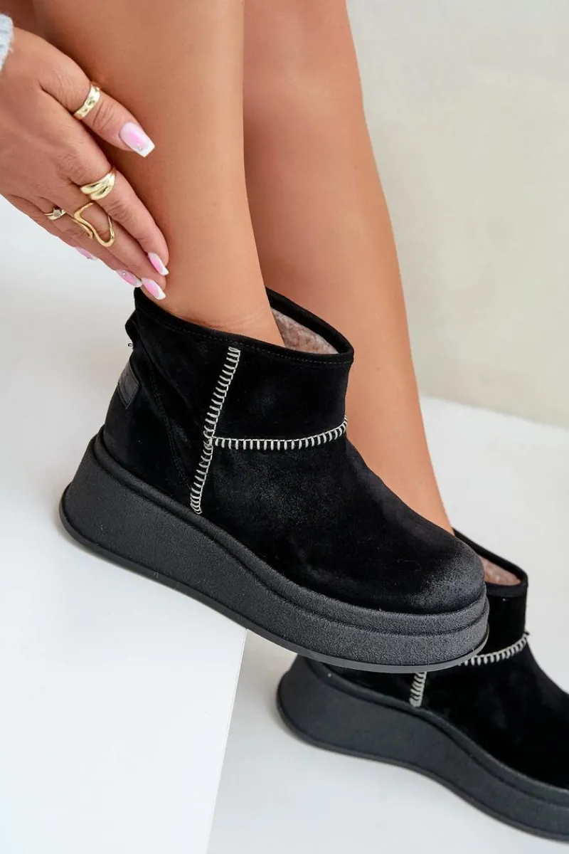 Śniegowce damskie od marki Maciejka, które doskonale sprawdzą się w zimowe dni. Buty są wykonane z wysokogatunkowej naturalnej skóry i wyróżniają się przeszyciami na cholewce. Wnętrze obuwia ocieplono kożuchem, co zapewnia dodatkowy komfort cieplny. Obuwie jest osadzone na platformie i koturnie, a zapiętek został solidnie usztywniony. Ten ponadczasowy model można z łatwością dopasować do wielu różnych stylizacji. Przy wyborze rozmiaru prosimy sugerować się tabelą rozmiarów.