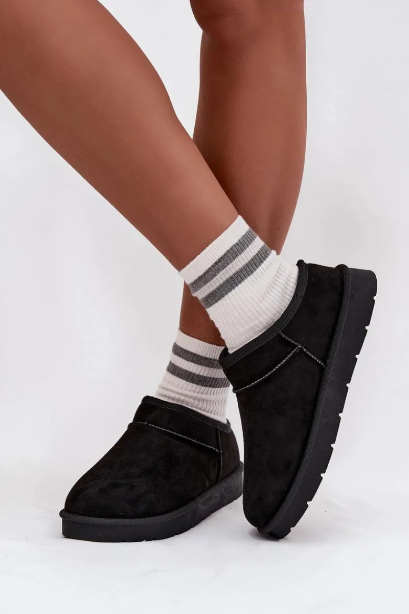 Śniegowce damskie wykonane z eko zamszu to praktyczna i stylowa propozycja na zimowe dni. Model jest niski i wsuwany, dzięki czemu zakładanie i zdejmowanie butów jest wyjątkowo wygodne. Wnętrze zostało ocieplone miękkim futerkiem, które zapewnia ciepło oraz komfort nawet w mroźne dni. To idealne obuwie na codzienne wyjścia – wygodne i uniwersalne, doskonale sprawdzą się podczas spacerów, zakupów czy drogi do pracy. Przy wyborze rozmiaru prosimy kierować tabelą rozmiarów.