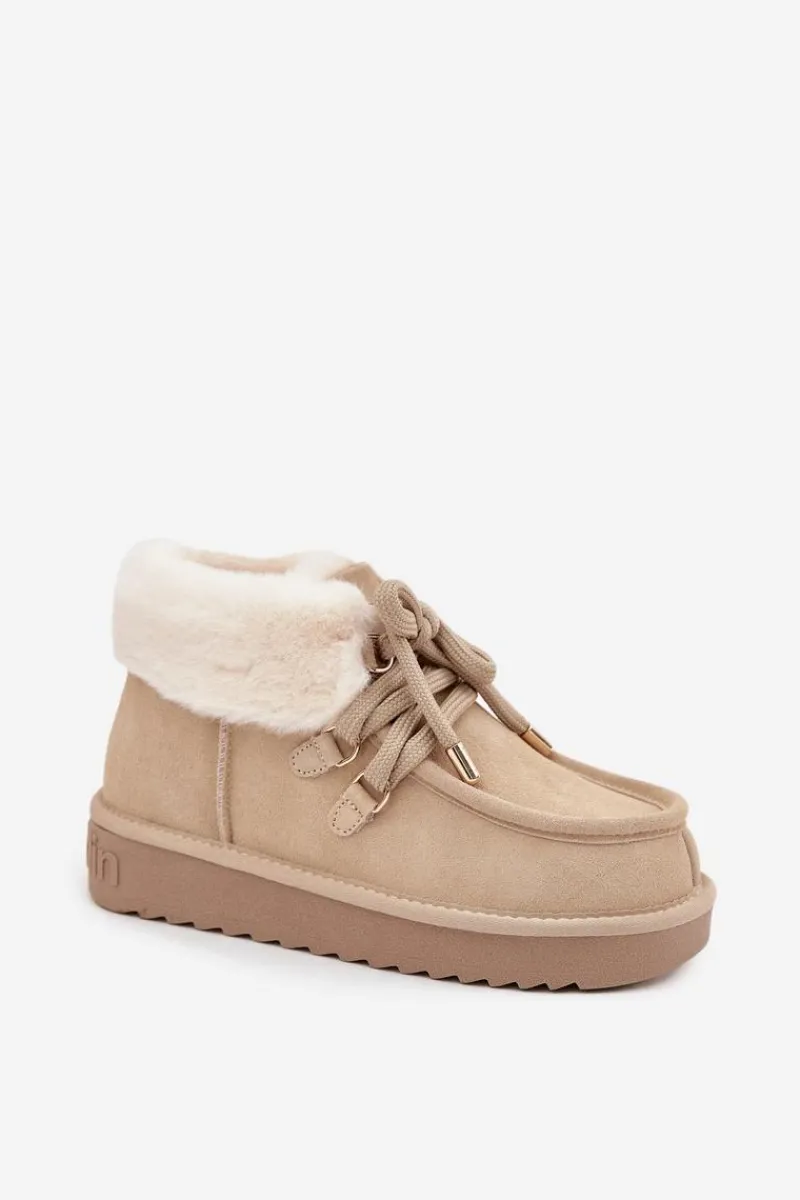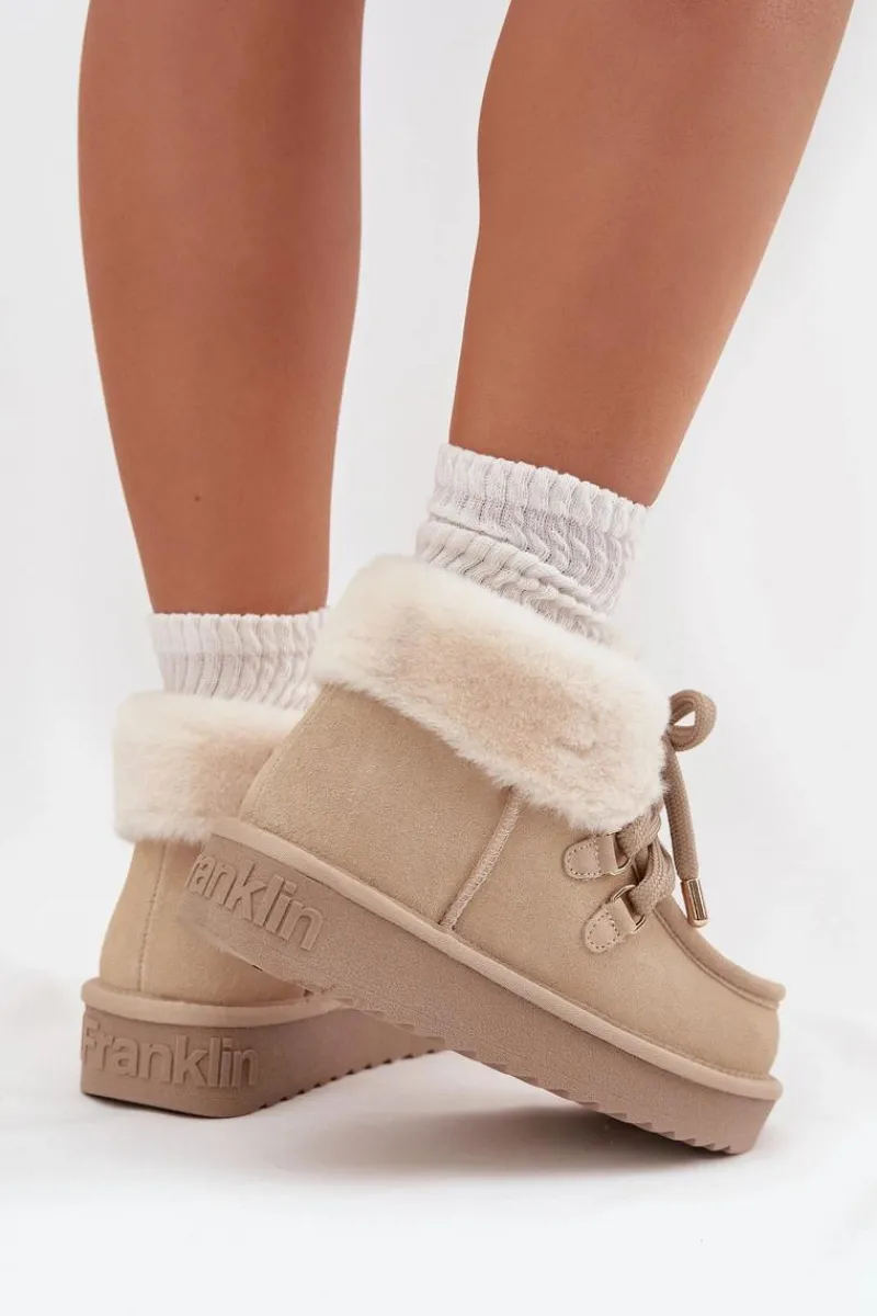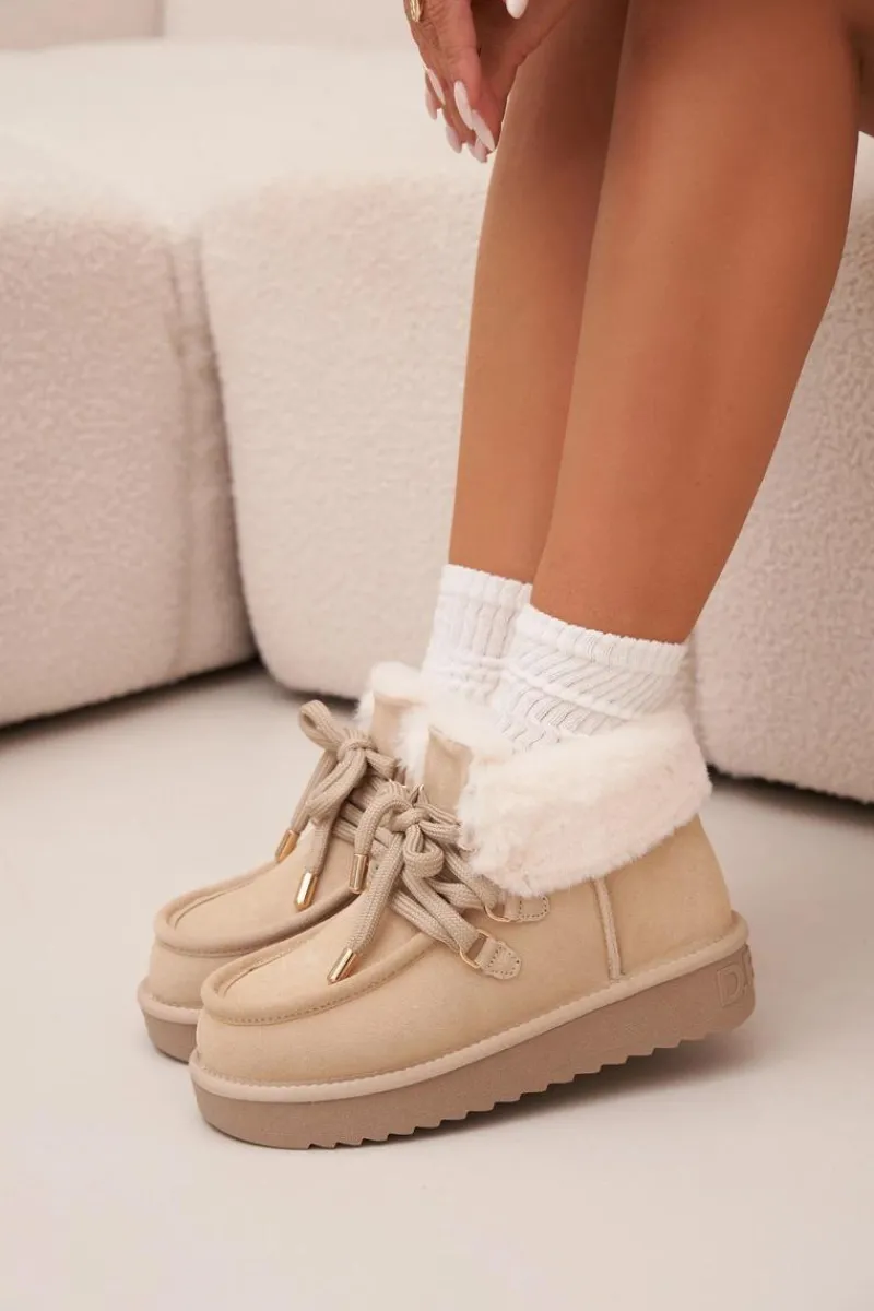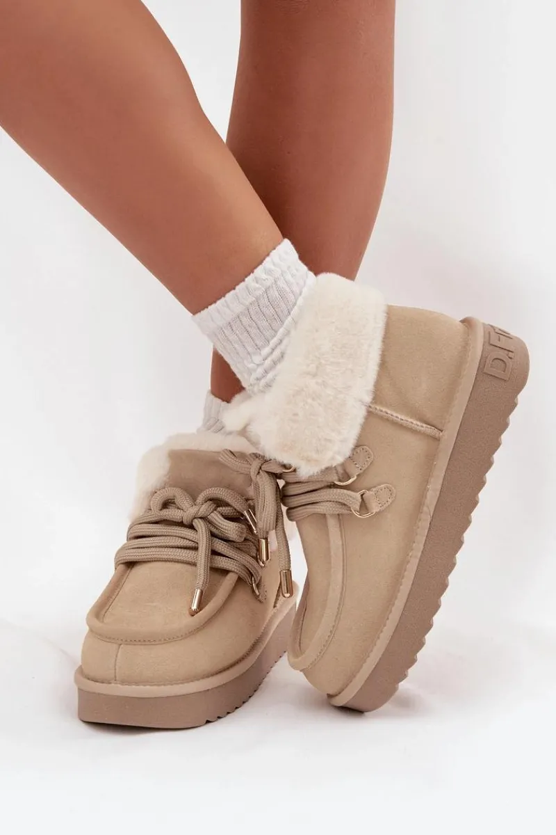 Śniegowce damskie marki D.Franklin wykonane z naturalnego zamszu to idealne połączenie stylu i praktyczności. Ich niski fason sprawia, że prezentują się lekko i nowocześnie, a jednocześnie są wygodne w codziennym użytkowaniu. Wsuwany model z grubszym sznurowaniem pozwala na lepsze dopasowanie do stopy, podkreślając jednocześnie modny charakter butów. Wnętrze ocieplane miękkim futerkiem zapewnia komfort termiczny w mroźne dni, a dodatkowe obszycie futerkiem w górnej części cholewki nadaje całości wyjątkowego uroku. Podeszwa z gumowego tworzywa gwarantuje stabilność i przyczepność na różnych nawierzchniach, co czyni śniegowce niezawodnym wyborem podczas zimowych spacerów. To obuwie, które łączy funkcjonalność i wygodę z modnym wyglądem, idealnie wpisując się w zimowe stylizacje.