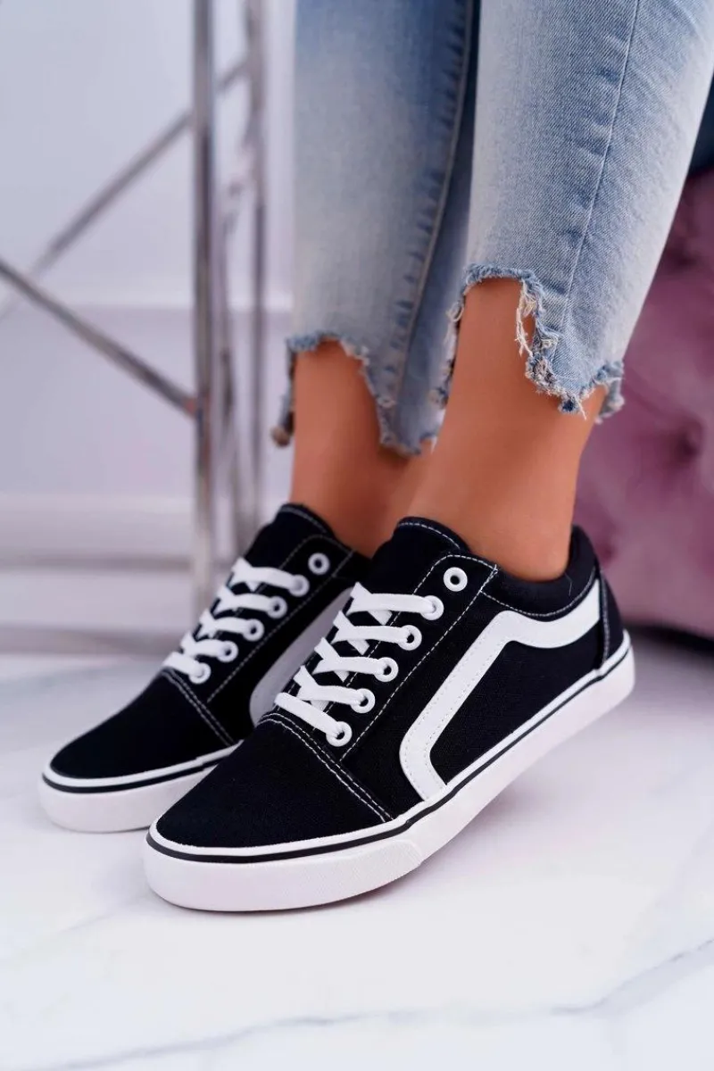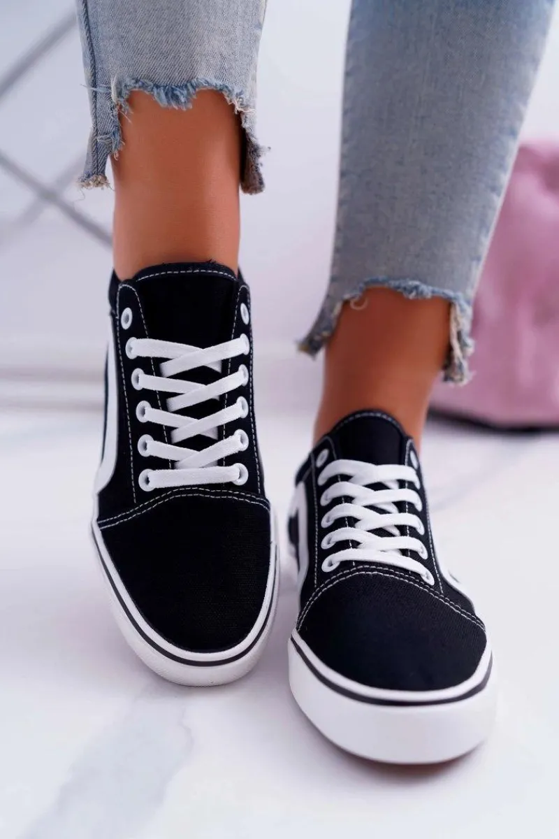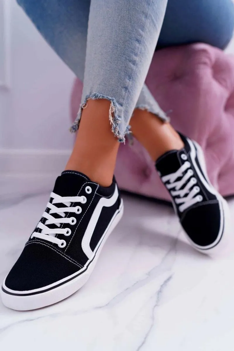 Hot Trampki Damskie Materiałowe Czarne Bestro Damskie Trampki Damskie Niskie