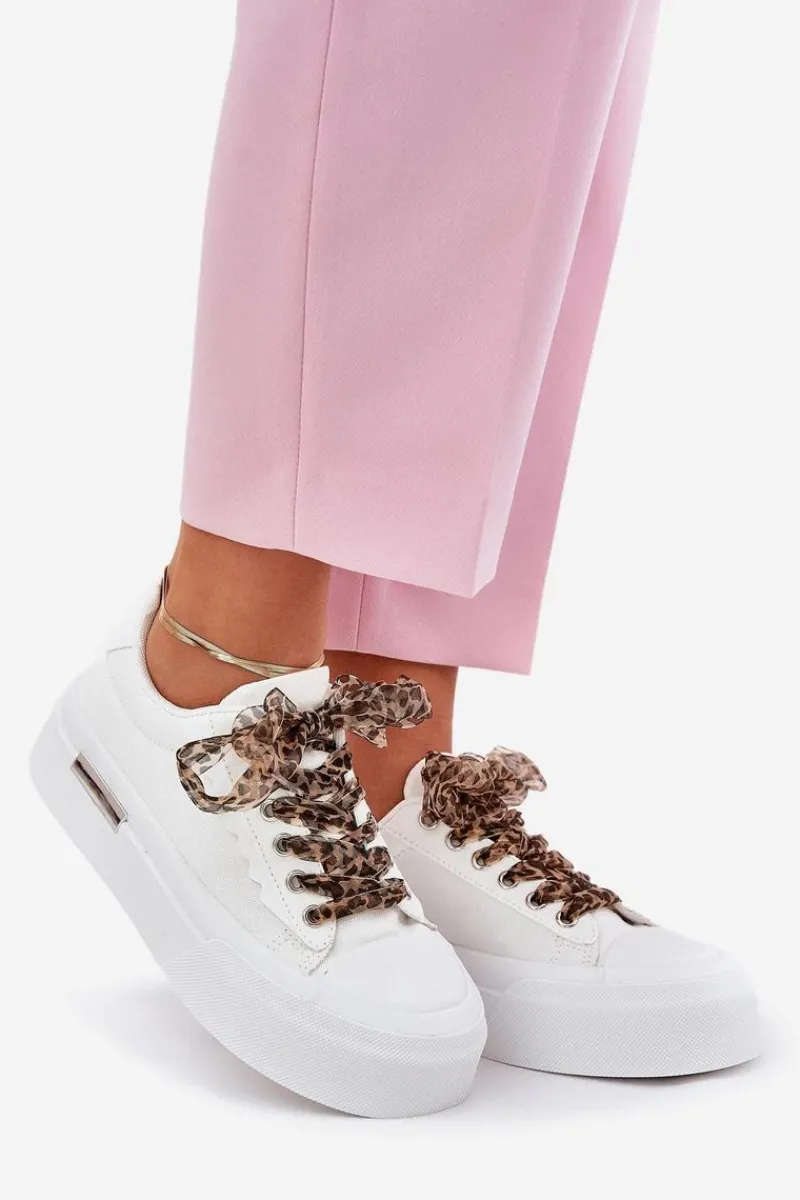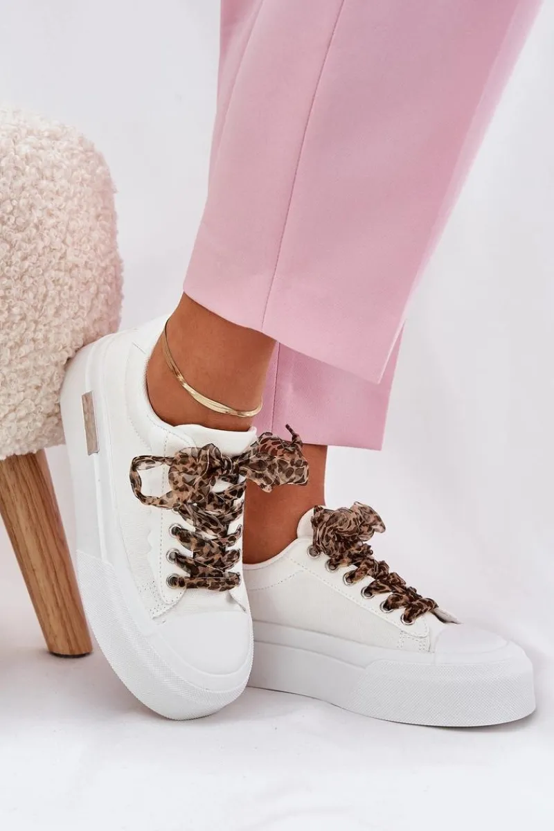 Trampki damskie wykonane z materiału tekstylnego. Osadzone na masywnej platformie, które łączą wygodę z modnym wyglądem. Model wyróżnia się ozdobnym sznurowaniem, które dodaje im charakteru, a zaokrąglone noski zapewniają komfort. Piankowa wkładka pokryta materiałem gwarantuje wygodę przez cały dzień. Idealne do codziennych stylizacji, te trampki będą doskonałym wyborem na każdą okazję. Przy wyborze rozmiaru prosimy sugerować się tabelą rozmiarów.