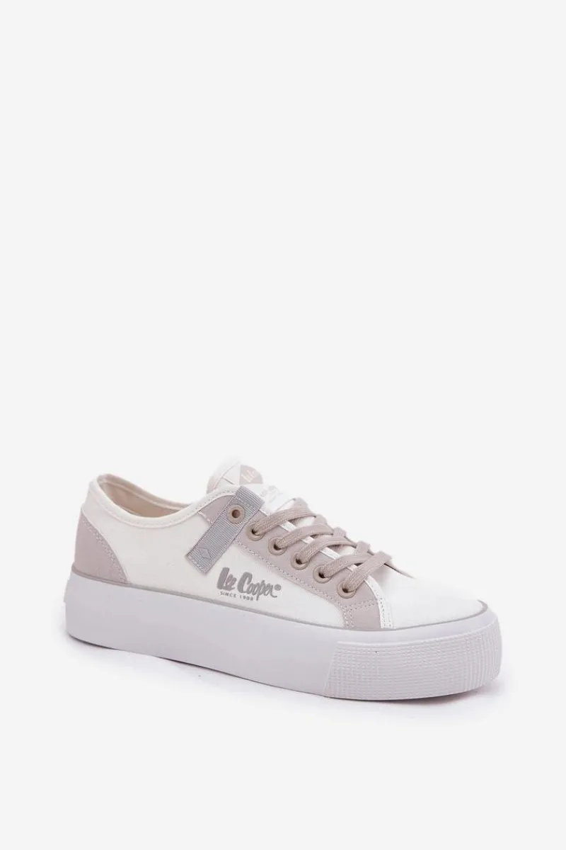 Damskie trampki marki Lee Cooper, wykonane z materiału tekstylnego, to świetny wybór dla osób ceniących komfort i styl. Osadzone na platformie, zapewniają dodatkową stabilność i wygodę przez cały dzień. Zaokrąglone noski gwarantują swobodę ruchu, a miękka wkładka zapewnia odpowiednią amortyzację. Klasyczne sznurowanie pozwala na idealne dopasowanie do stopy, a subtelne logo na boku cholewki dodaje modnego akcentu. Te trampki to doskonały wybór do codziennych stylizacji! Przy wyborze rozmiaru prosimy sugerować się poniższą tabelą rozmiarów.