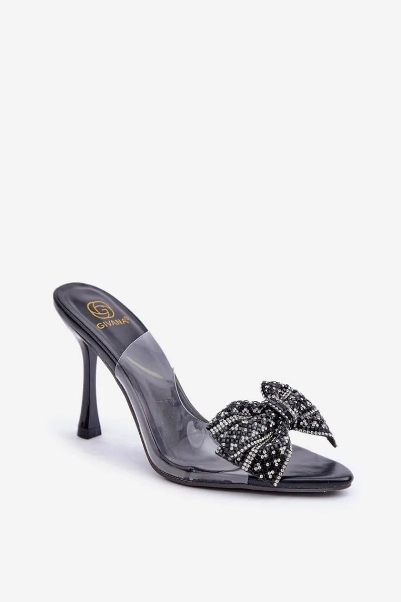Eleganckie transparentne sandały na szpilce, które idealnie podkreślą wyjątkowy charakter Twojej stylizacji. Model wyróżnia się efektowną, błyszczącą kokardą z przodu, dodającą odrobinę glamour. Model ten doskonale komponują się z sukniami koktajlowymi oraz eleganckimi kompletami, tworząc szykowny i modny look. Przy wyborze rozmiaru prosimy sugerować się tabelą rozmiarów.
