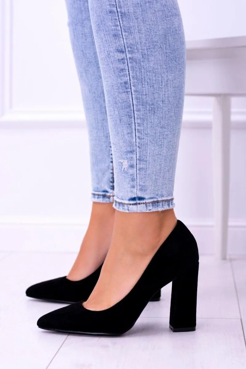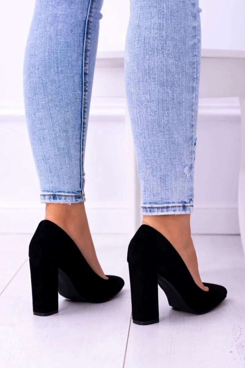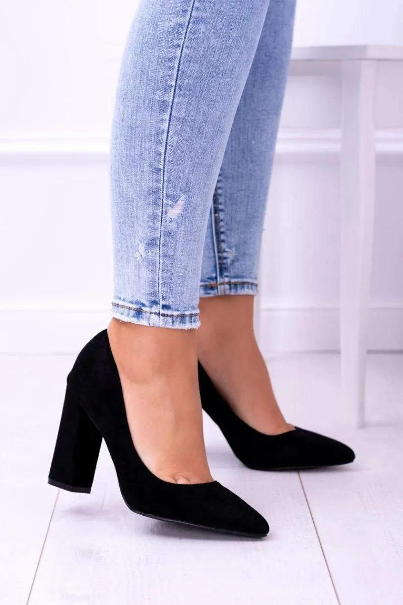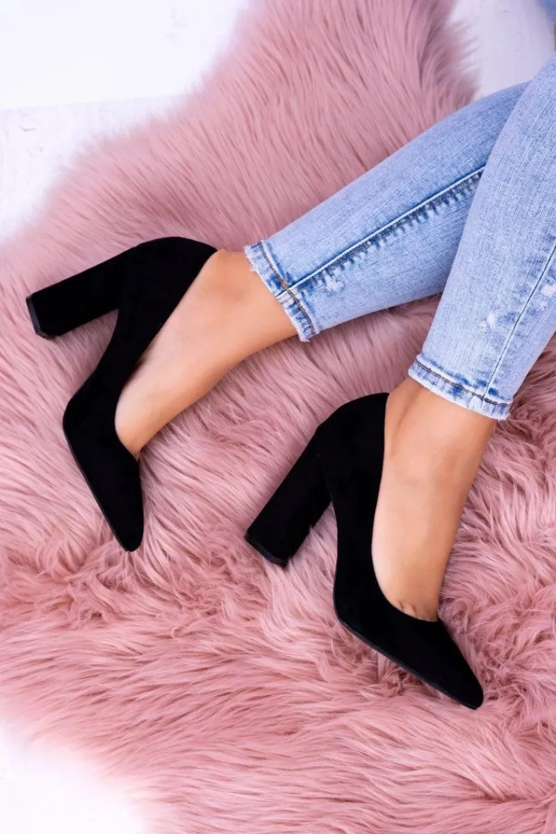 Hot Zamszowe Damskie Czarne Czółenka Na Słupku Celine Damskie Czółenka Zamszowe|Czółenka Na Słupku