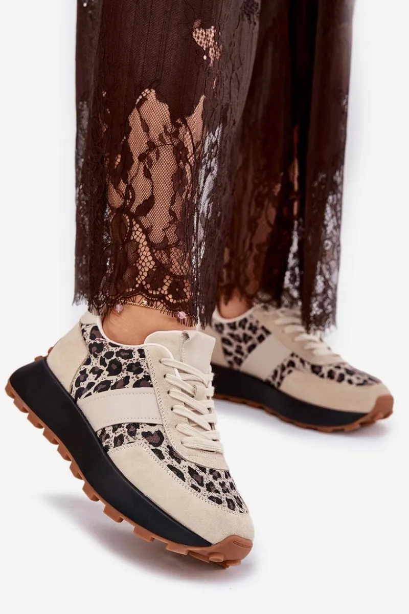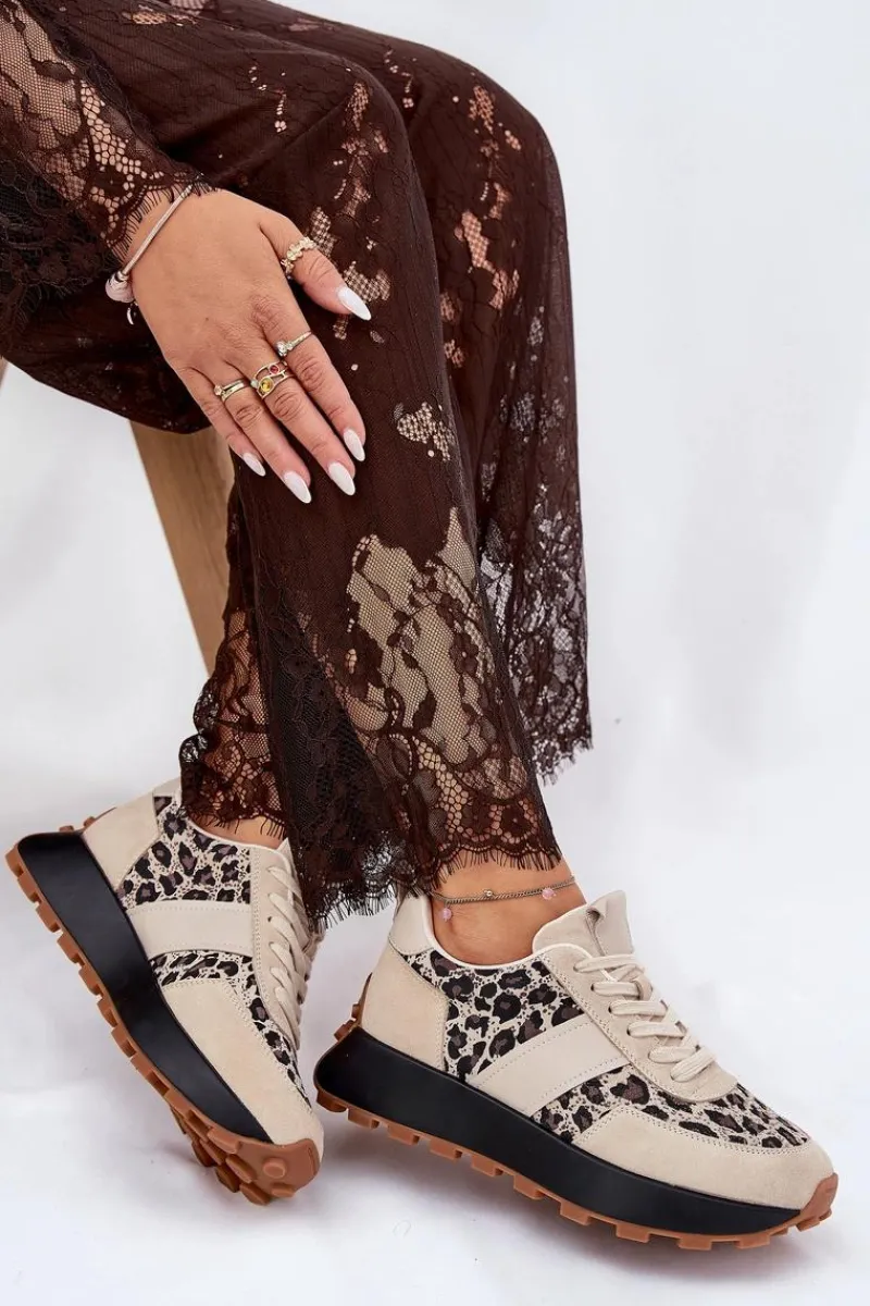Hot Zamszowe Sneakersy Damskie Na Platformie Panterka Vinceza 66793 Beżowe Damskie Sneakersy Damskie