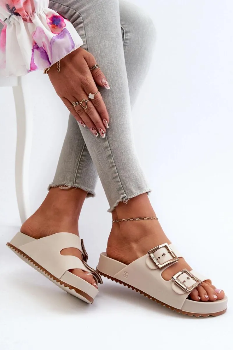 Hot ZAXY Damskie Klapki Gładkie NN285058 Jasnobeżowe