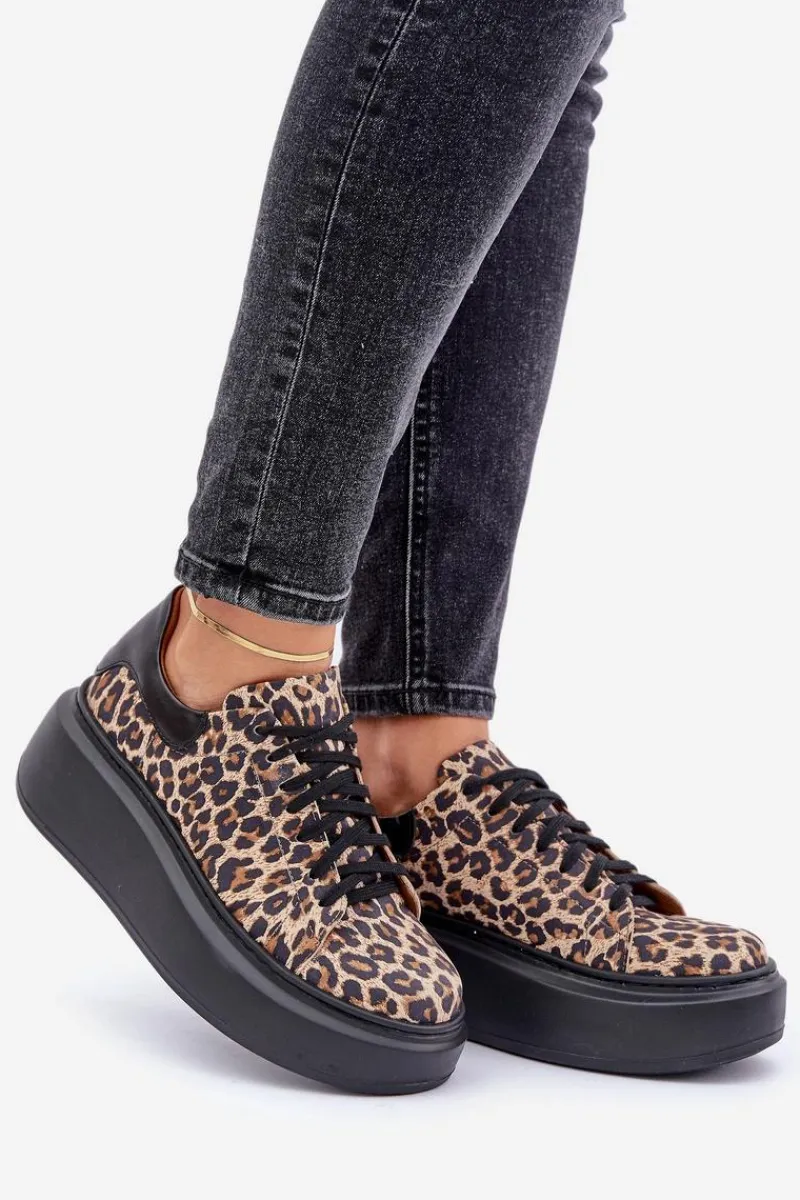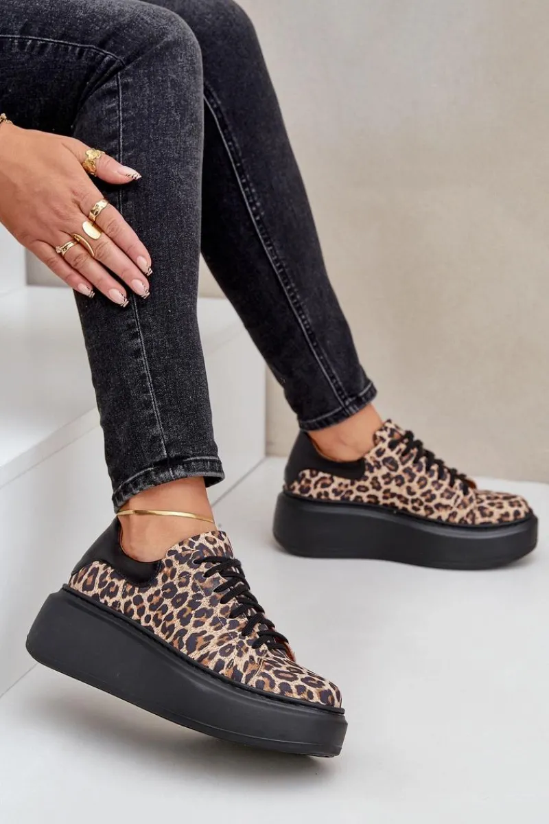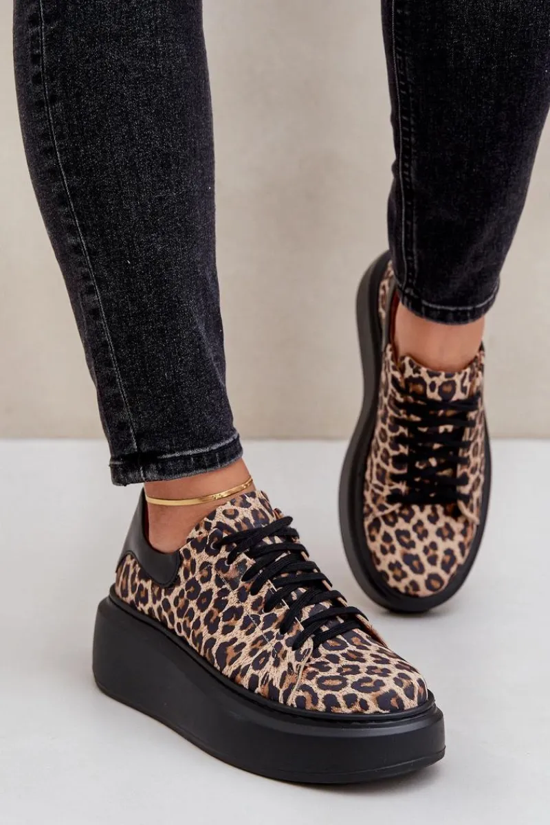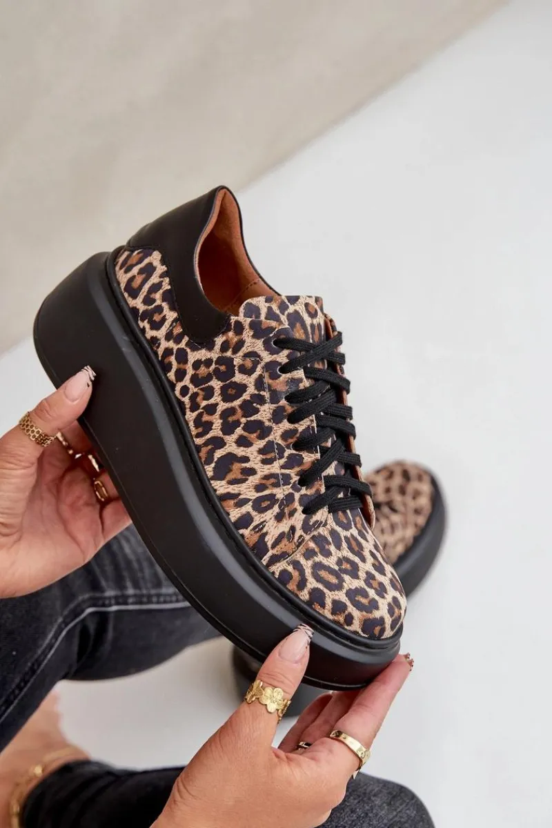 Hot Zazoo Skórzane Sneakersy Na Platformie W Panterkę 3346 Brązowo-Czarne