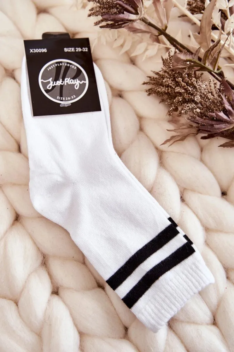 Just Play Młodzieżowe Bawełniane Skarpety Sportowe Z Paskami Białe