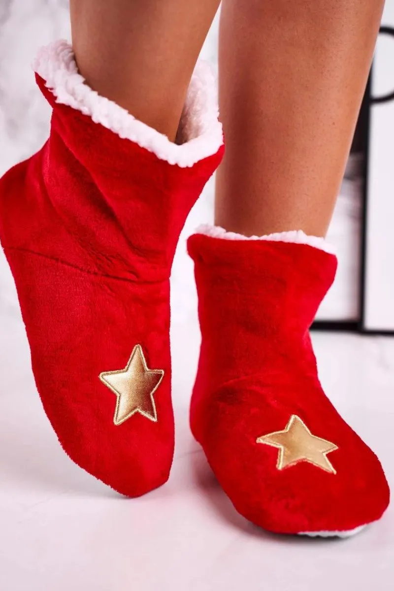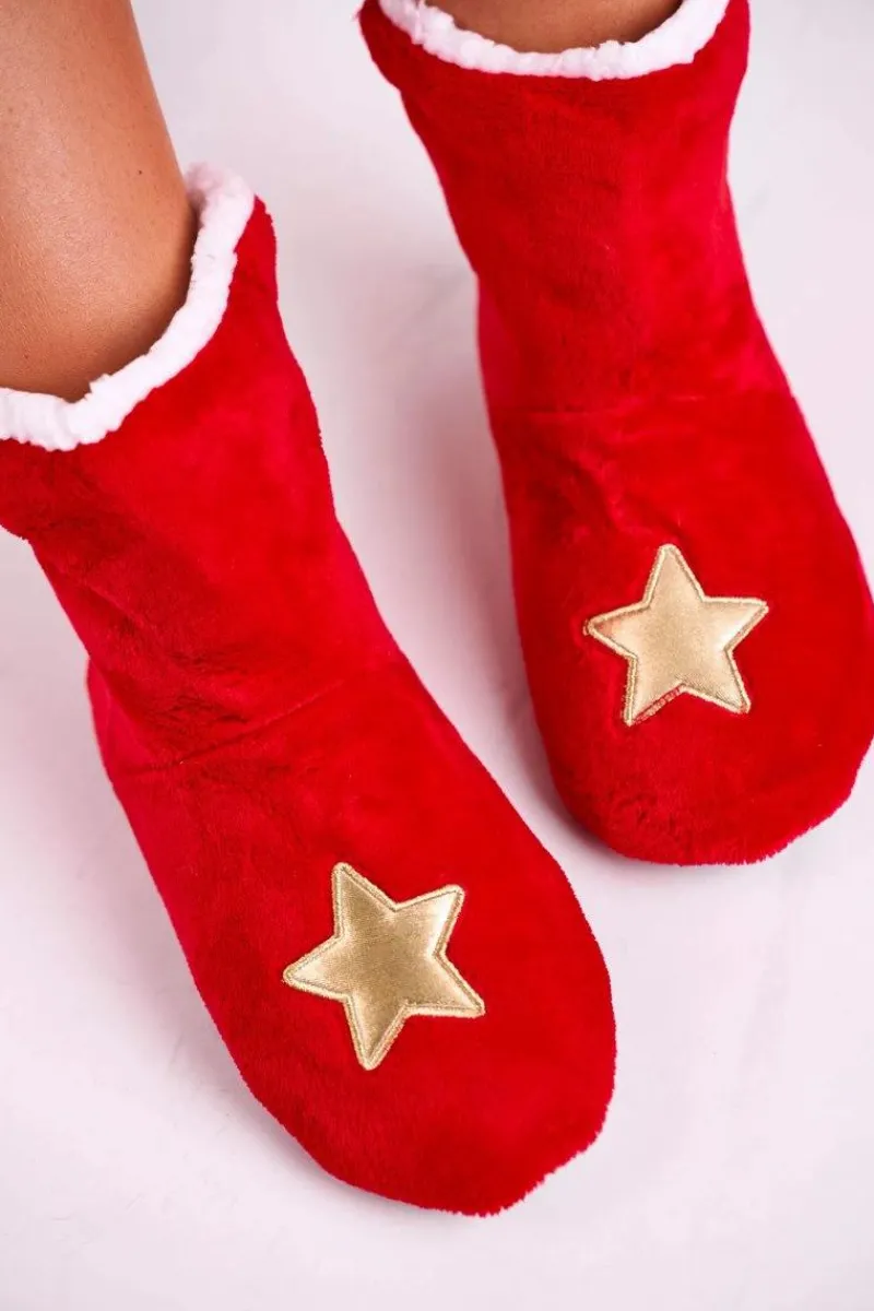 Kapcie Klasyczne>Aura.via Świąteczne Papcie Z Gwiazdą Ocieplone Kożuszkiem Holly