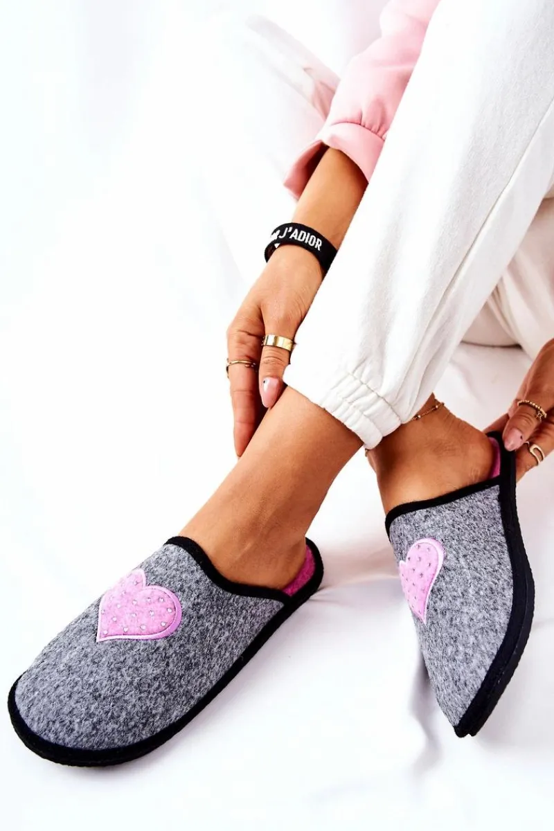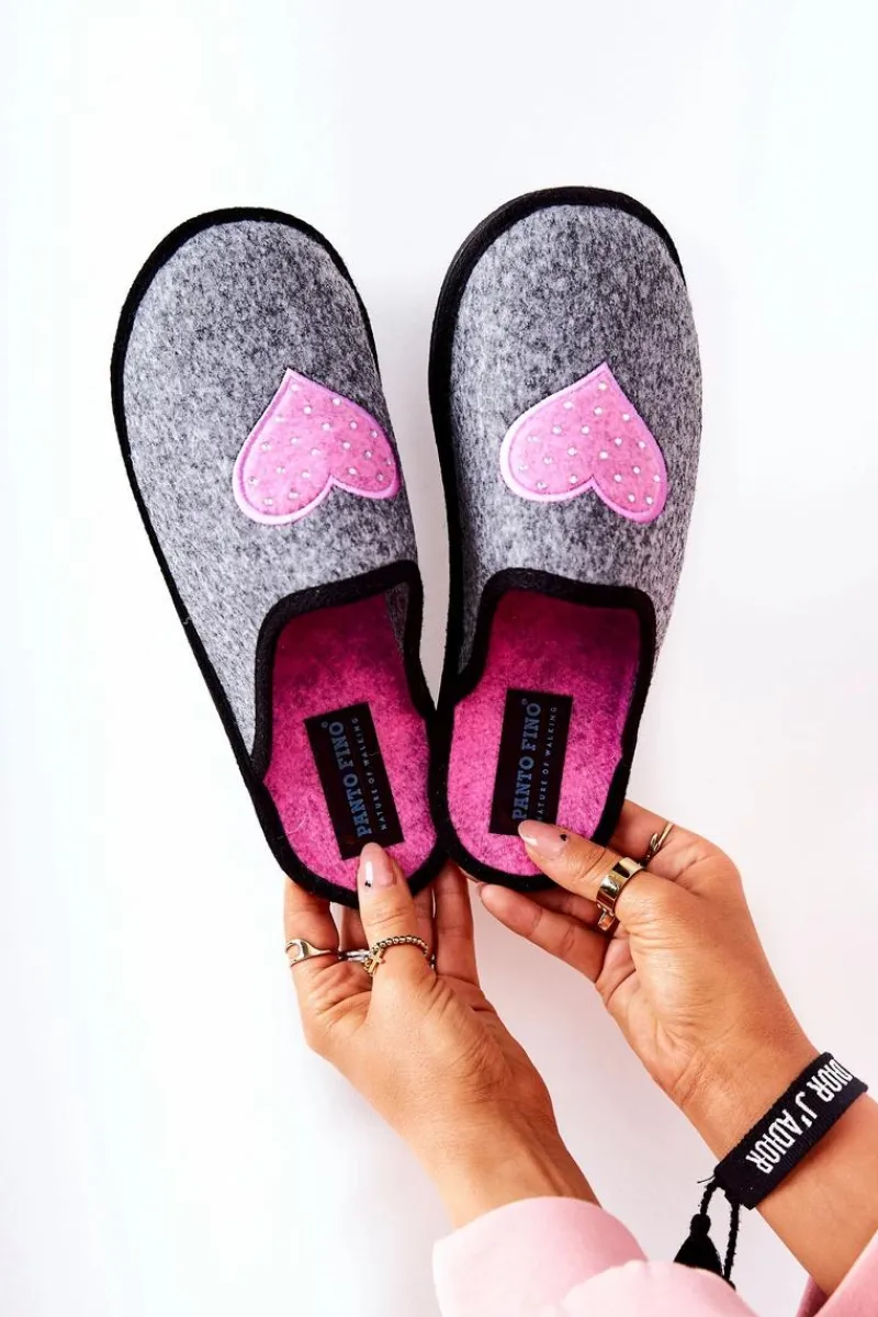 Modne papcie domowe Panto Fino. Wierzch oraz wkładka zostały wykonane z filcu. Klapki są bardzo lekkie i wygodne. Na środku znajduje się urocze serduszko, na którym znajdują się cyrkonie. Papcie powinny znaleźć się w każdej garderobie, dlatego nie czekaj dłużej i kup już dziś! Przy wyborze rozmiaru prosimy sugerować się tabelą rozmiarów dostępną po najechaniu bądź kliknięciu na dany rozmiar.