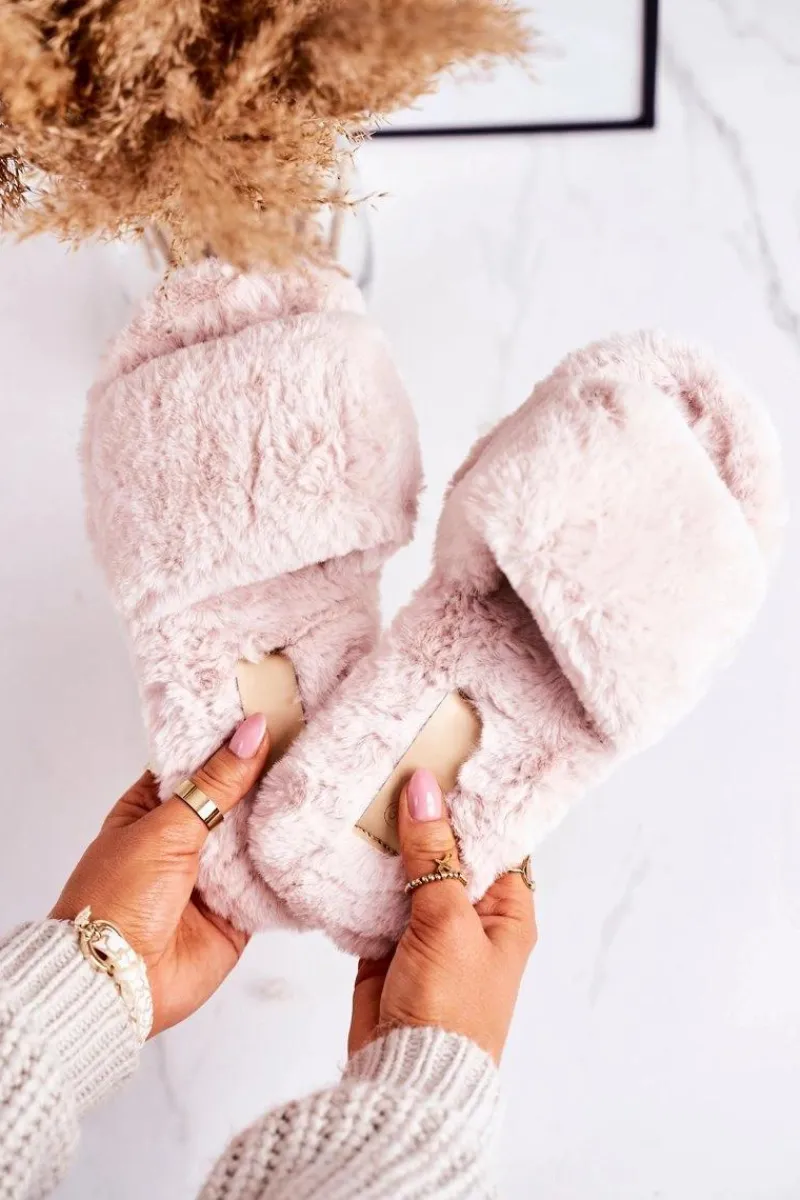 Kapcie Klasyczne>Boto Damskie Klapki Papcie Futrzane Beżowe Cold Days