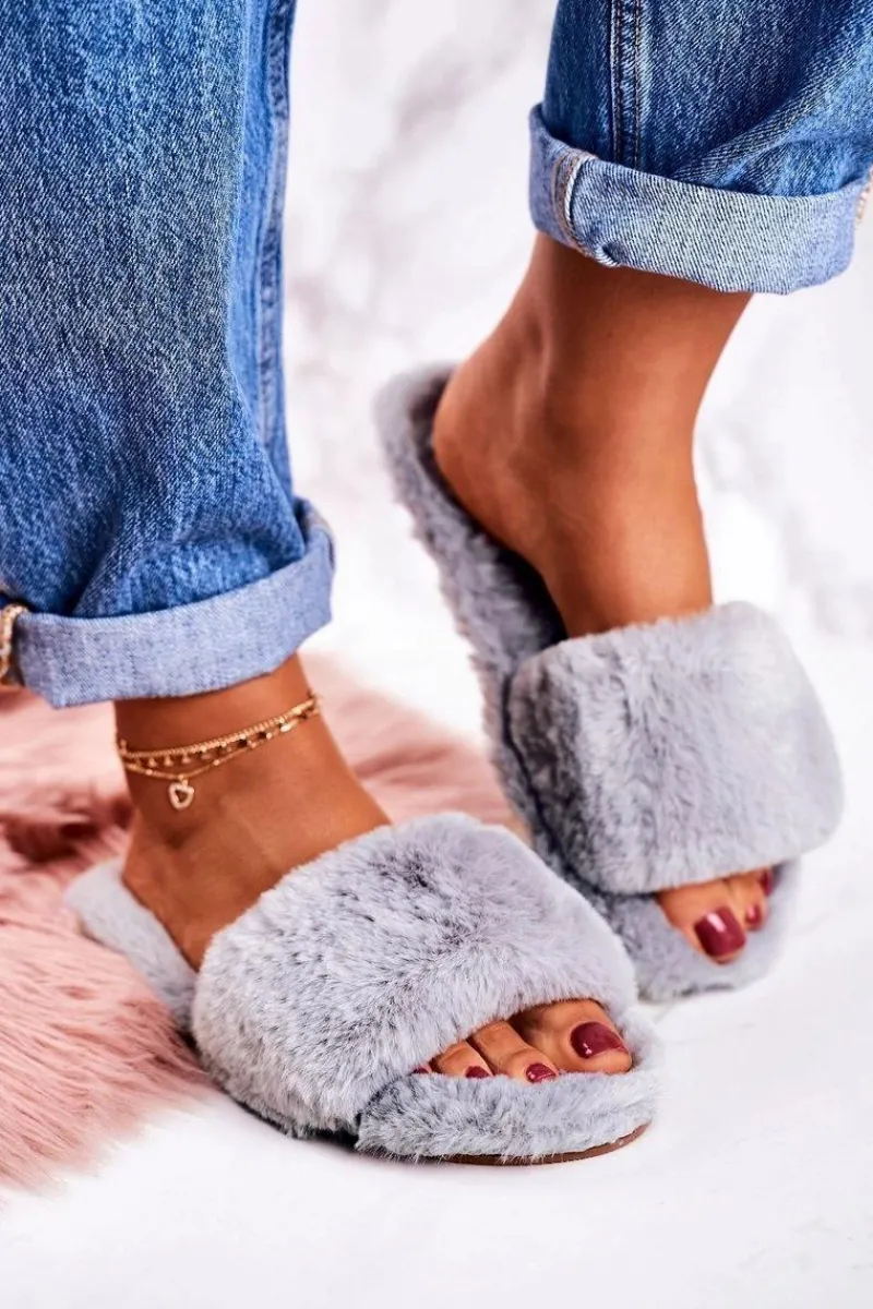 Kapcie Klasyczne>Boto Damskie Klapki Papcie Futrzane Szare Cold Days